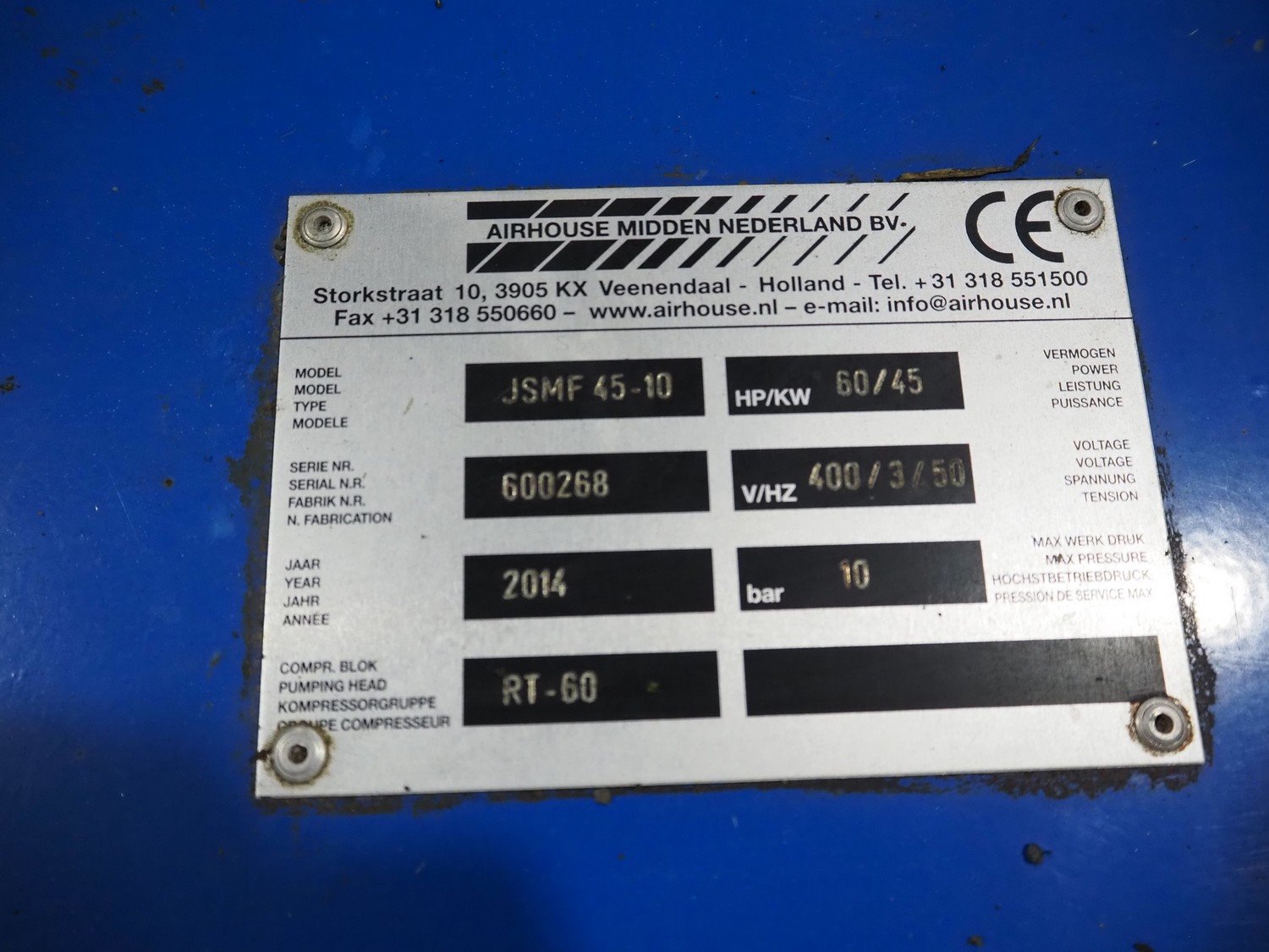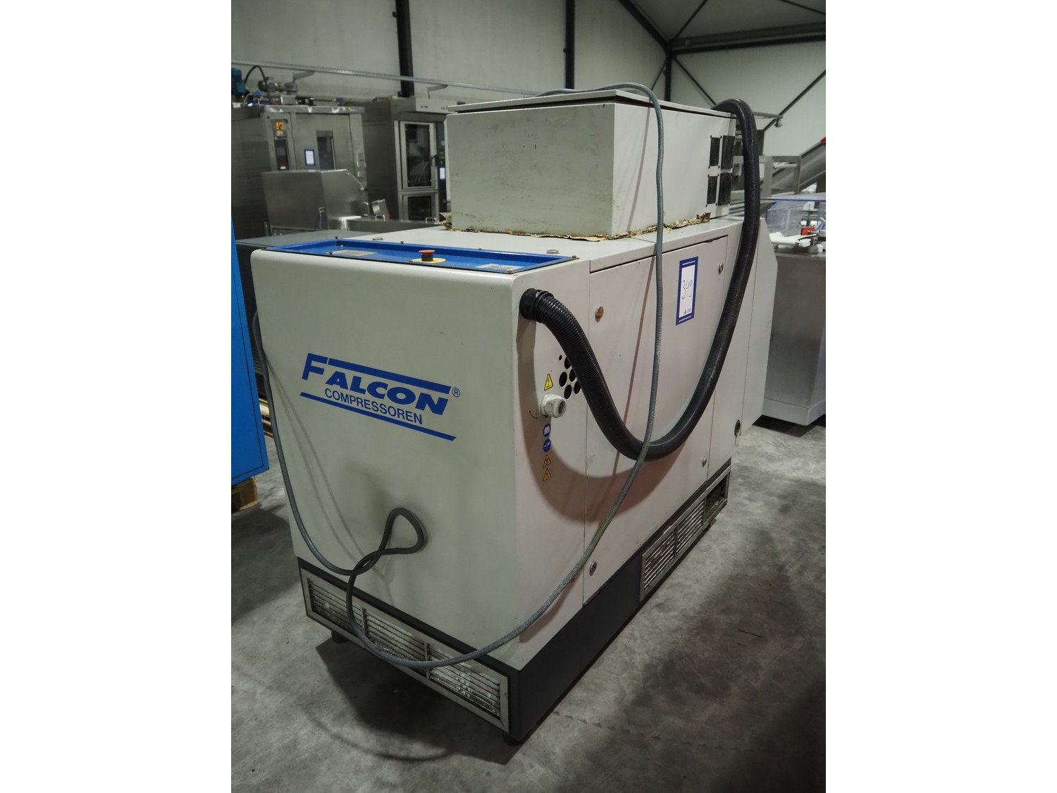 Falcon air compressor, type: 45kW, serial number: 600268, year of construction: 2014, 400 V, 3 Ph, 50 Hz, 45 kW, maximum pressure: 10 bar, dimensions: 1900 mm x 1050 mm x 1300 mm. Kavel locatie: Langereijt 29A, 5091 JP Middelbeers, Nederland
