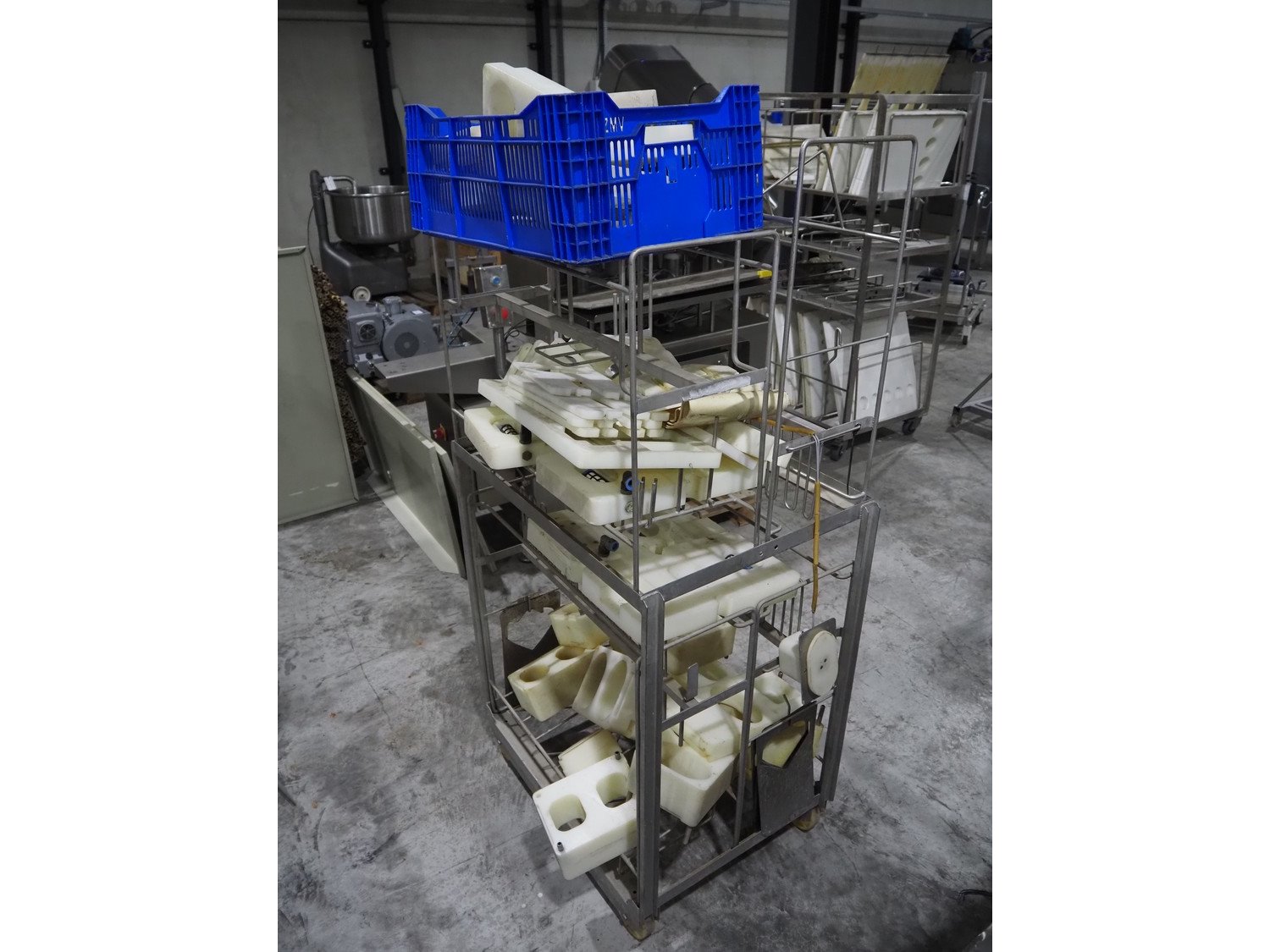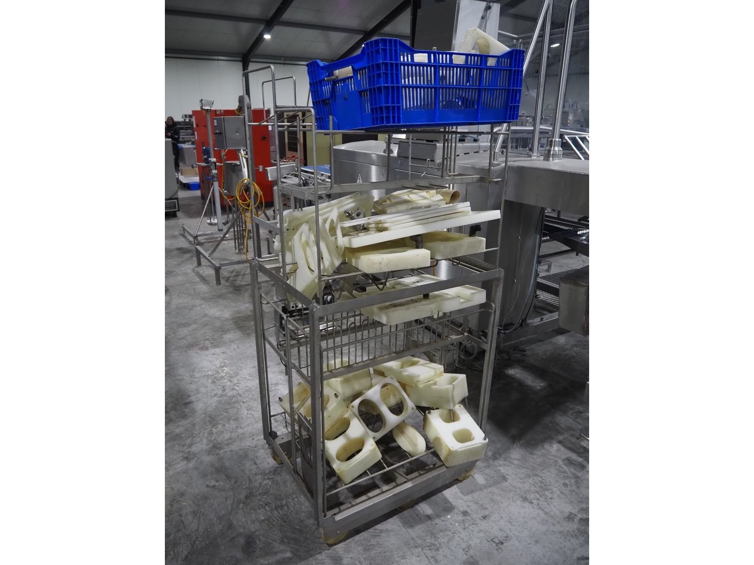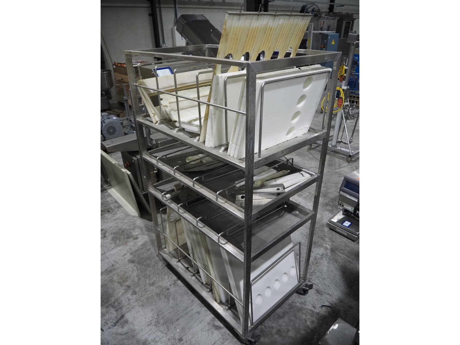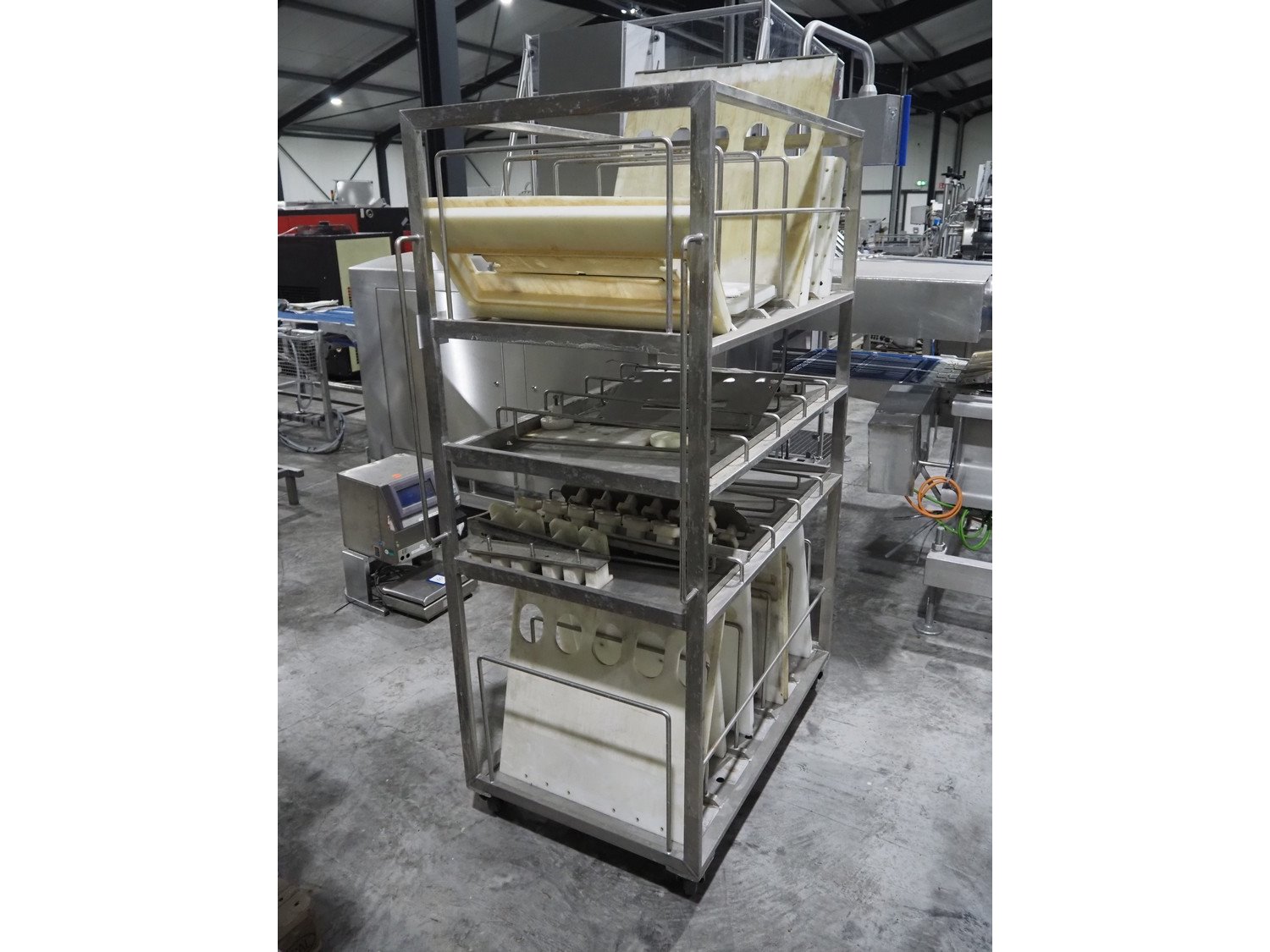 TVM mobile portioning machine, type: TVM - Portio 4000, serial number: 09-99.26445 138, year of construction: 1999, 400 V, 3 Ph, 50 Hz, 2.5 A, weight: 380 kg, plastic belt, belt width: 205 mm, total dimensions: 1600 mm x 1100 mm x 2100 mm. Including s/s trolley with parts, dimensions: 860 mm x 620 mm x 1800 mm. Kavel locatie: Langereijt 29A, 5091 JP Middelbeers, Nederland