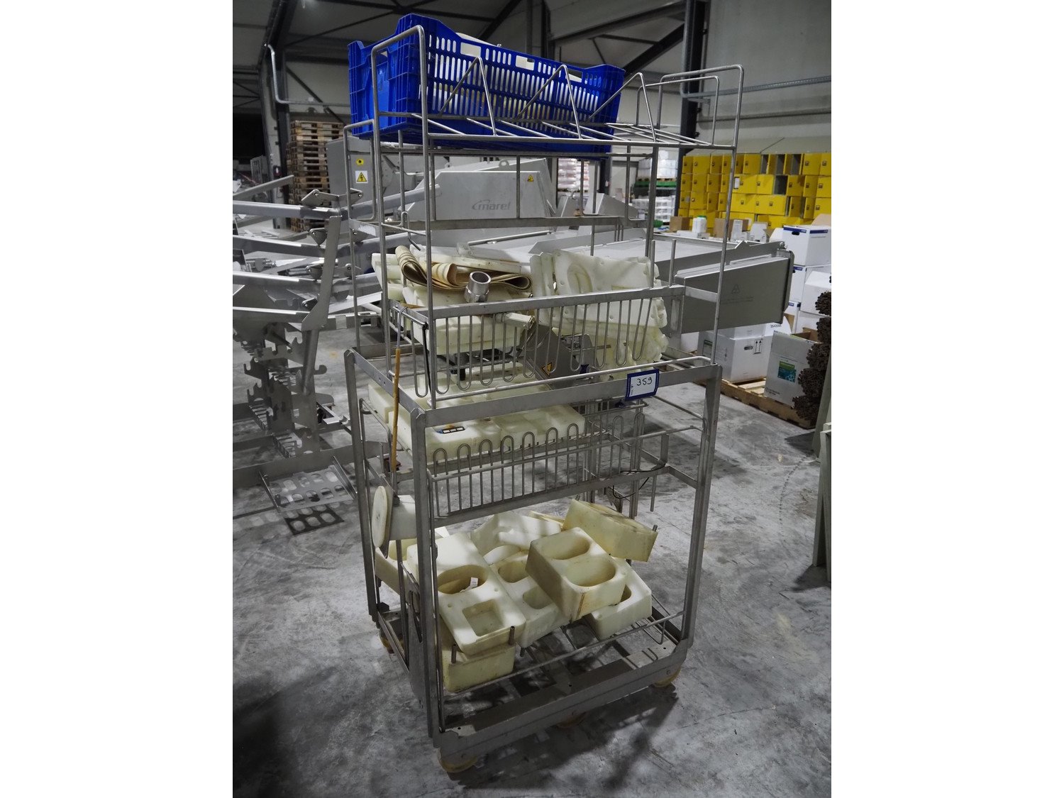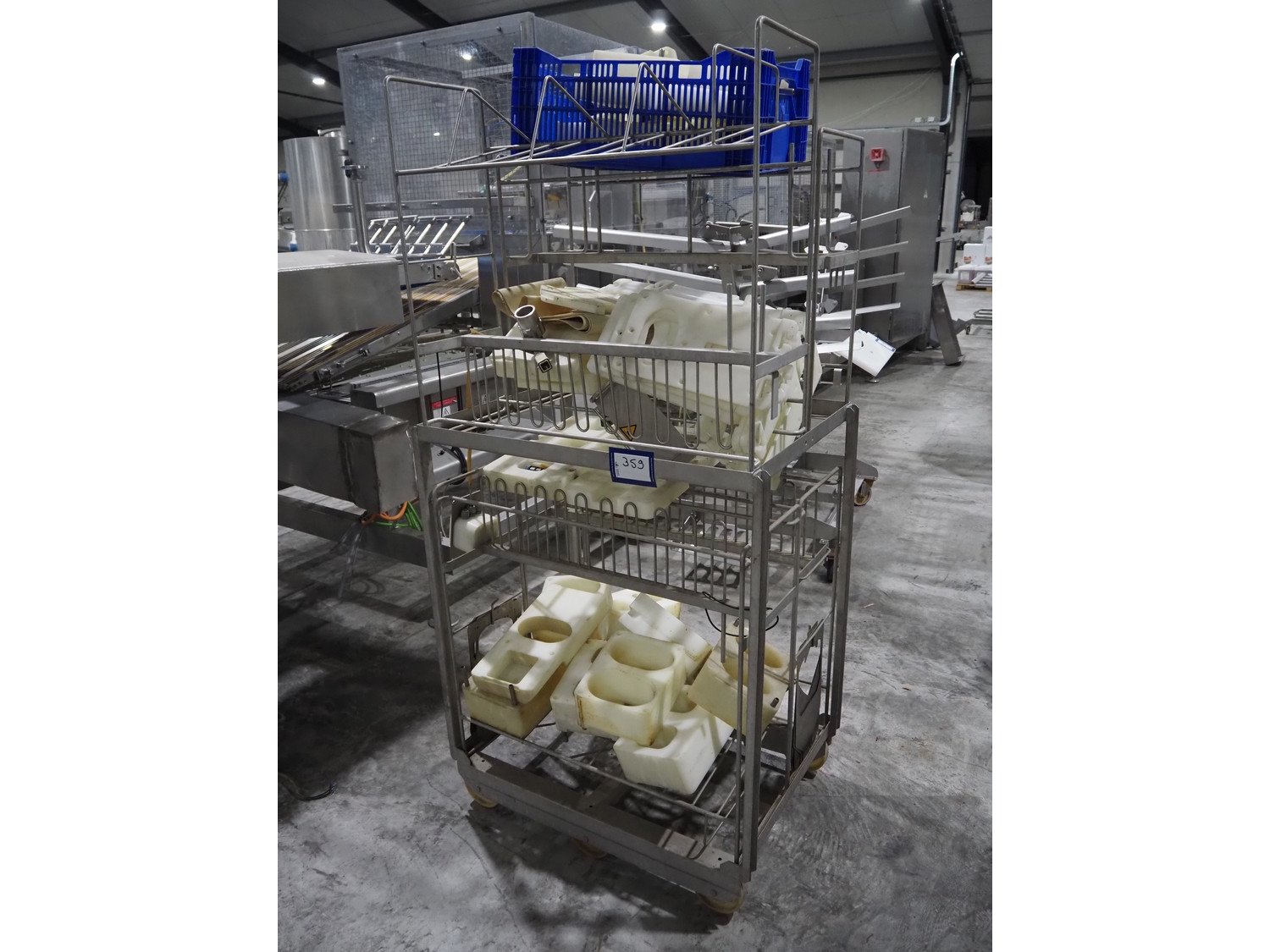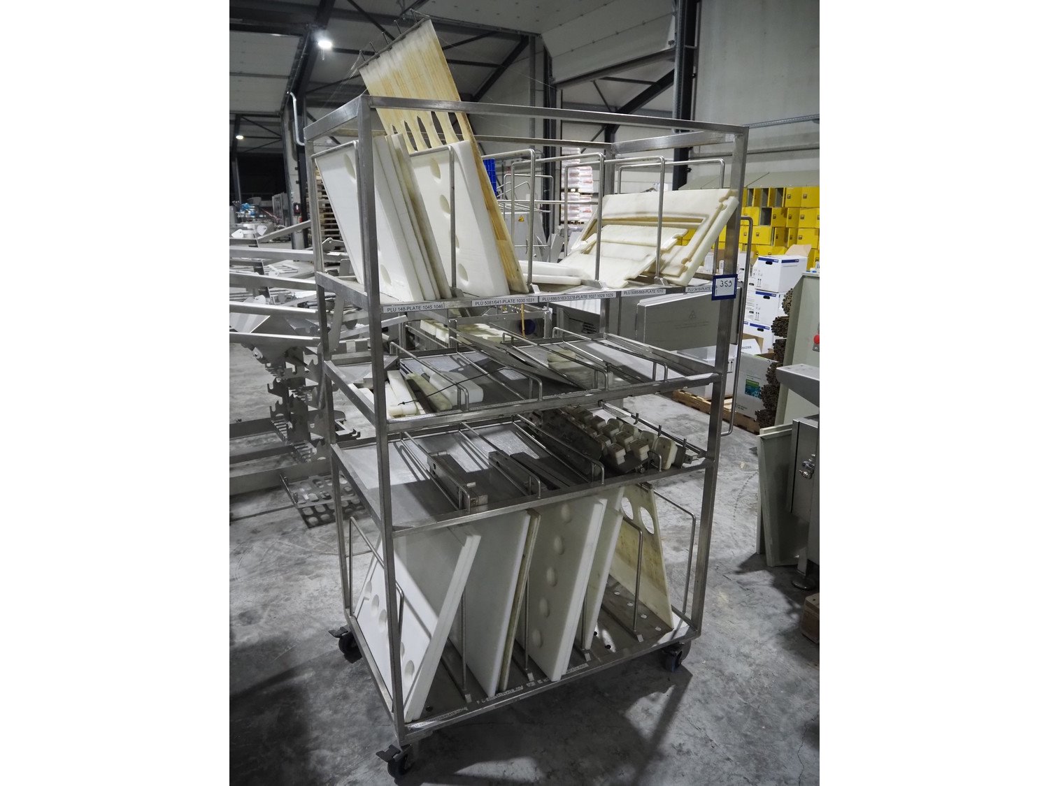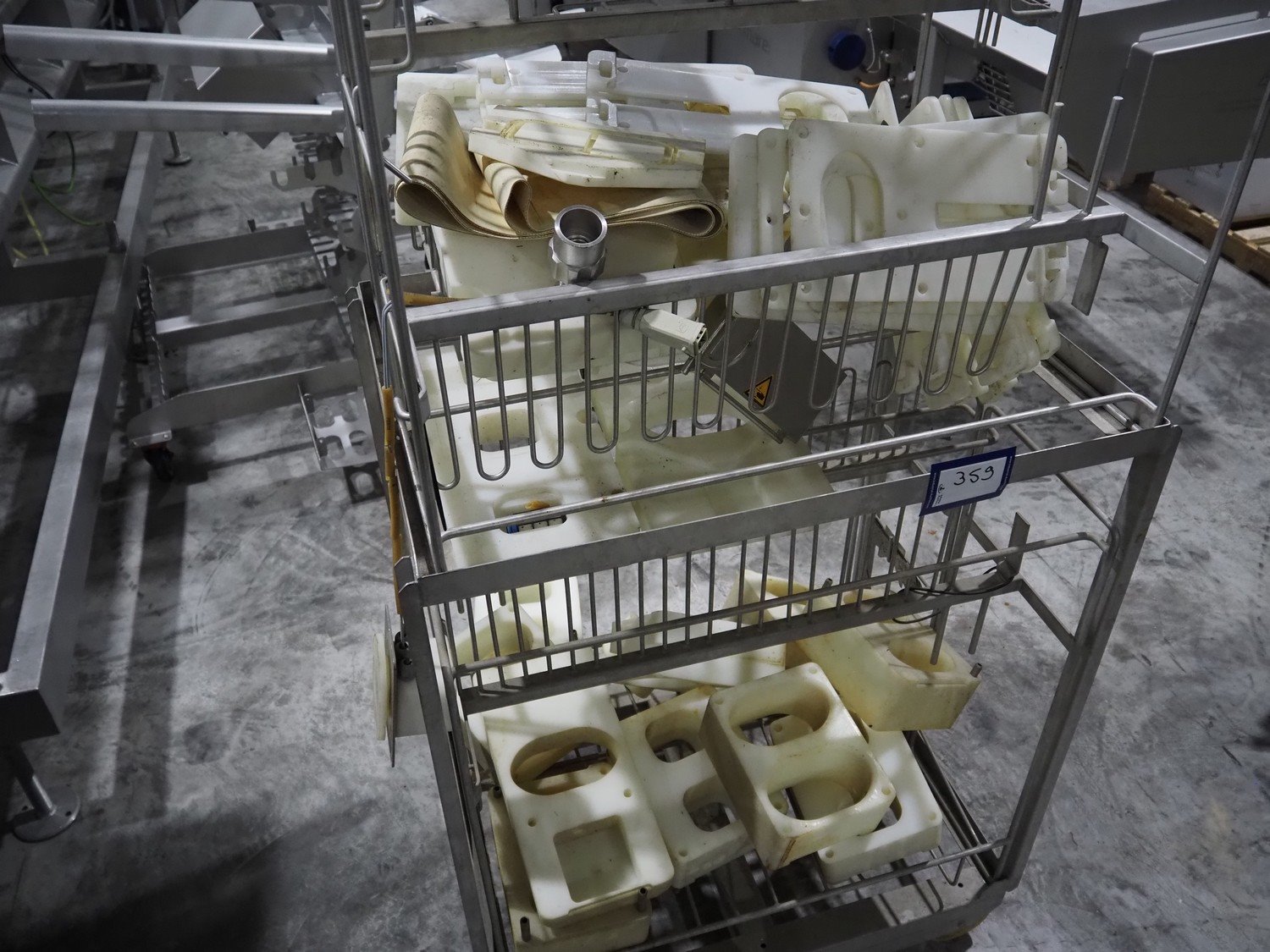 TVM mobile portioning machine, type: TVM - Portio 4000, serial number: 09-99.26445 138, year of construction: 1999, 400 V, 3 Ph, 50 Hz, 2.5 A, weight: 380 kg, plastic belt, belt width: 205 mm, total dimensions: 1600 mm x 1100 mm x 2100 mm. Including s/s trolley with parts, dimensions: 860 mm x 620 mm x 1800 mm. Kavel locatie: Langereijt 29A, 5091 JP Middelbeers, Nederland
