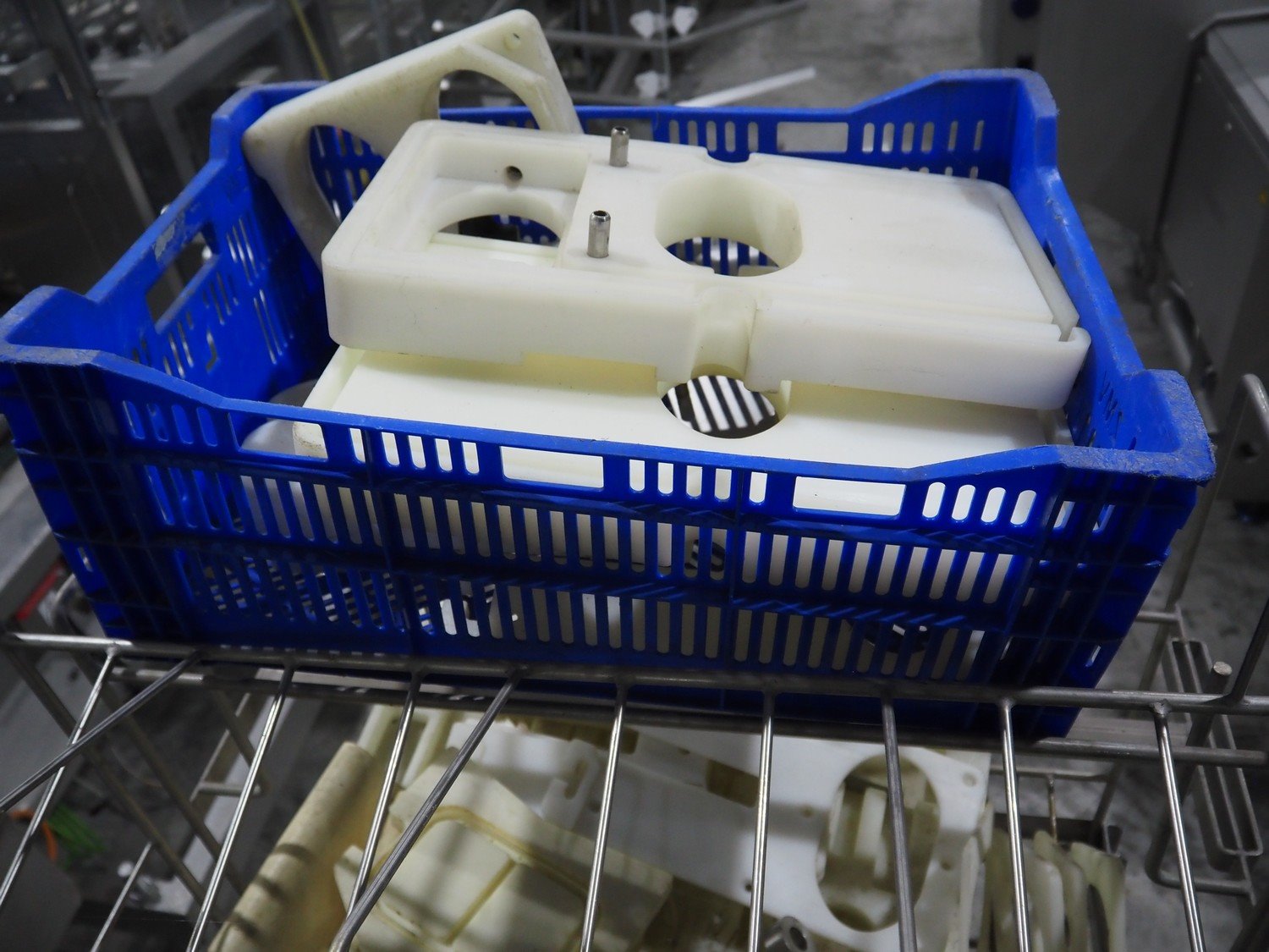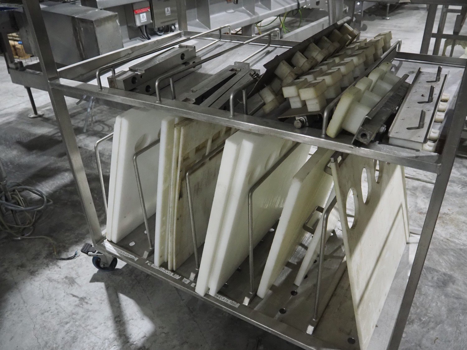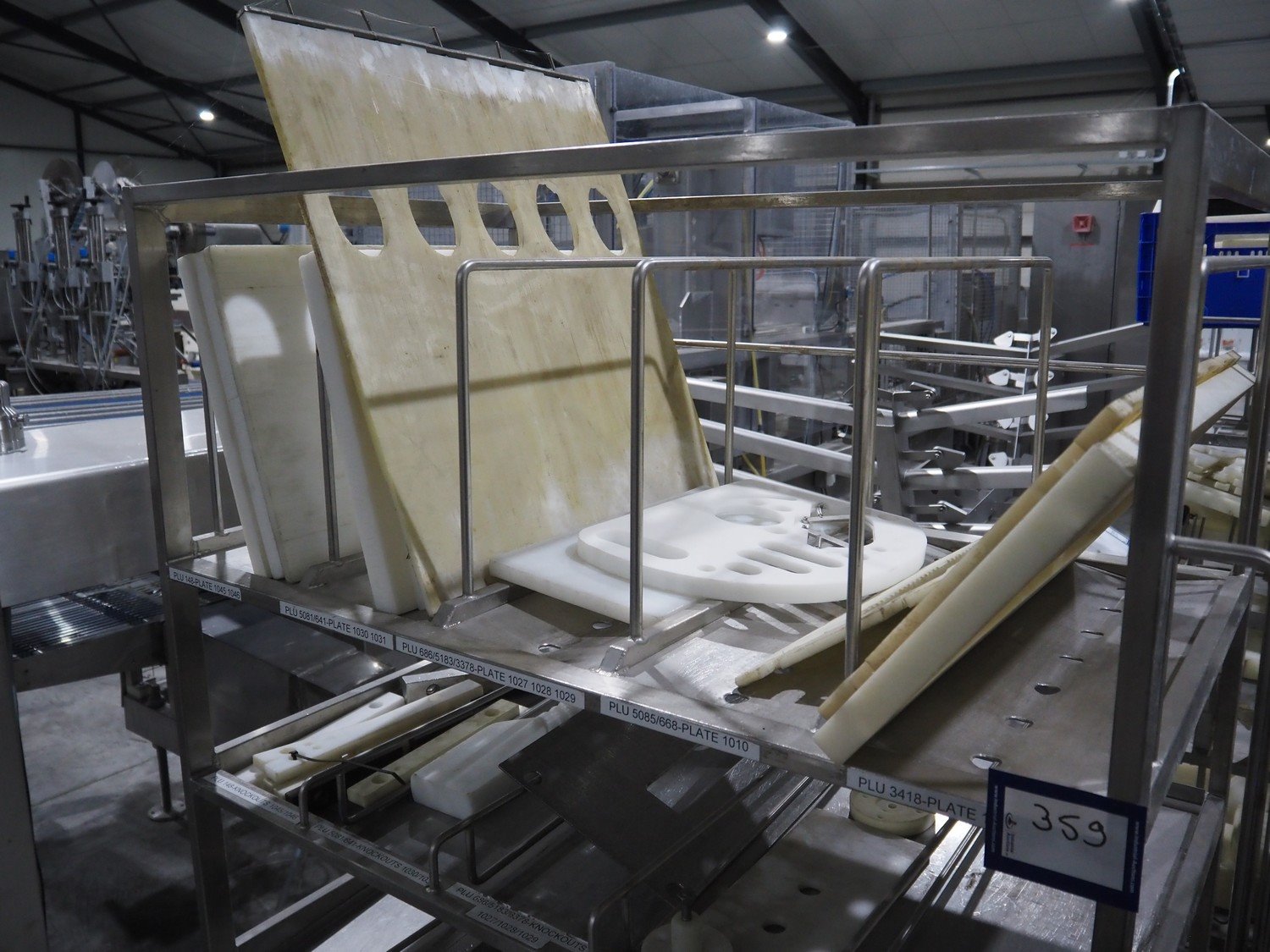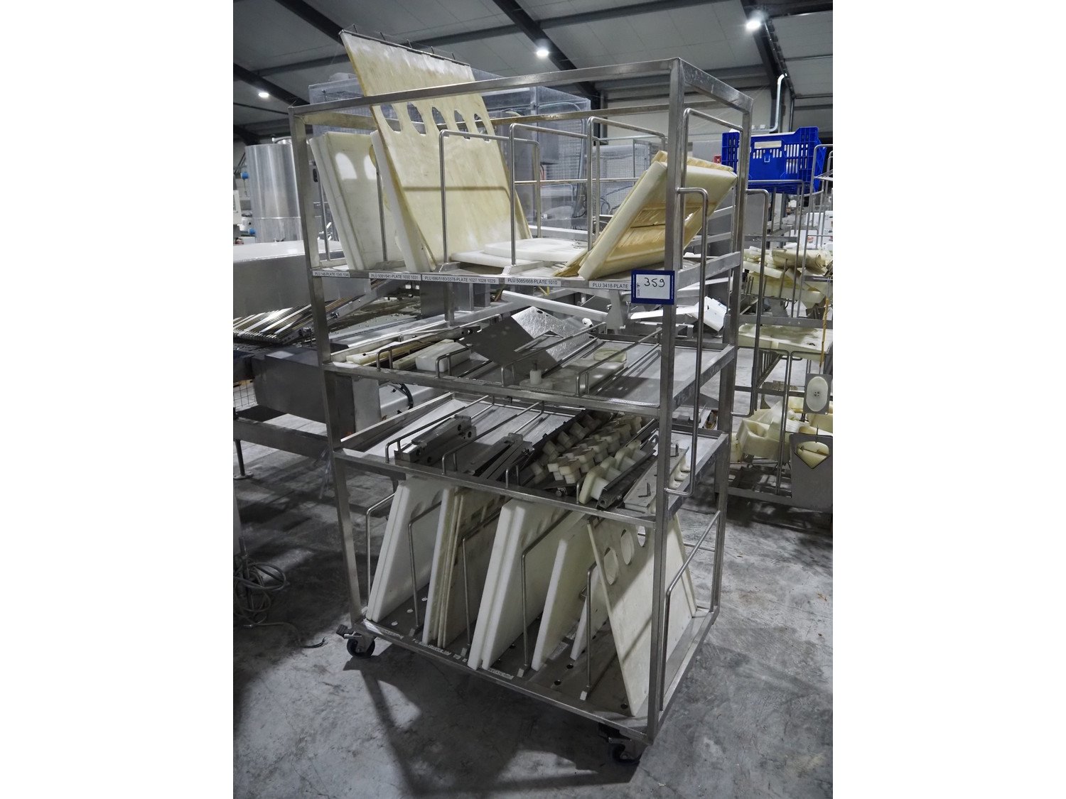 TVM mobile portioning machine, type: TVM - Portio 4000, serial number: 09-99.26445 138, year of construction: 1999, 400 V, 3 Ph, 50 Hz, 2.5 A, weight: 380 kg, plastic belt, belt width: 205 mm, total dimensions: 1600 mm x 1100 mm x 2100 mm. Including s/s trolley with parts, dimensions: 860 mm x 620 mm x 1800 mm. Kavel locatie: Langereijt 29A, 5091 JP Middelbeers, Nederland