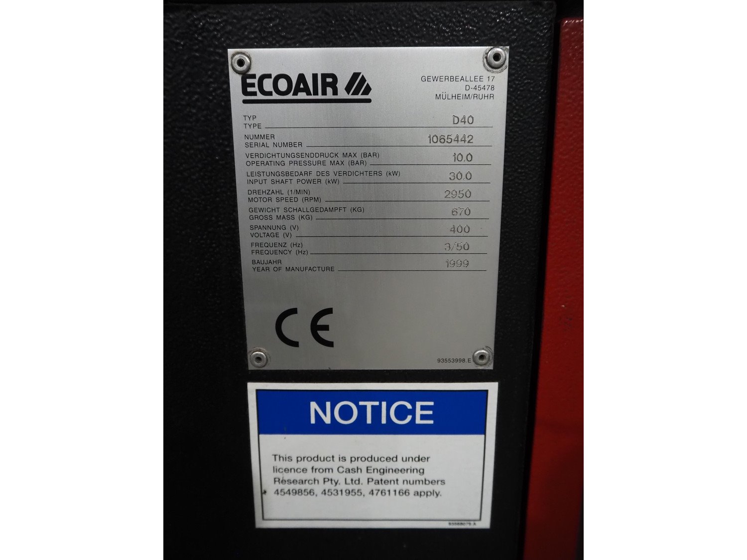 Ecoair air dryer, type: D40, serial number: 1065442, year of construction: 1999, 400 V, 3 Ph, 50 Hz, weight: 670 kg, dimensions: 2000 mm x 800 mm x 1500 mm. Kavel locatie: Langereijt 29A, 5091 JP Middelbeers, Nederland