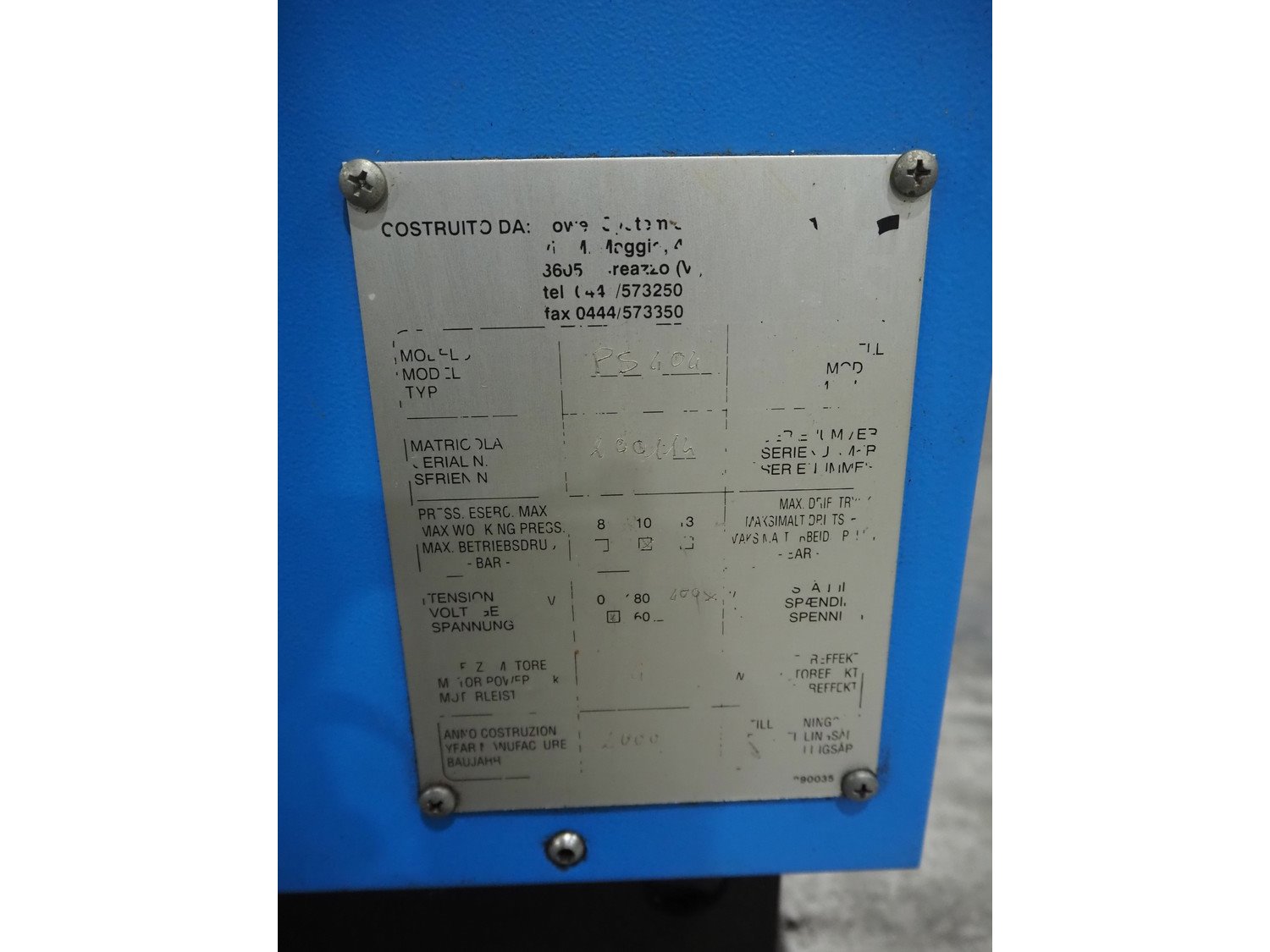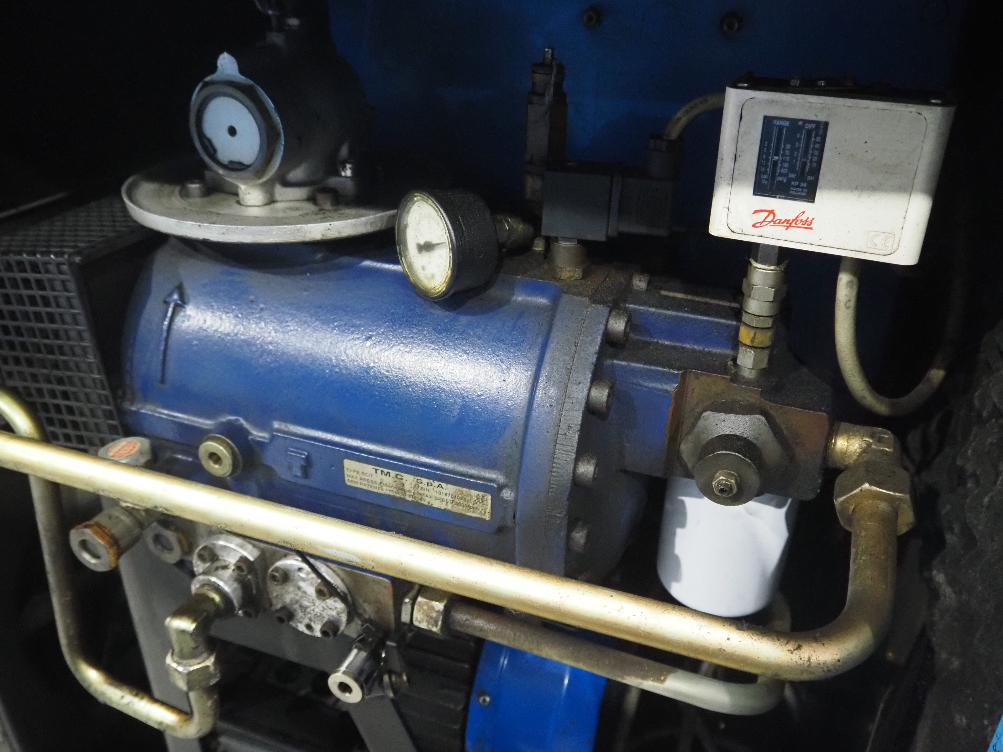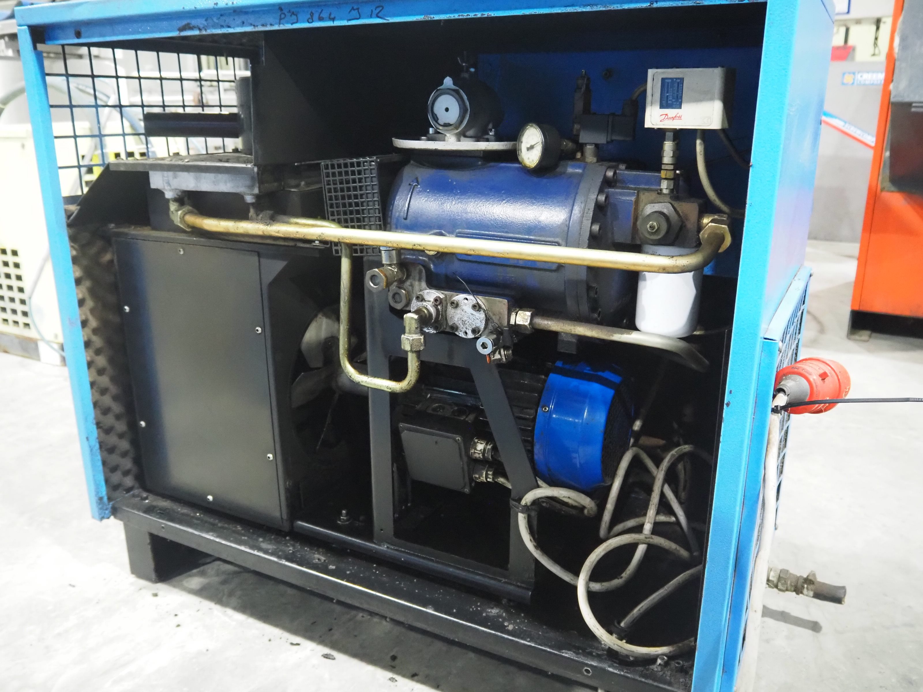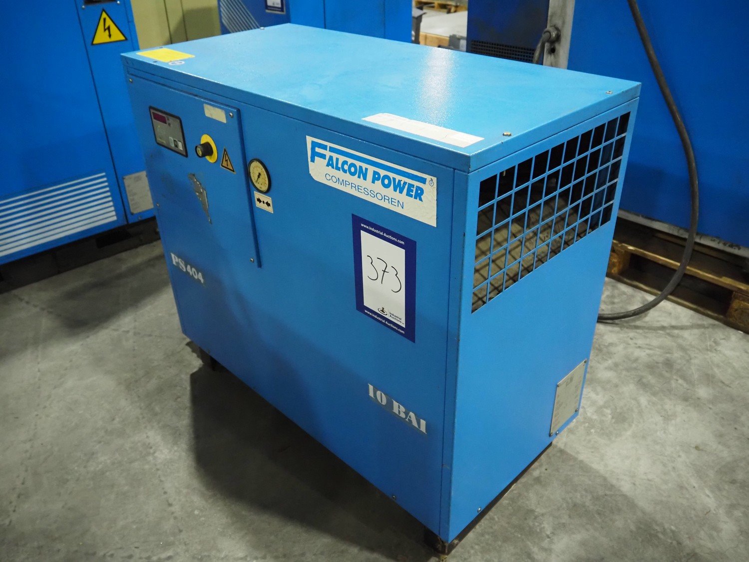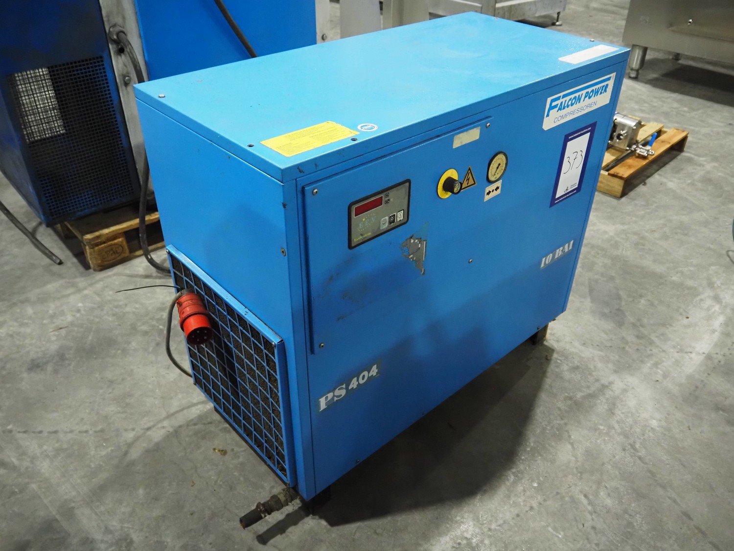 Falcon air compressor, type: PS404, serial number: 20014, year of construction: 2000, dimensions: 1150 mm x 550 mm x 950 mm. Kavel locatie: Langereijt 29A, 5091 JP Middelbeers, Nederland