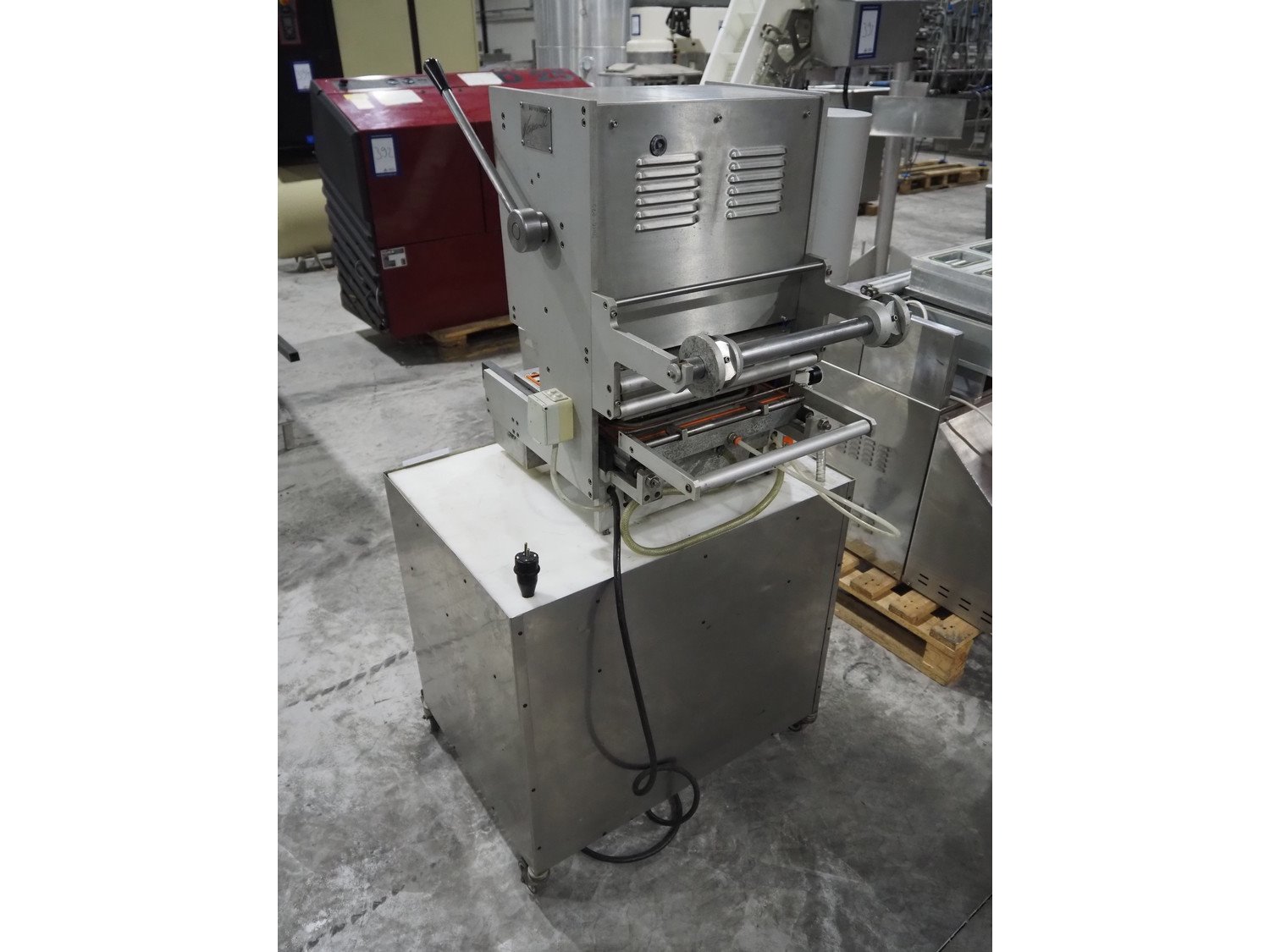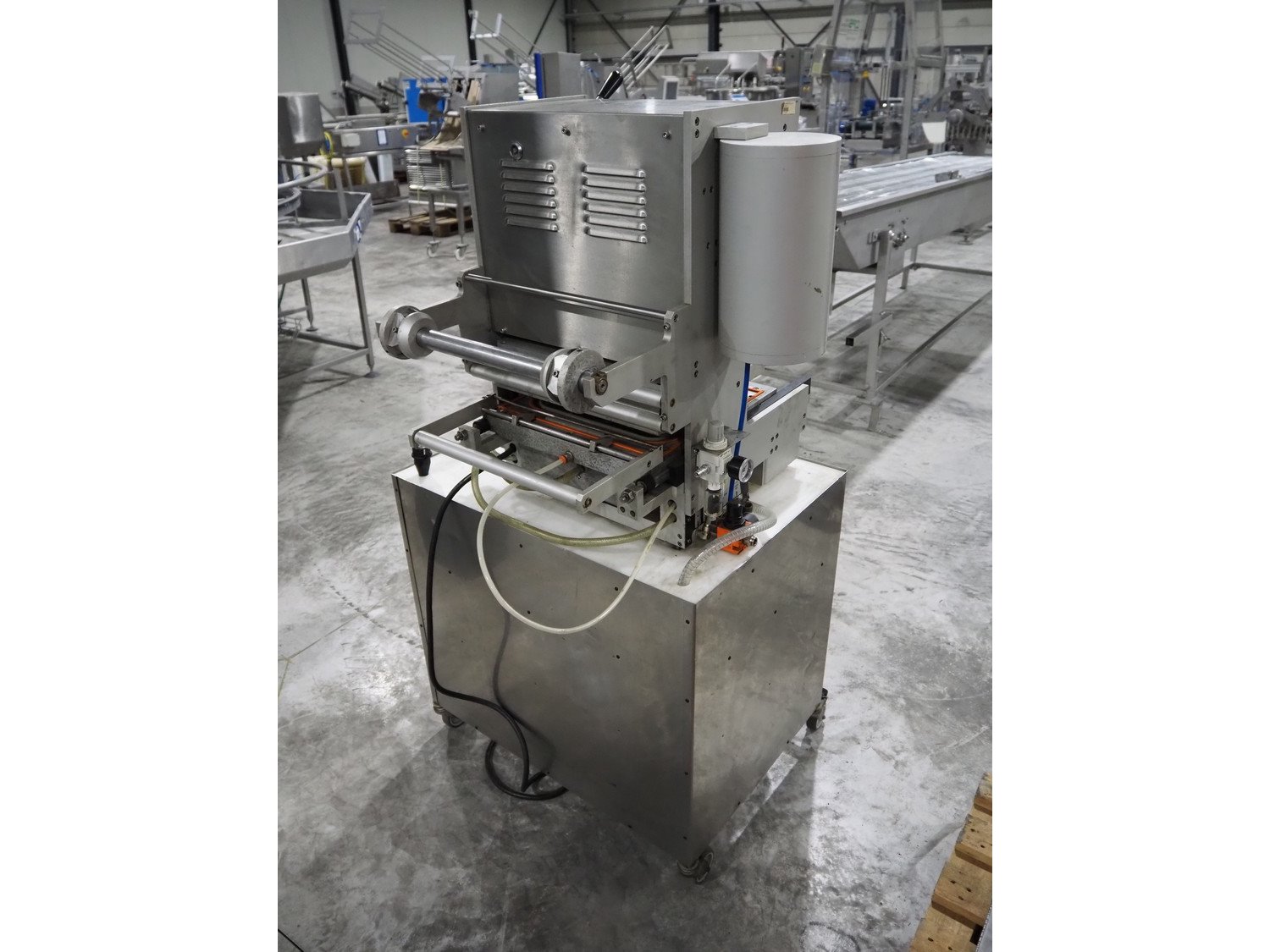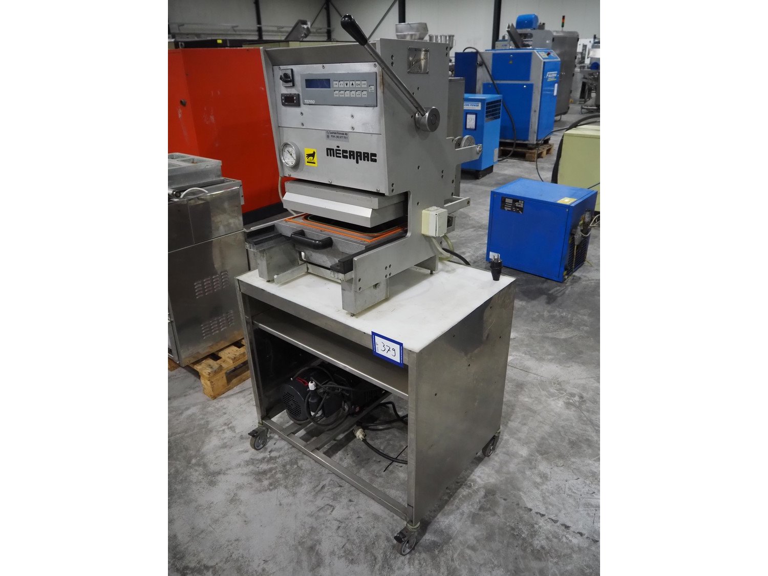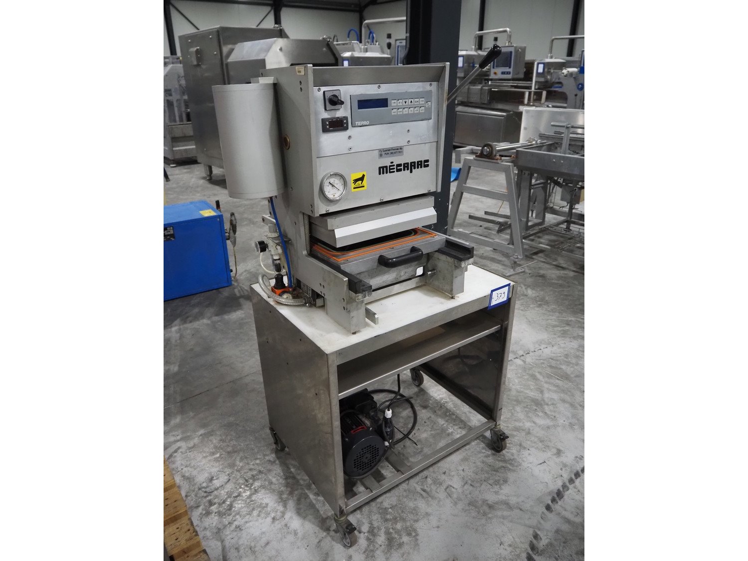 Mecapac mobile traysealer, dye: 290 mm x 220 mm, with Busch vacuum pump, total dimensions: 750 mm x 750 mm x 1430 mm. Kavel locatie: Langereijt 29A, 5091 JP Middelbeers, Nederland