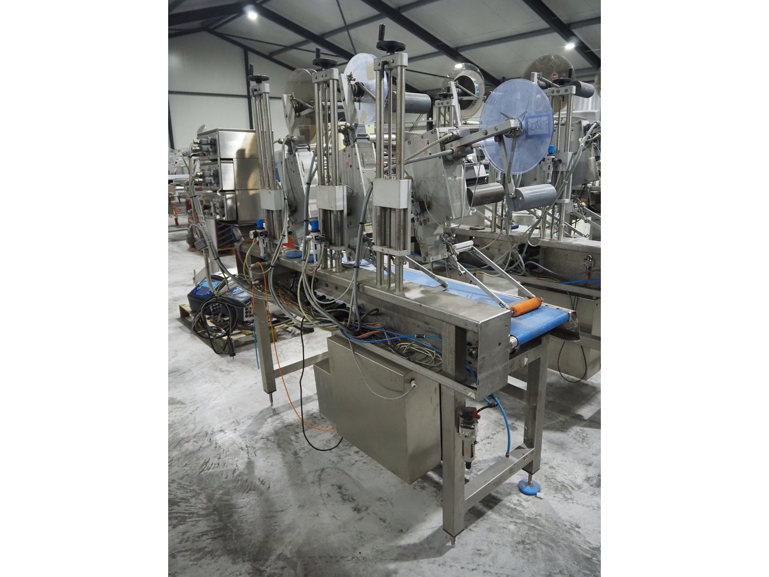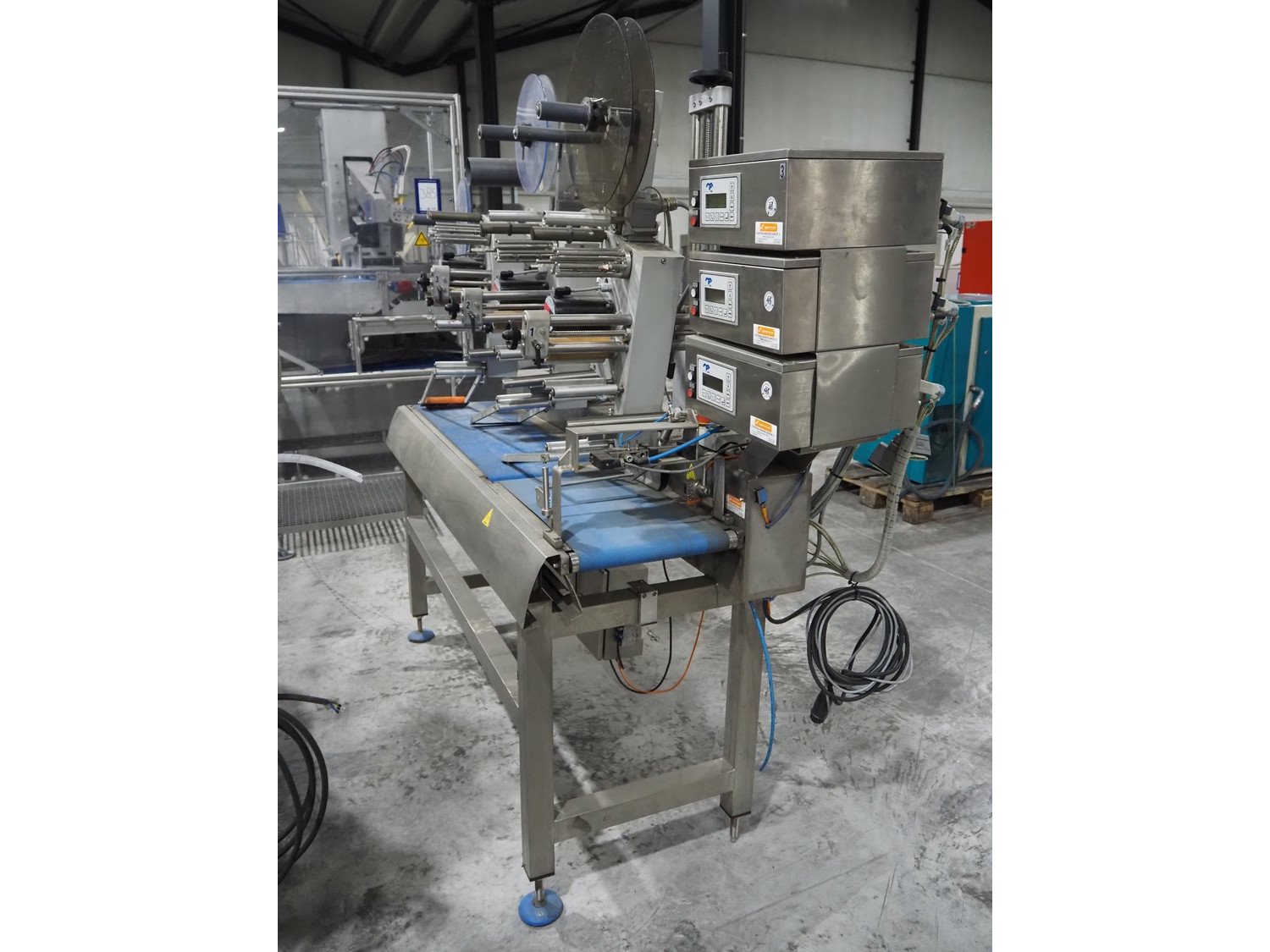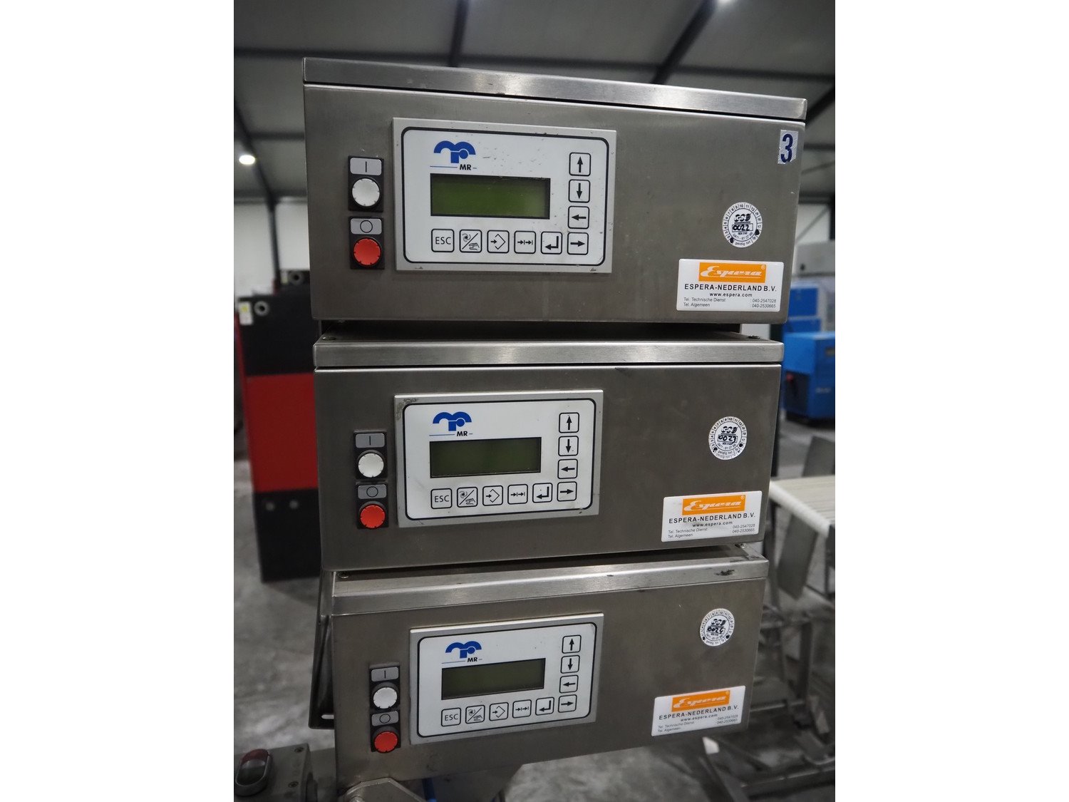 Espera labelling machine with 3 MR Etikettiertechnik labellers, Espera model: ES 7000, labeller type: (3x) MR233, year of construction: 2007, 230 V, 50 Hz, maximum label width: 150 mm, plastic belts, belt width: 350 mm, total dimensions: 2050 mm x 750 mm x 1950 mm. Kavel locatie: Langereijt 29A, 5091 JP Middelbeers, Nederland