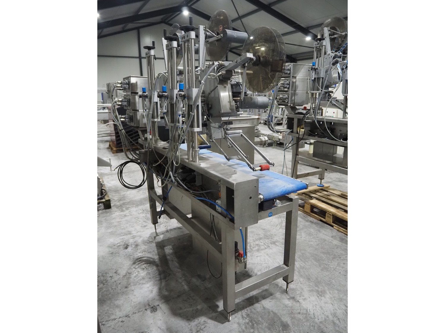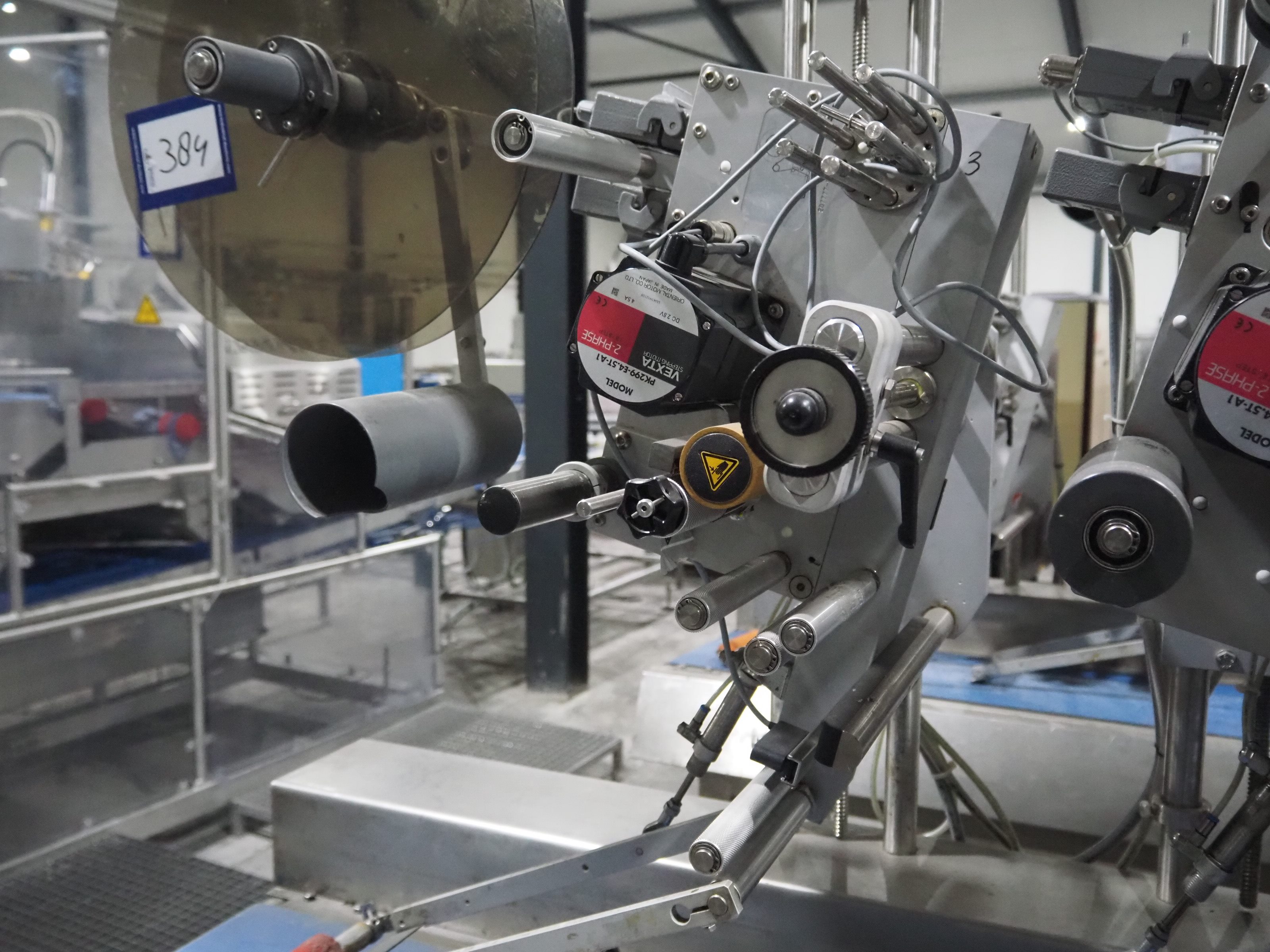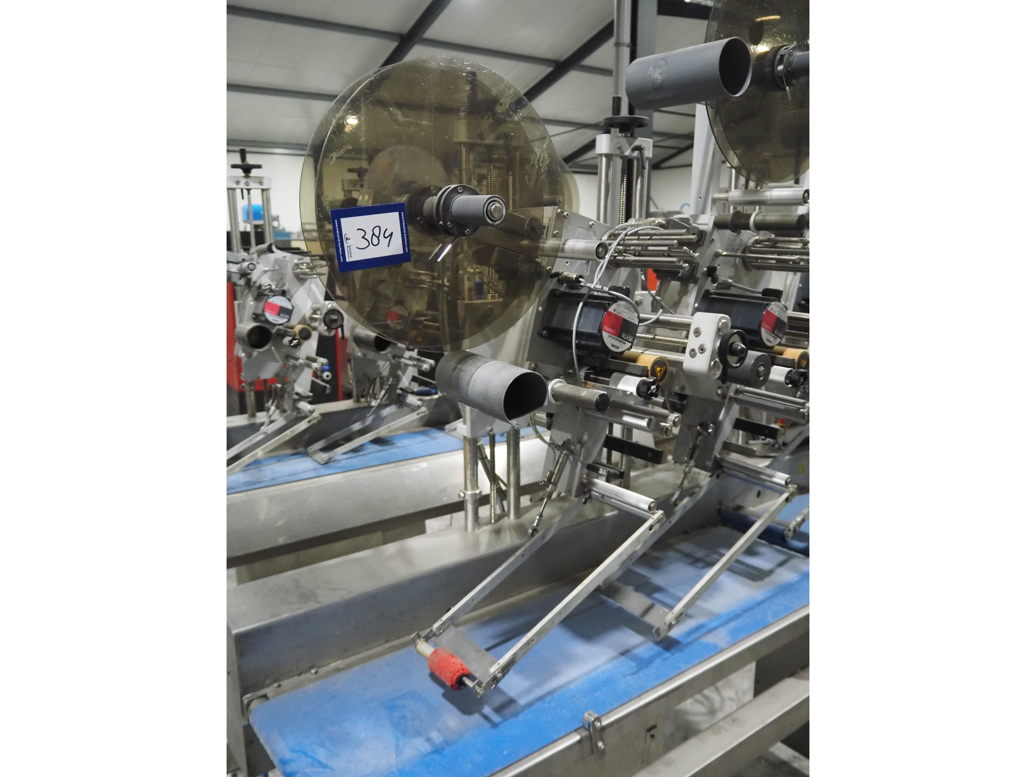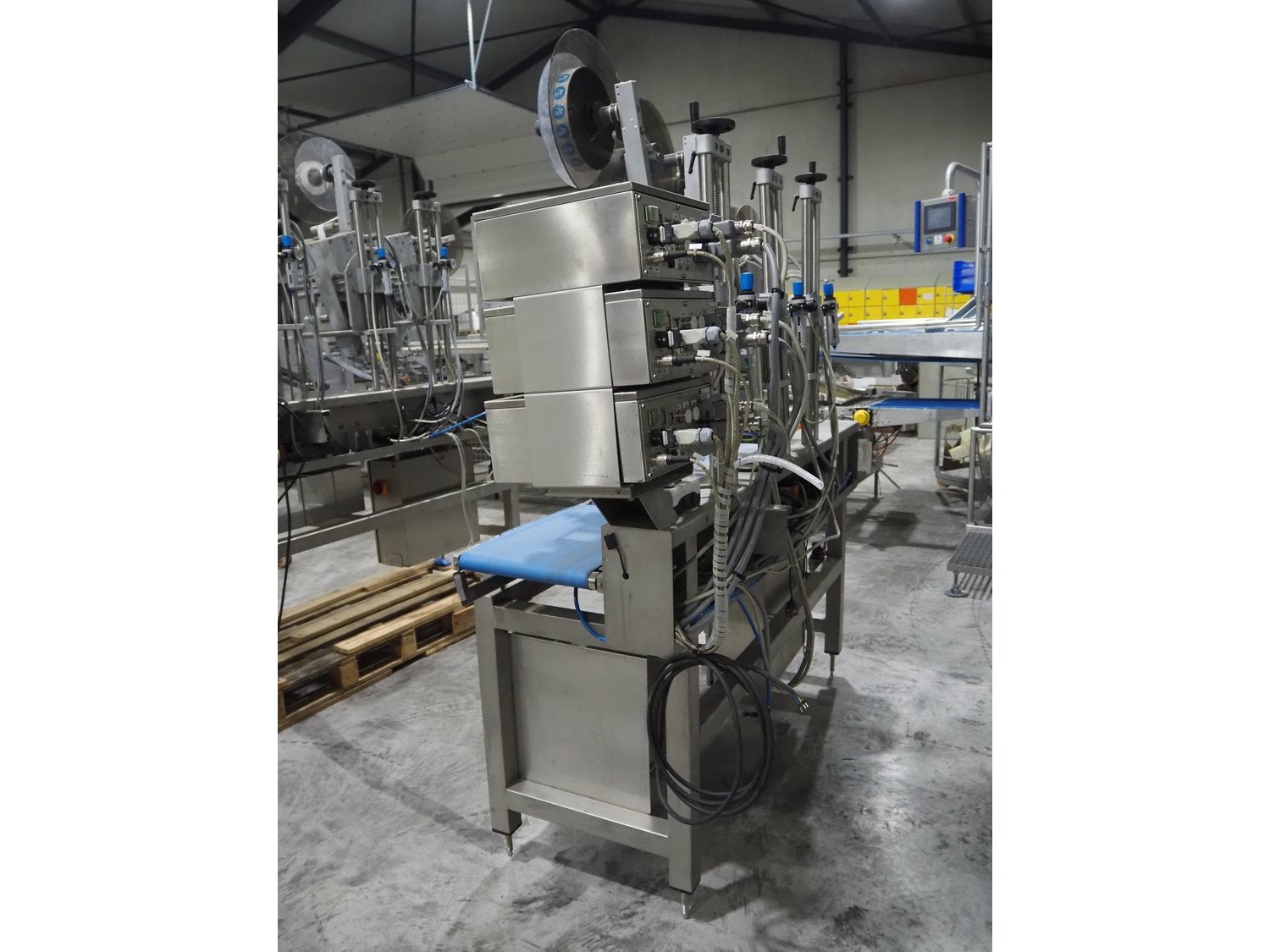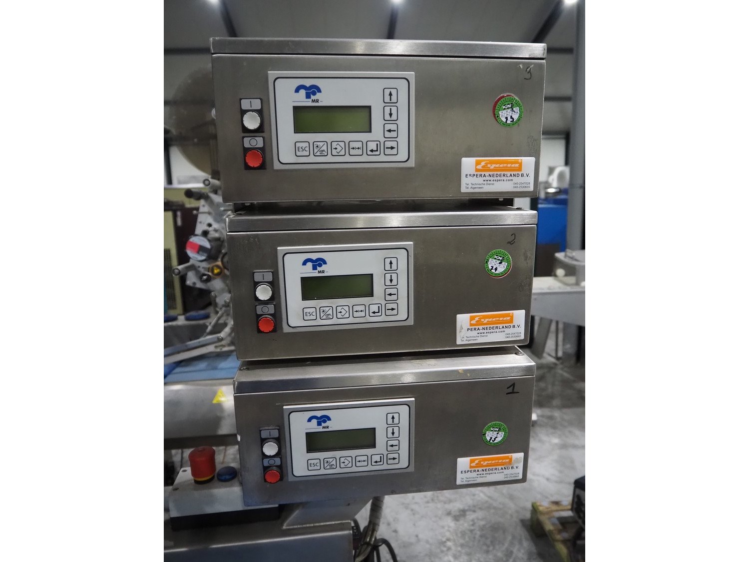 Espera labelling machine with 3 MR Etikettiertechnik labellers, Espera model: ES 7000, labeller type: (3x) MR233, year of construction: 2007, 230 V, 50 Hz, maximum label width: 150 mm, plastic belts, belt width: 350 mm, total dimensions: 2050 mm x 750 mm x 2150 mm. Kavel locatie: Langereijt 29A, 5091 JP Middelbeers, Nederland