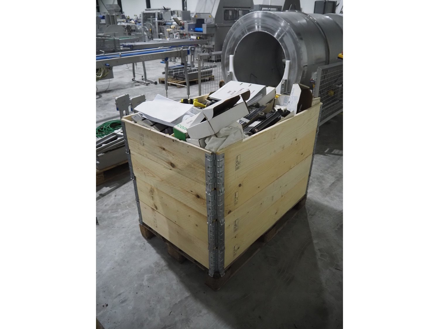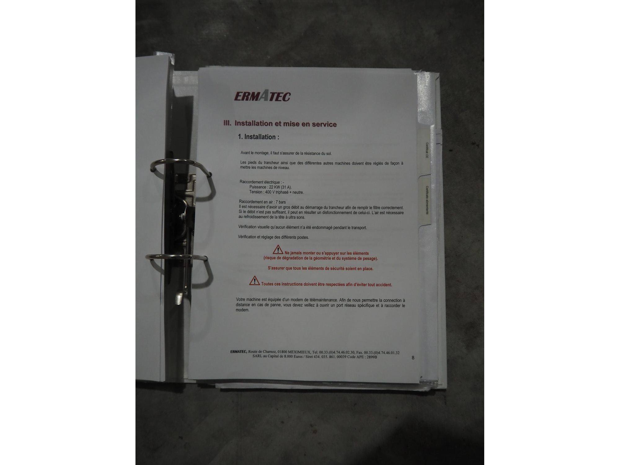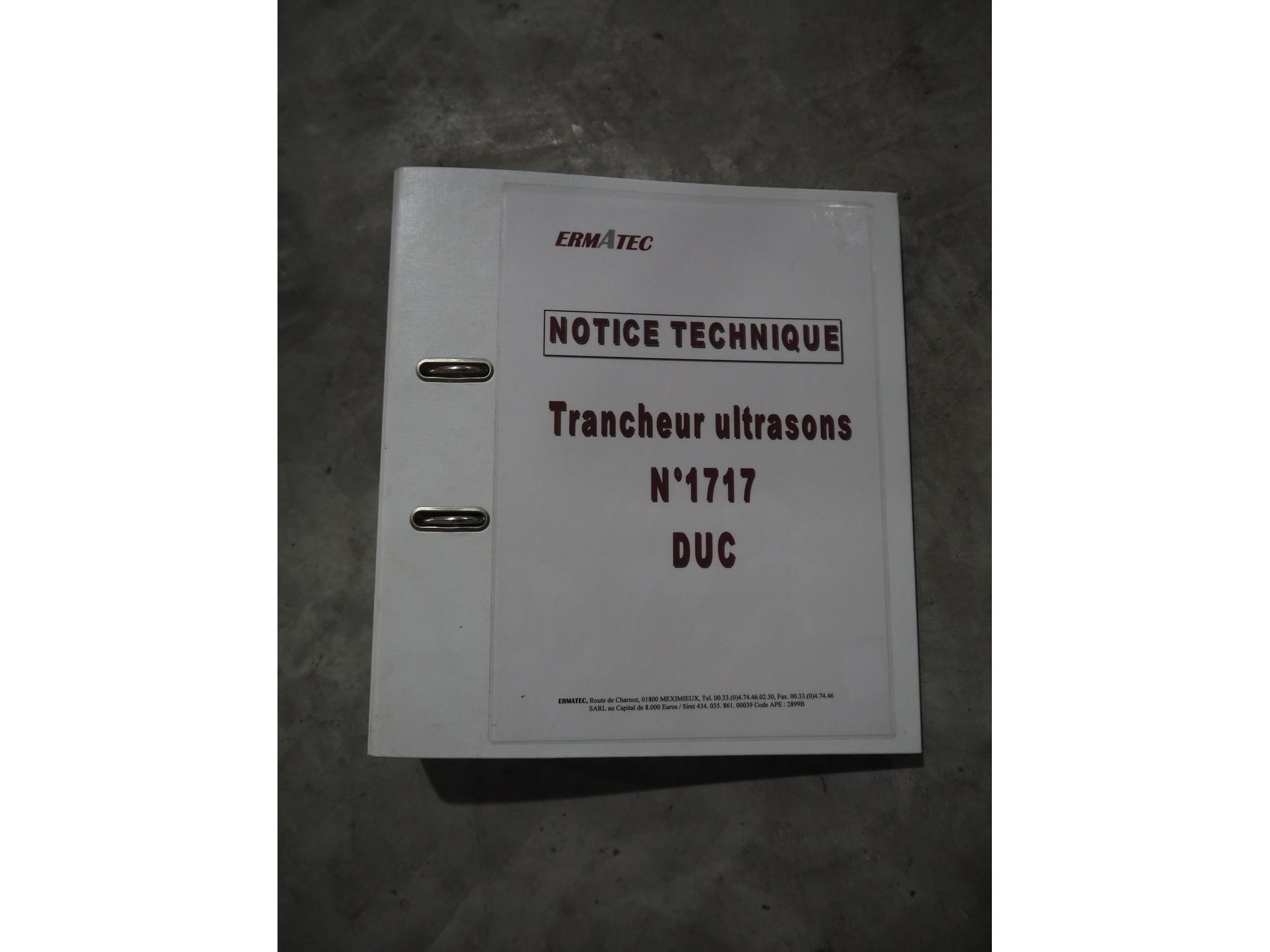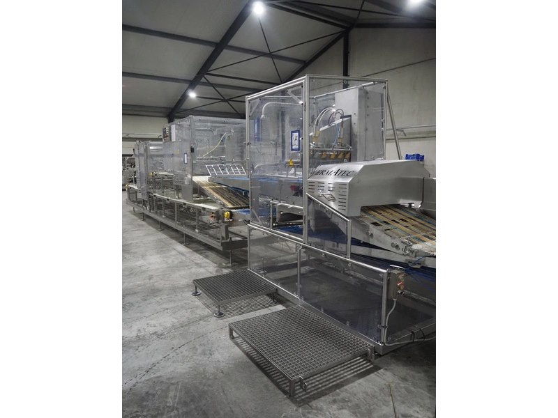 Ermatec ultrasonic slicing line used for cheese, type: 1717-19-12-08, serial number: Trancheur From, year of construction: 17/12/08, working width: 600 mm, 6 lanes, plastic belts, belt width: 75 mm, total dimensions: 13200 mm x 1900 mm x 2600 mm. Including pallet with various parts, dimensions: 1200 mm x 980 mm x 1120 mm. Including pallet box with various parts, dimensions pallet: 1200 mm x 800 mm x 1000 mm. Kavel locatie: Langereijt 29A, 5091 JP Middelbeers, Nederland