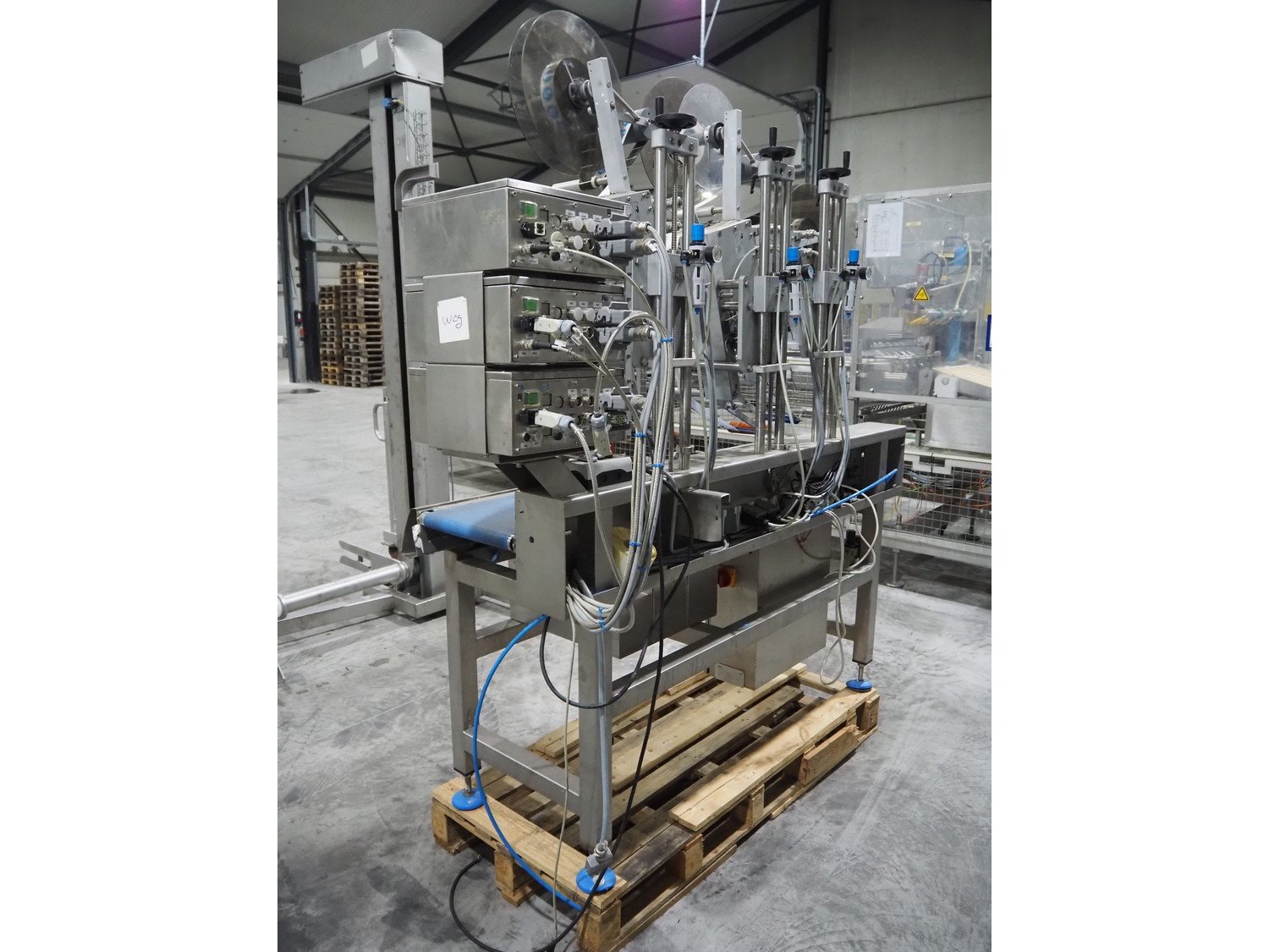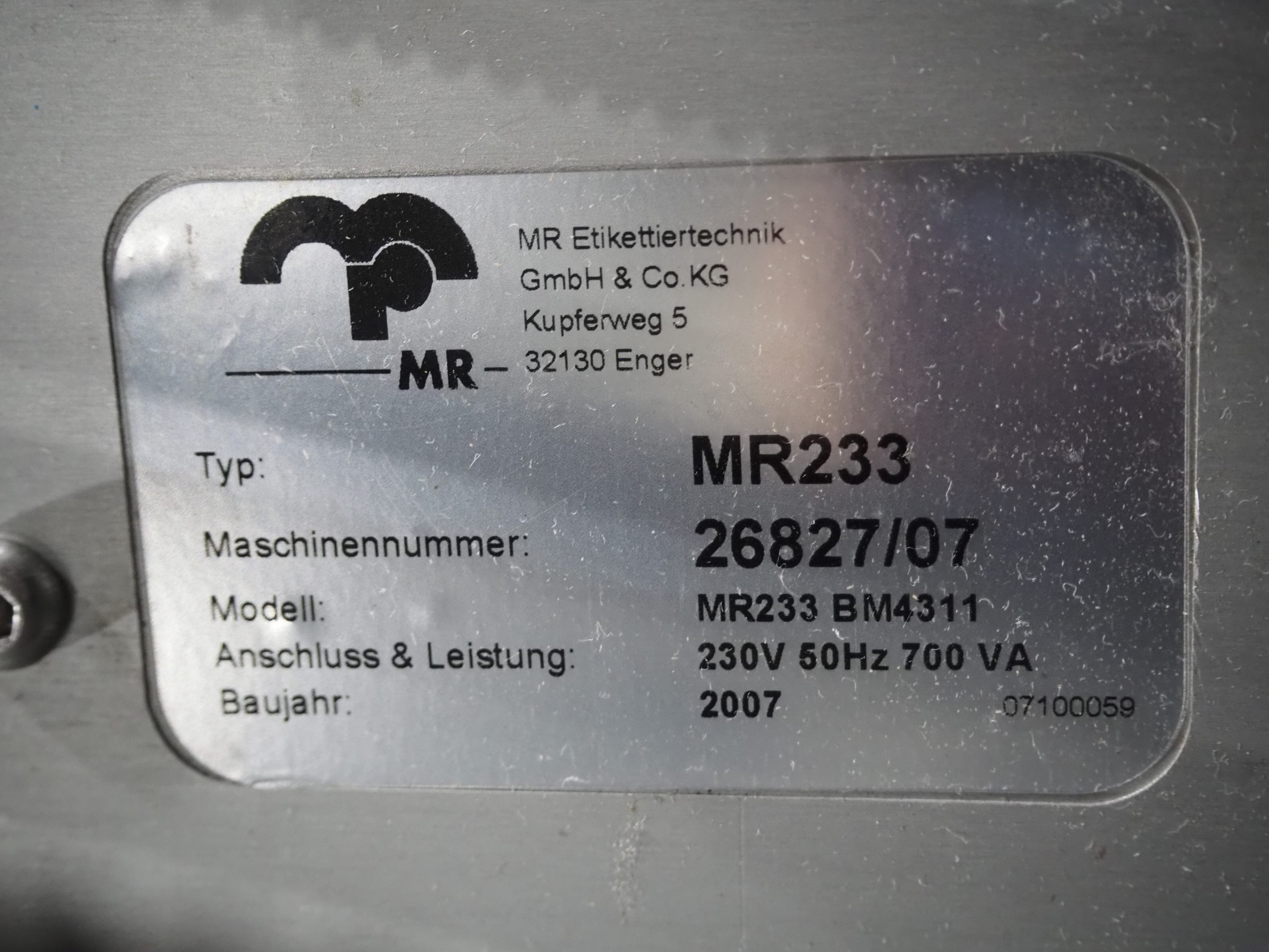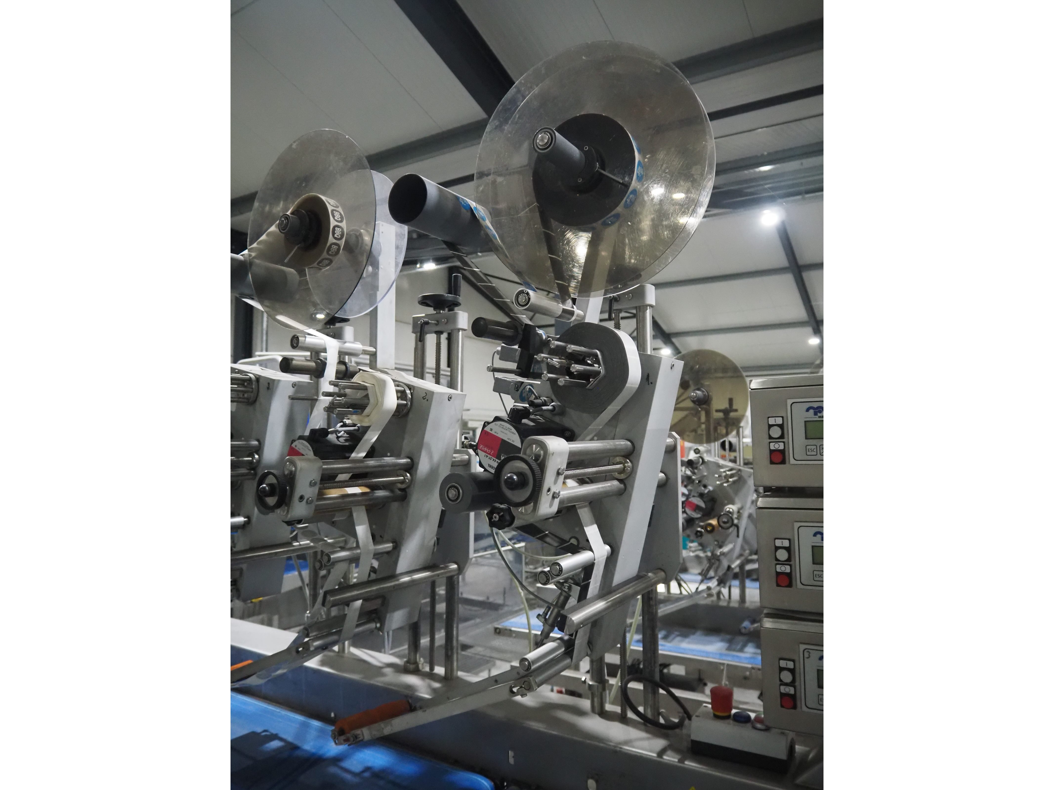 Espera labelling machine with 3 MR Etikettiertechnik labellers, Espera model: ES 7000, labeller type: (3x) MR233, year of construction: 2007, 230 V, 50 Hz, maximum label width: 150 mm, plastic belts, belt width: 350 mm, total dimensions: 2000 mm x 750 mm x 2200 mm. Kavel locatie: Langereijt 29A, 5091 JP Middelbeers, Nederland