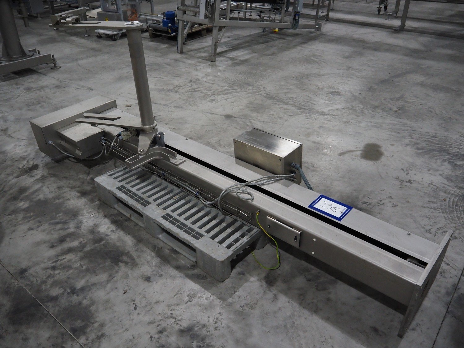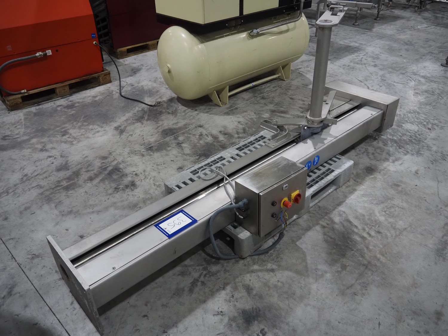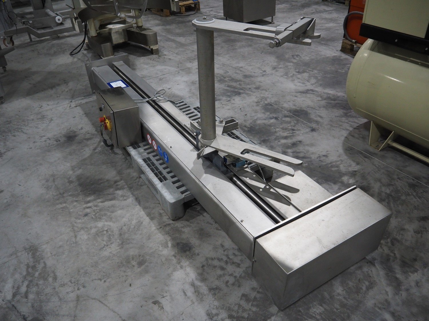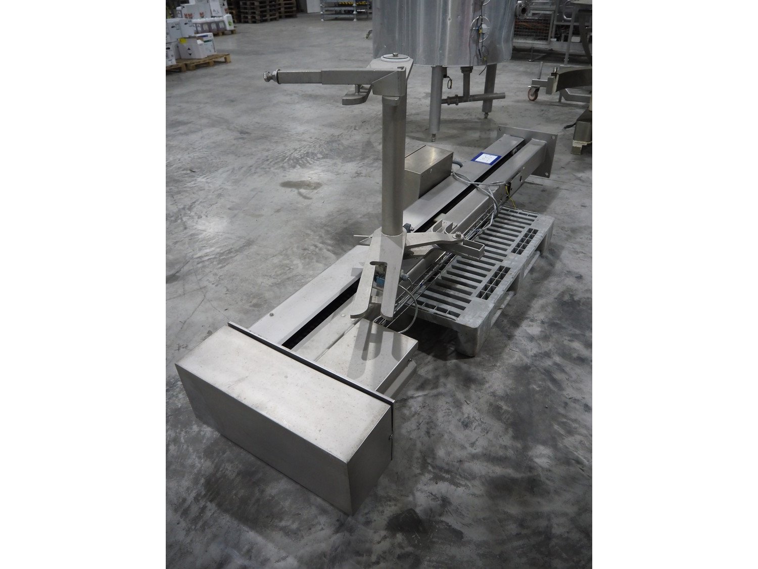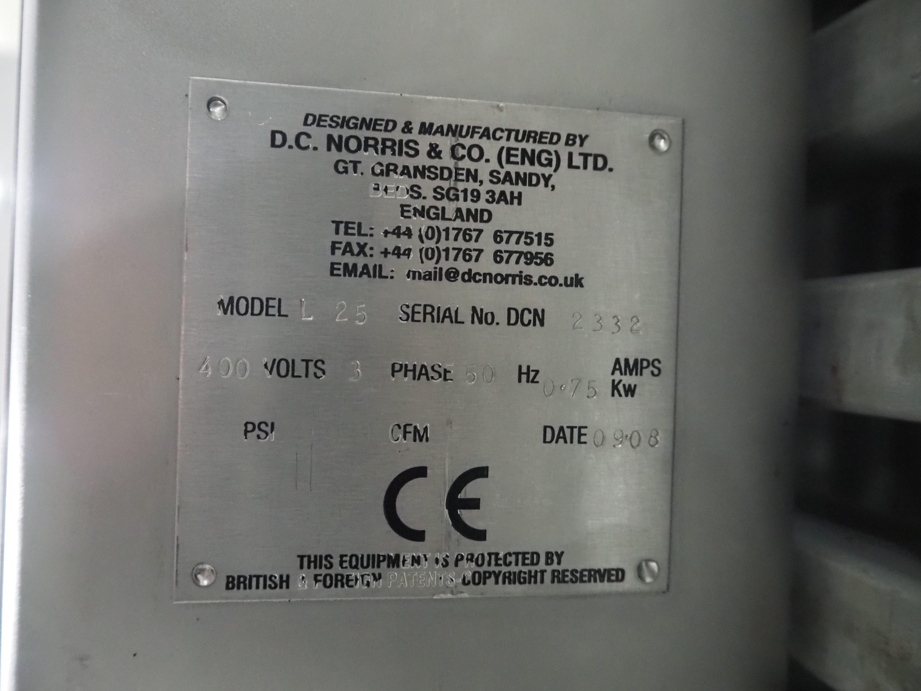 D.C. Norris lifter for meat bins, lifting height: 1700 mm, maximum capacity: 350 kg, total dimensions: 1100 mm x 900 mm x 2950 mm. Kavel locatie: Langereijt 29A, 5091 JP Middelbeers, Nederland