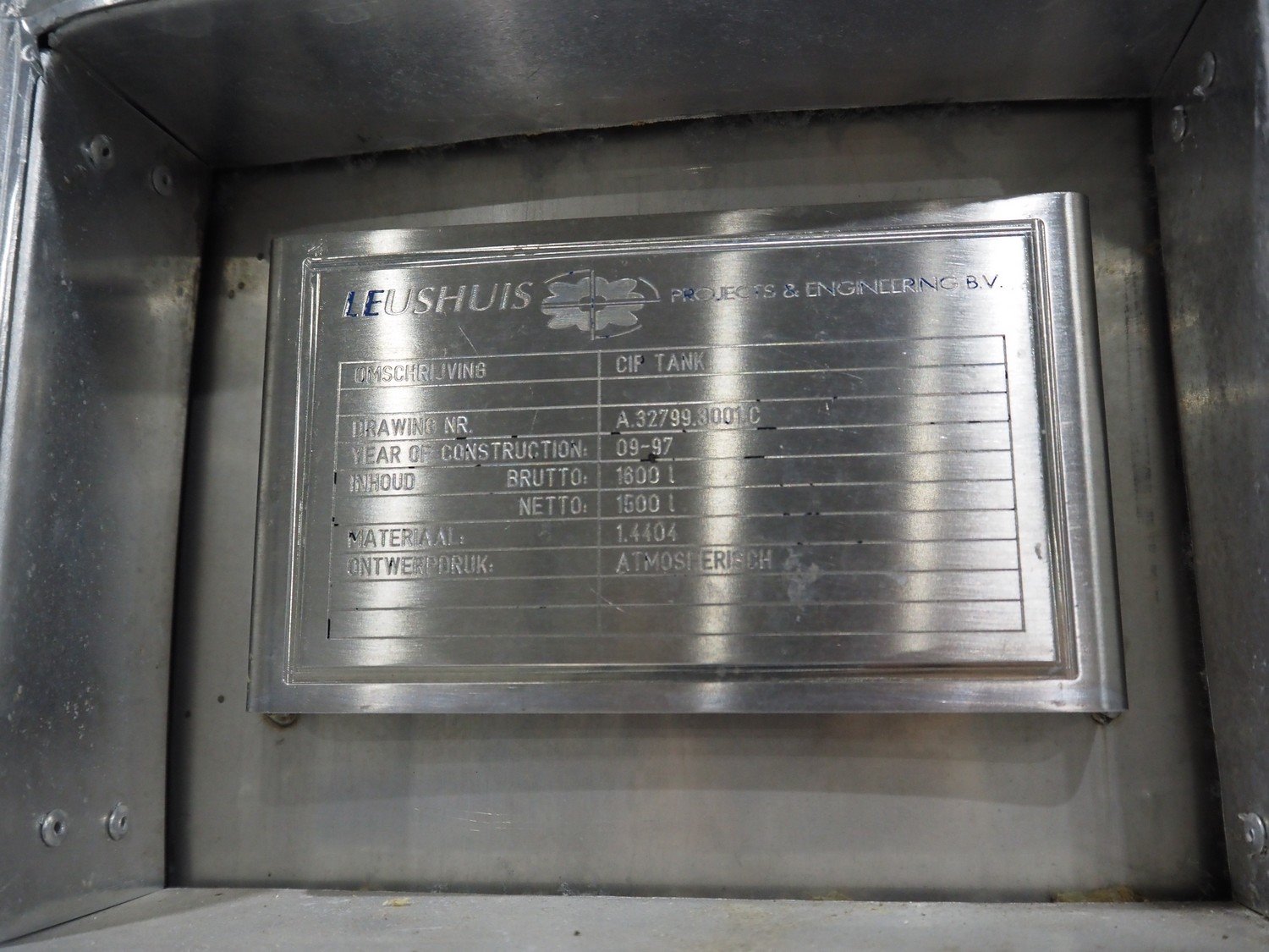 Leushuis insulated tank, number: A.32799.3001.C, year of construction: 09-97, capacity: 1500 liter, dimensions: Ø 1400 mm x 2550 mm. Kavel locatie: Langereijt 29A, 5091 JP Middelbeers, Nederland