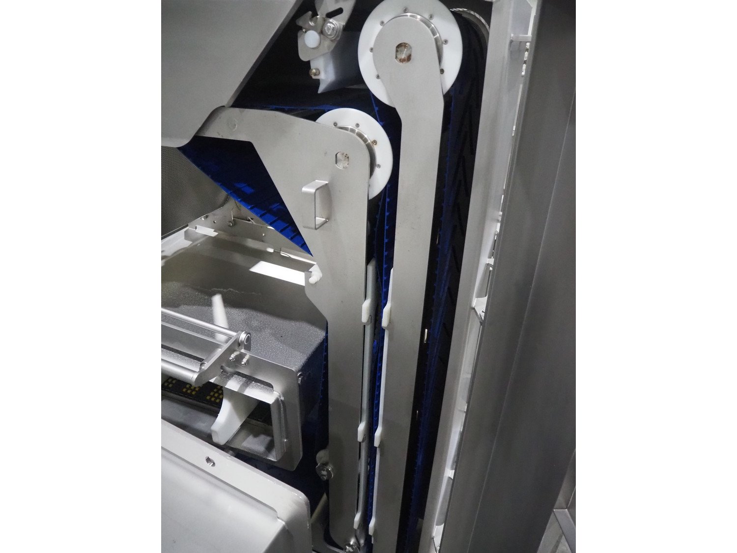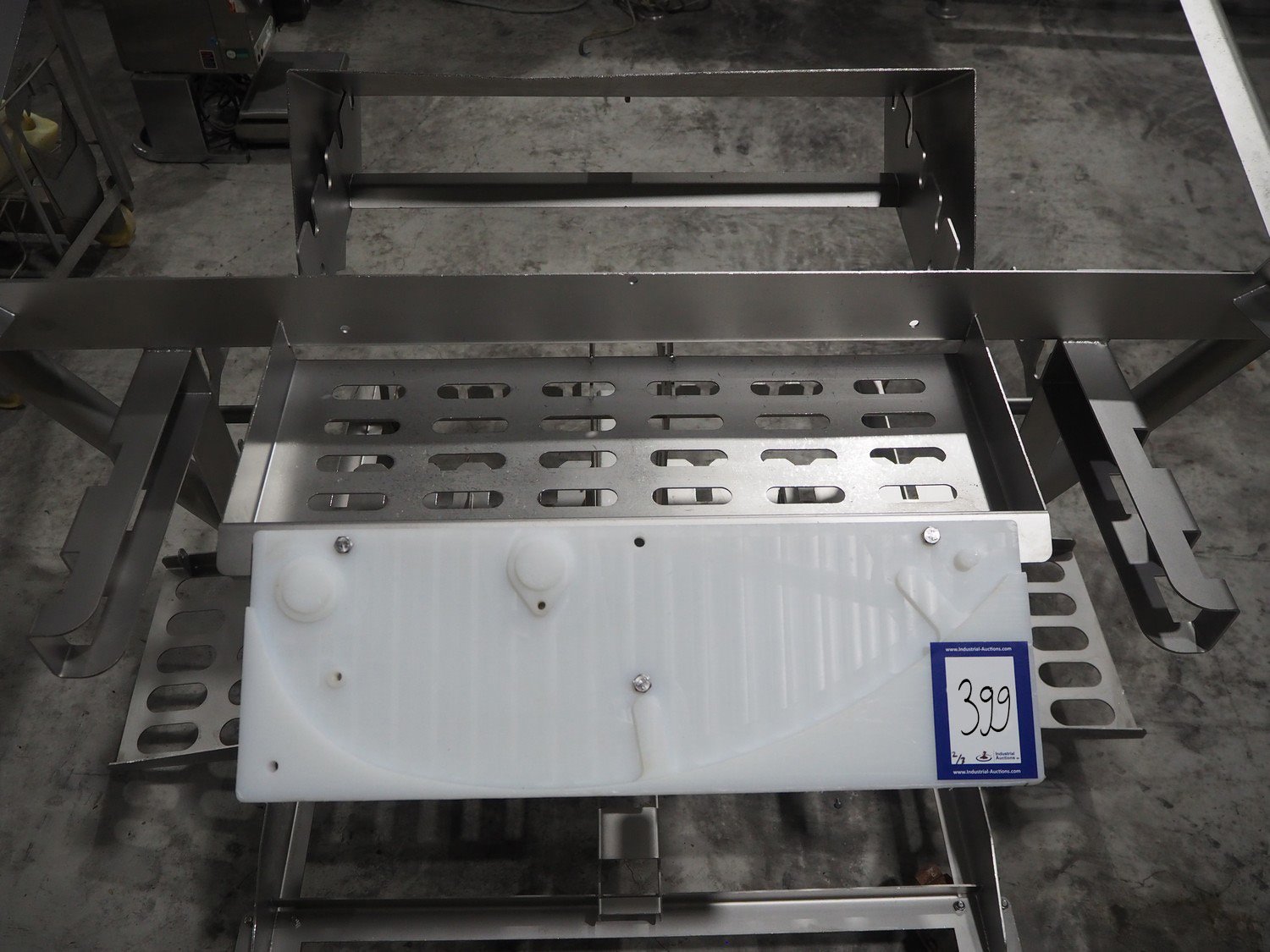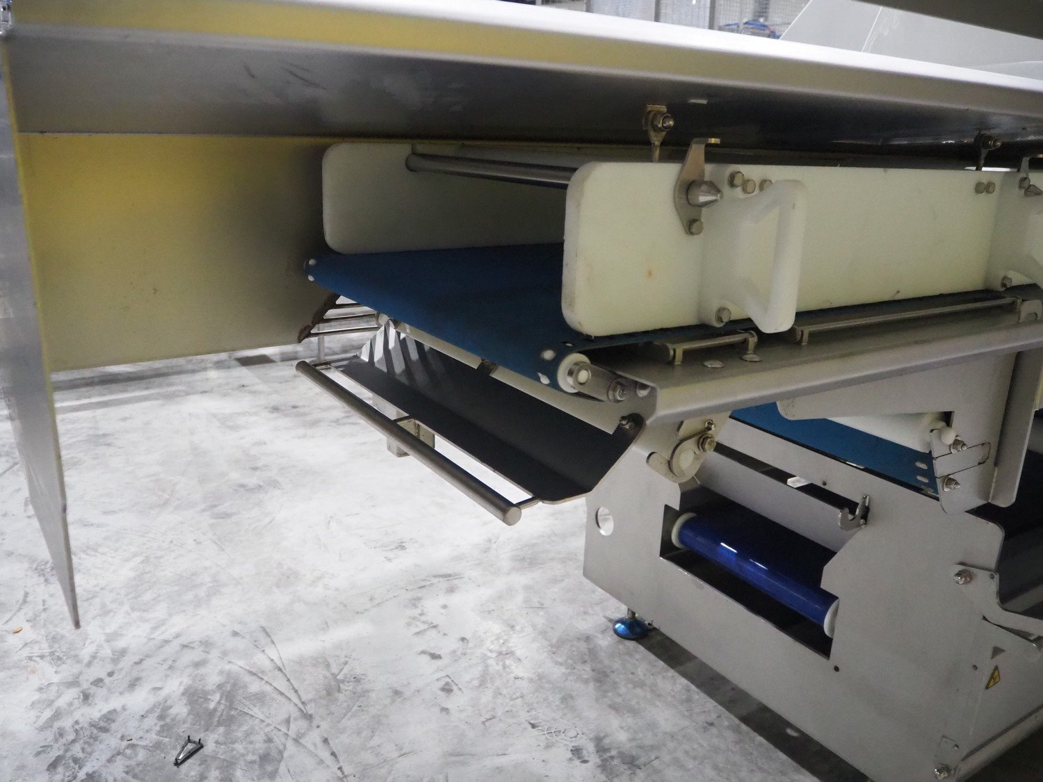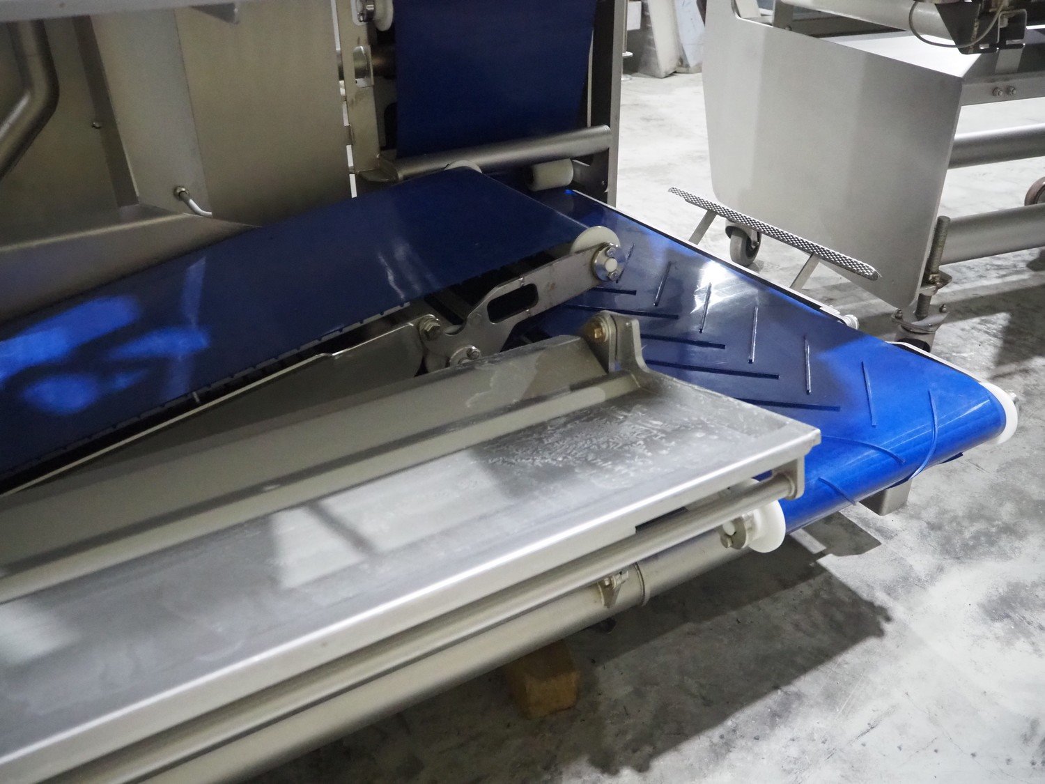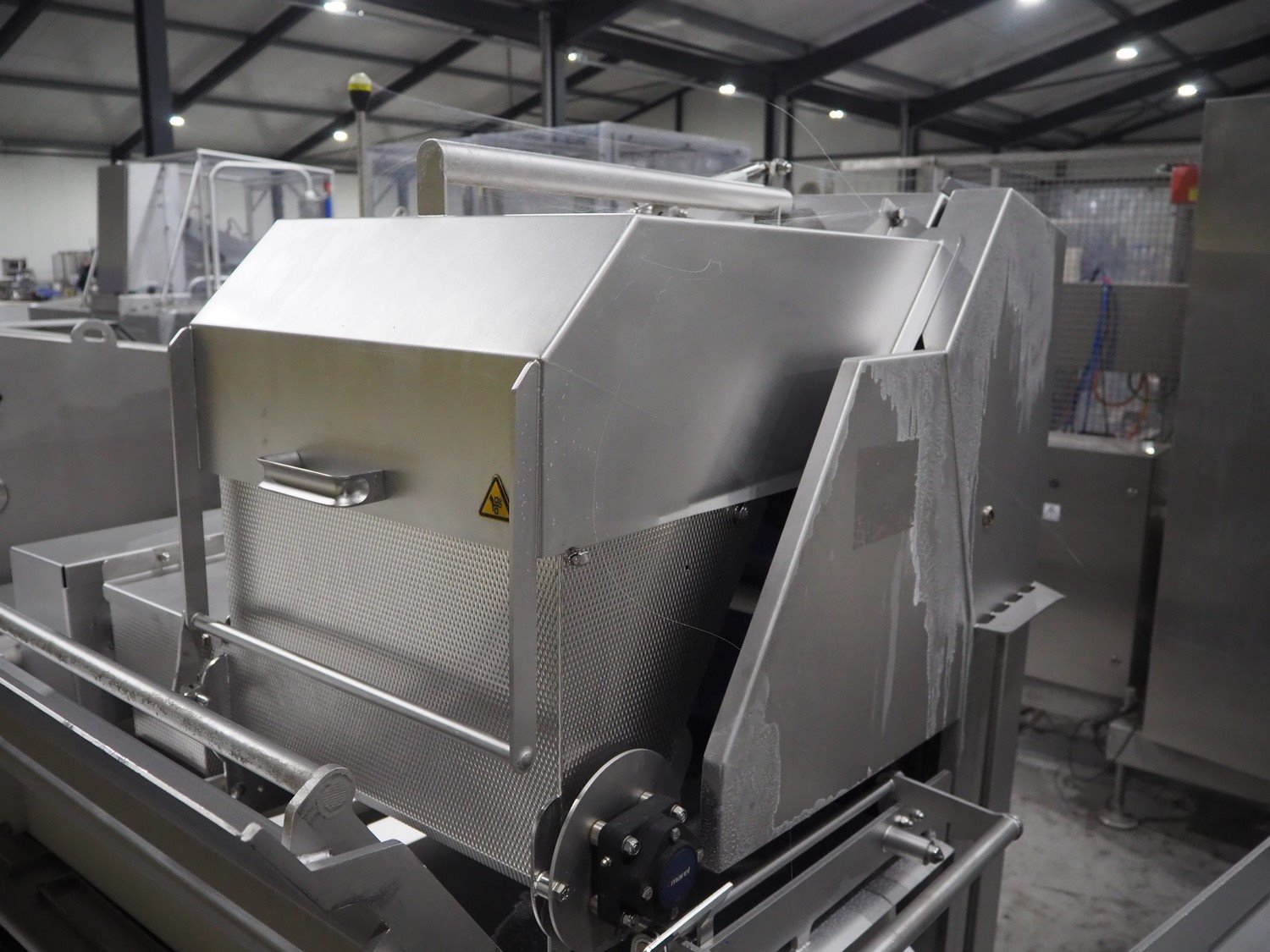 Marel trim inspection and portioning system, model: 850-9000-0011, type: 0012-102-00013, serial number: A143817, year of construction: 2016, plastic infeed belt, belt width: 590 mm, plastic belt, belt width: (2x) 380 mm, plastic mesh belt, belt width: 260 mm and 200 mm, total dimensions: 5150 mm x 1550 mm x 2160 mm. Including outfeed belt, dimensions: 1840 mm x 900 mm x 1180 mm, and 2x trolley for parts, dimensions: 2000 mm x 1150 mm x 1550 mm and 1650 mm x 1450 mm x 980 mm. Kavel locatie: Langereijt 29A, 5091 JP Middelbeers, Nederland