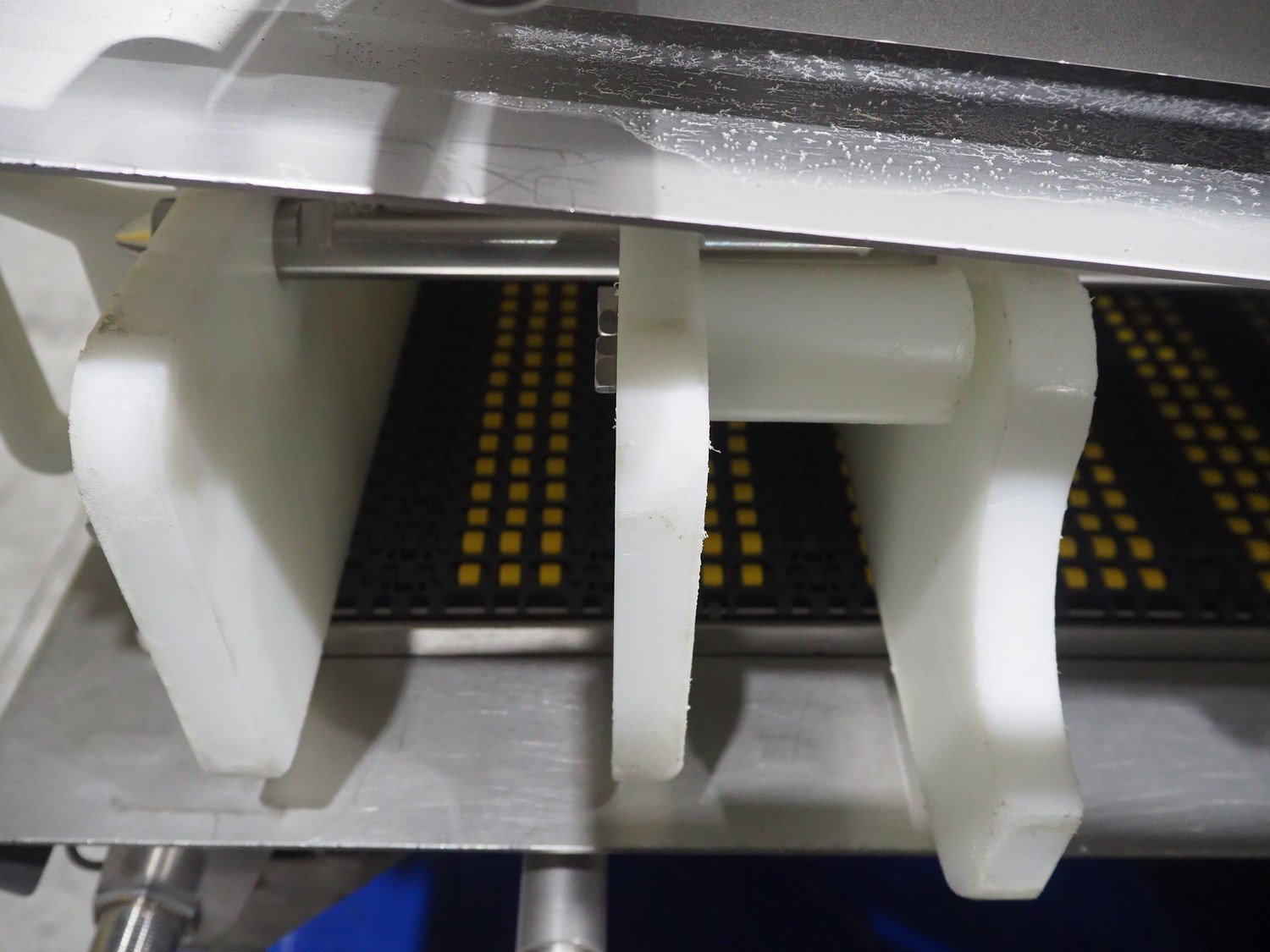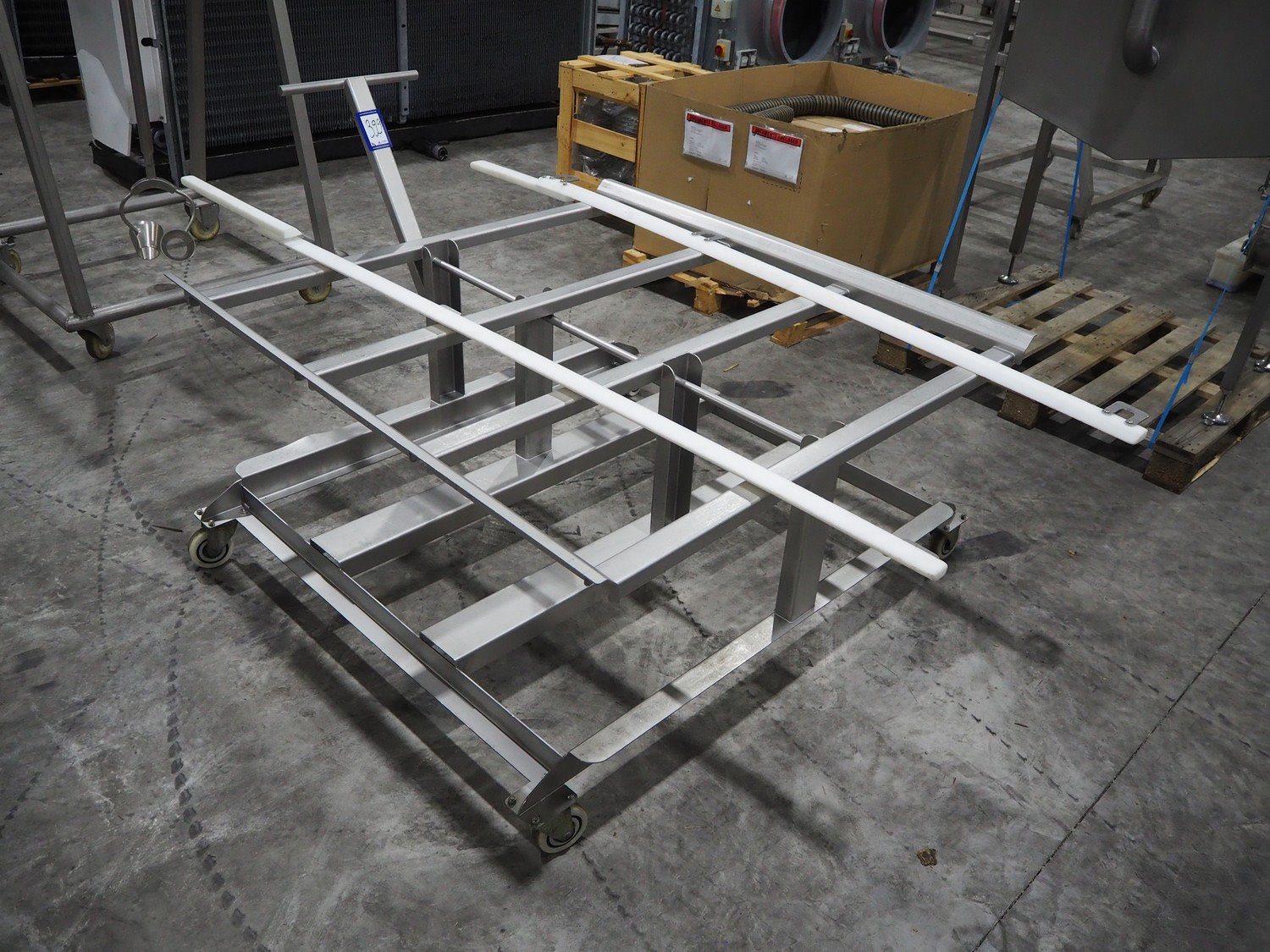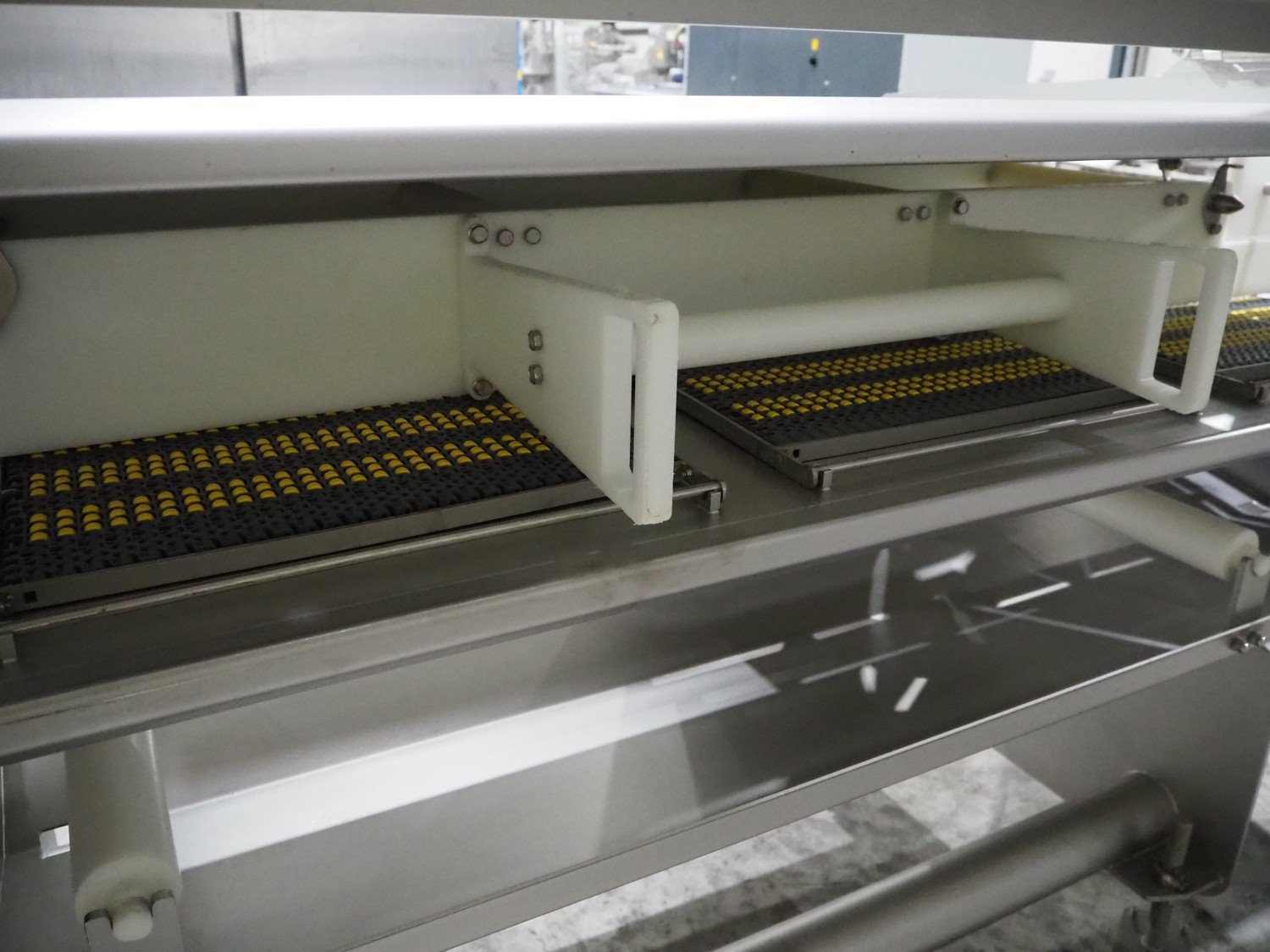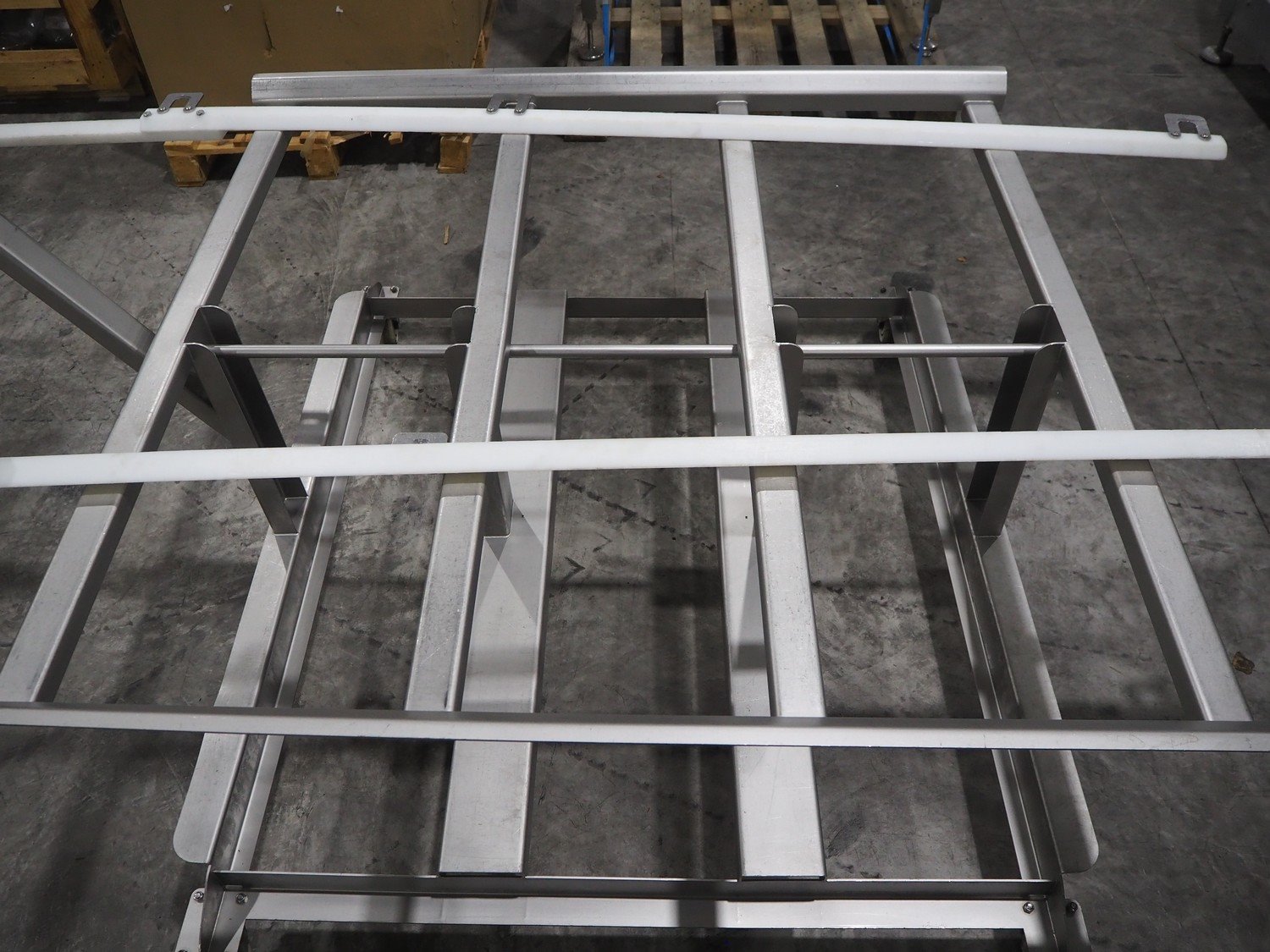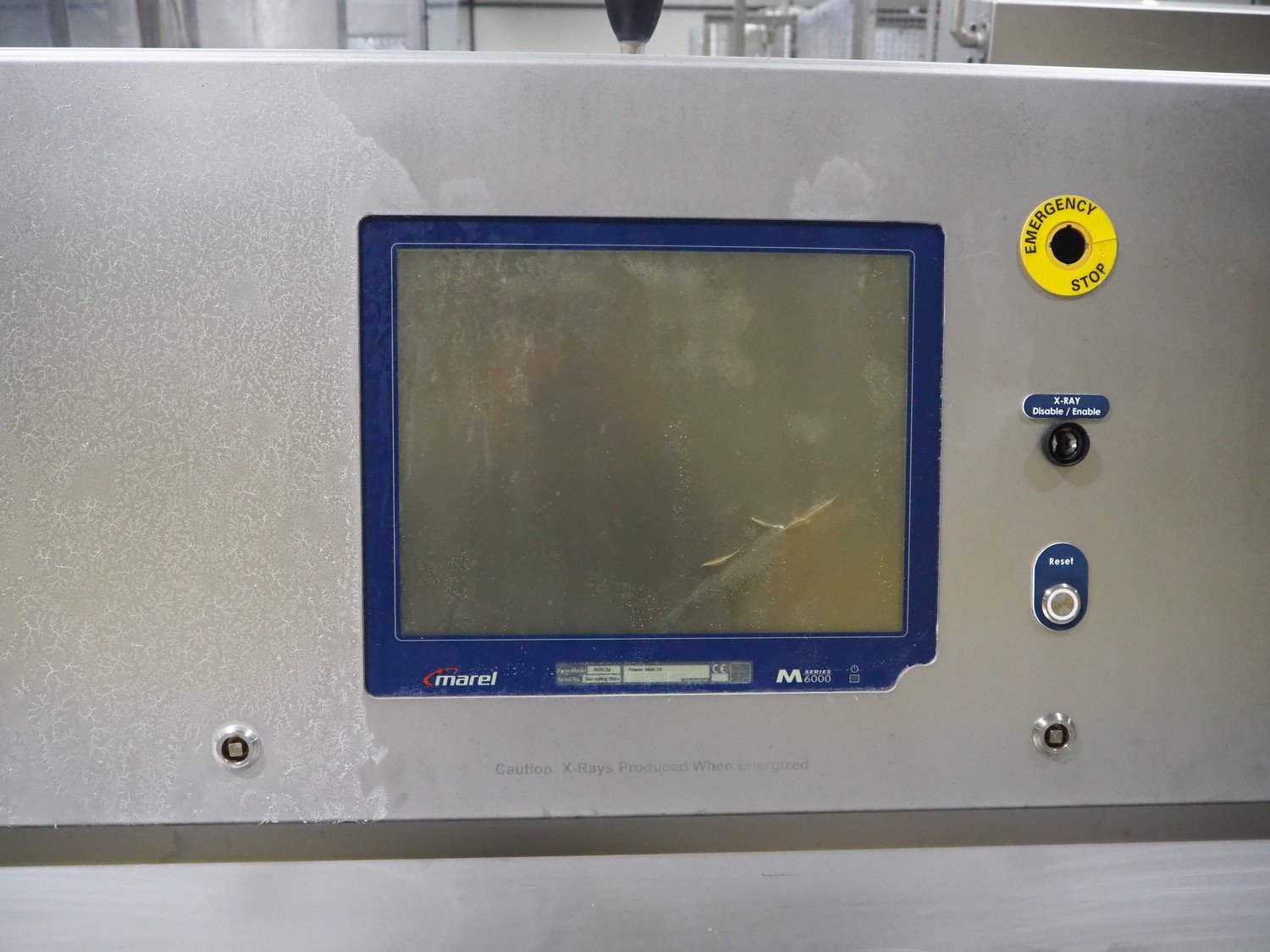 Marel trim inspection and portioning system, model: 850-9000-0011, type: 0012-102-00013, serial number: A143817, year of construction: 2016, plastic infeed belt, belt width: 590 mm, plastic belt, belt width: (2x) 380 mm, plastic mesh belt, belt width: 260 mm and 200 mm, total dimensions: 5150 mm x 1550 mm x 2160 mm. Including outfeed belt, dimensions: 1840 mm x 900 mm x 1180 mm, and 2x trolley for parts, dimensions: 2000 mm x 1150 mm x 1550 mm and 1650 mm x 1450 mm x 980 mm. Kavel locatie: Langereijt 29A, 5091 JP Middelbeers, Nederland