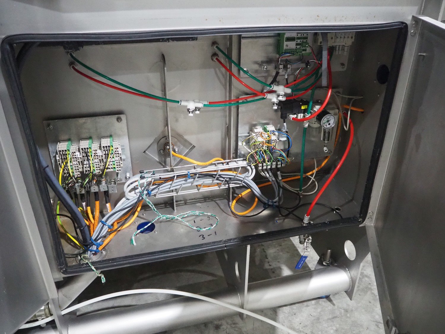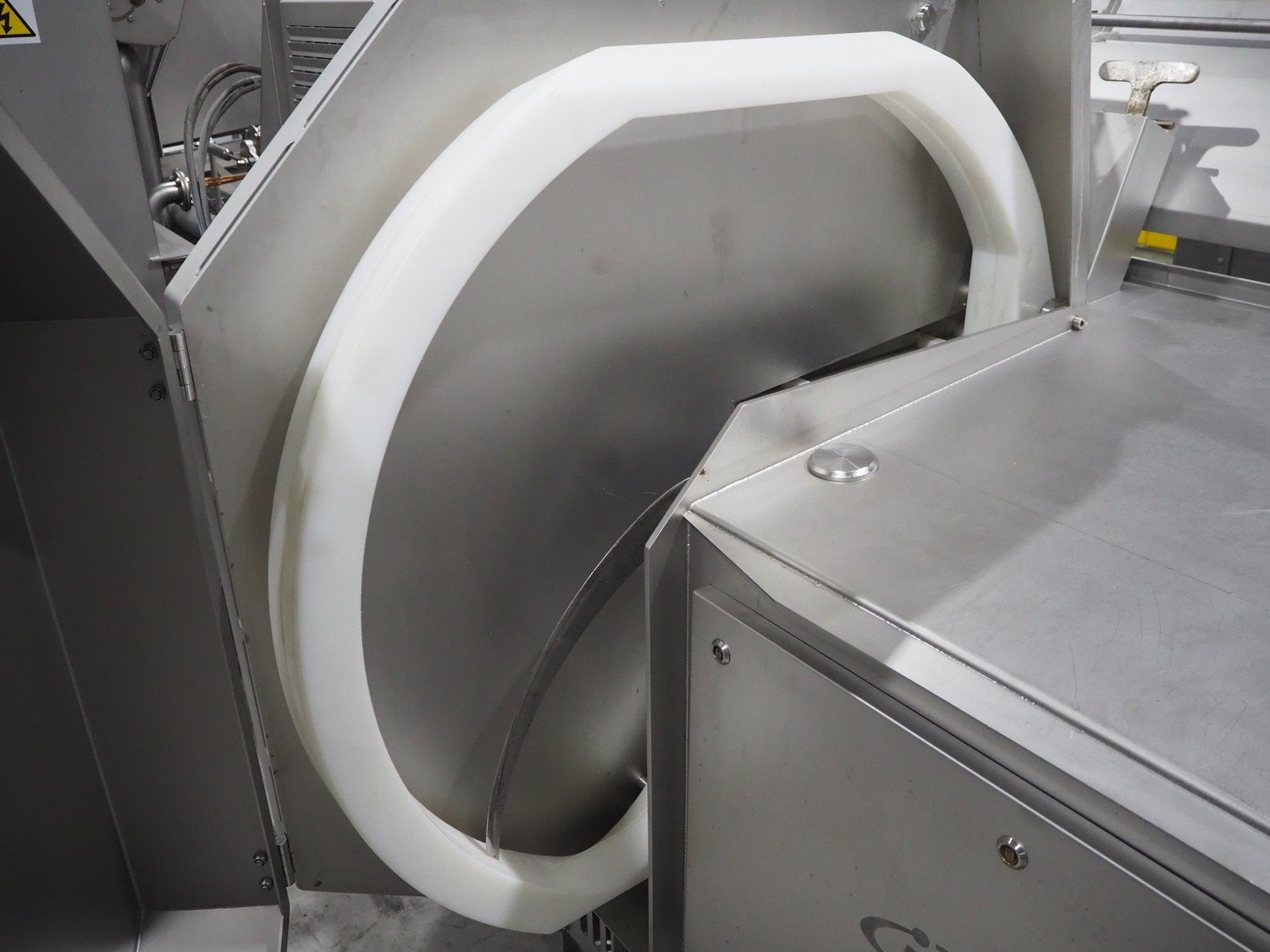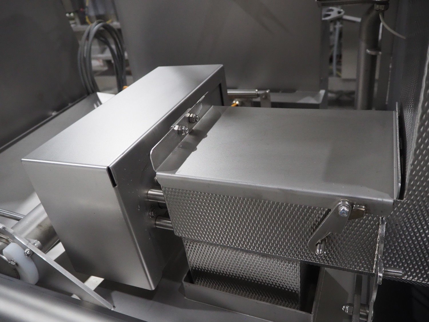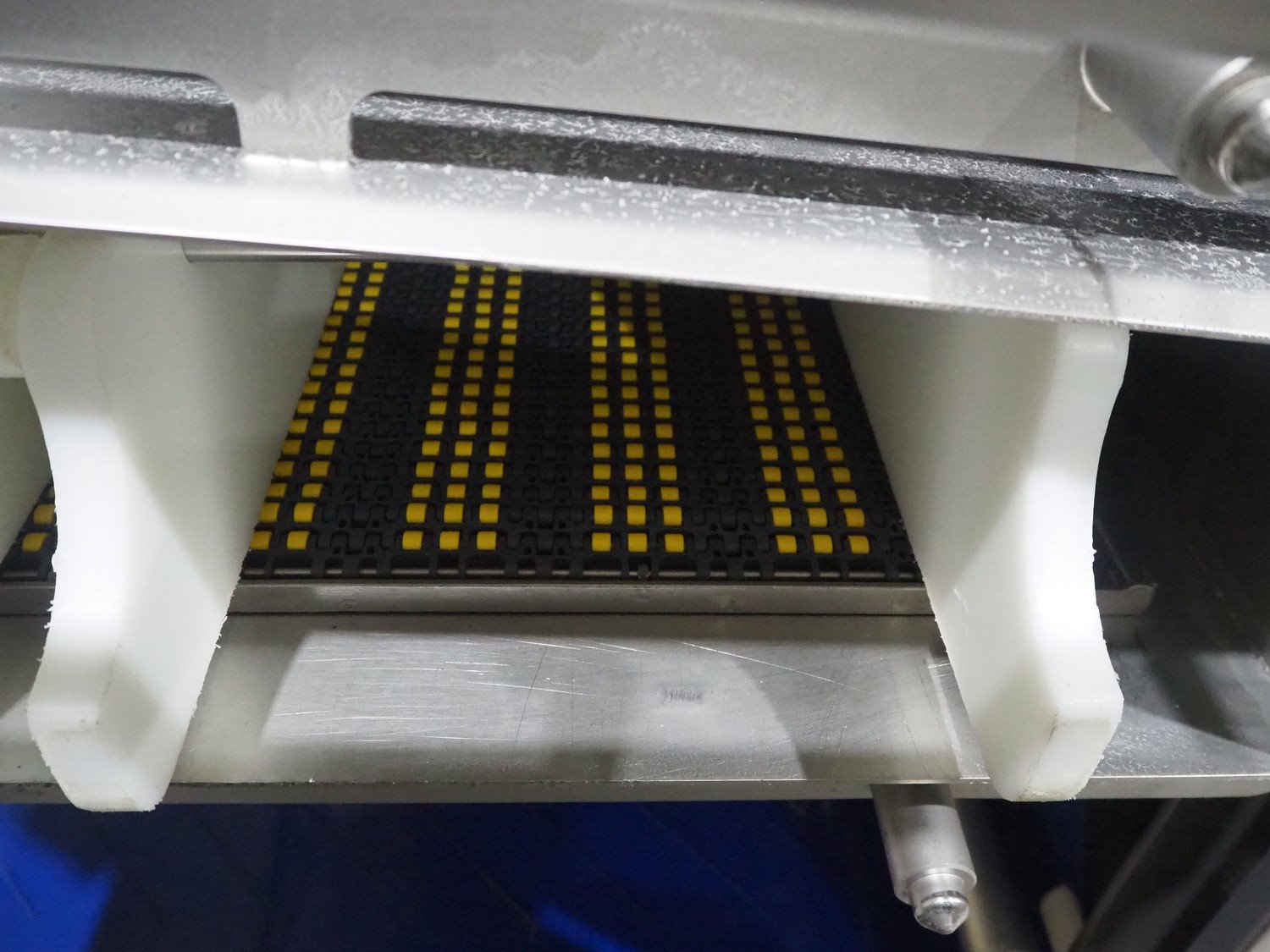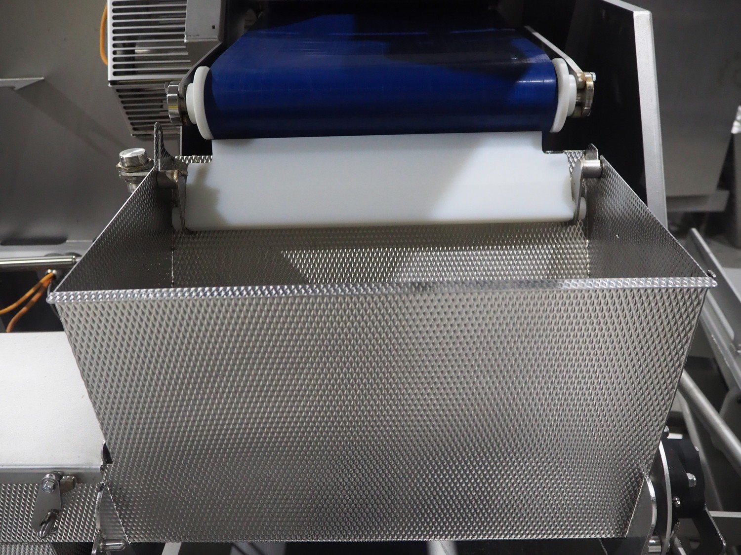 Marel trim inspection and portioning system, model: 850-9000-0011, type: 0012-102-00013, serial number: A143817, year of construction: 2016, plastic infeed belt, belt width: 590 mm, plastic belt, belt width: (2x) 380 mm, plastic mesh belt, belt width: 260 mm and 200 mm, total dimensions: 5150 mm x 1550 mm x 2160 mm. Including outfeed belt, dimensions: 1840 mm x 900 mm x 1180 mm, and 2x trolley for parts, dimensions: 2000 mm x 1150 mm x 1550 mm and 1650 mm x 1450 mm x 980 mm. Kavel locatie: Langereijt 29A, 5091 JP Middelbeers, Nederland