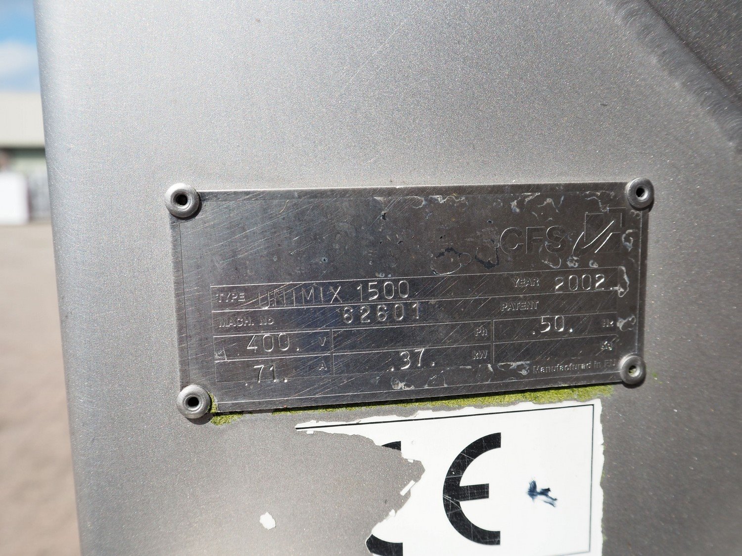 CFS double shaft vacuum paddle-mixer grinder, model: Combi grind, type: UNIMIX 1500, machine number: 62601, year of construction: 2002, 400 V, 50 Hz, 71 A, 37 kW, diameter plate: 160 mm, total dimensions: 2400 mm x 1500 mm x 2400 mm. Incomplete. Kavel locatie: Westelbeersedijk 18, 5091 SM Oost-, West- en Middelbeers, Nederland