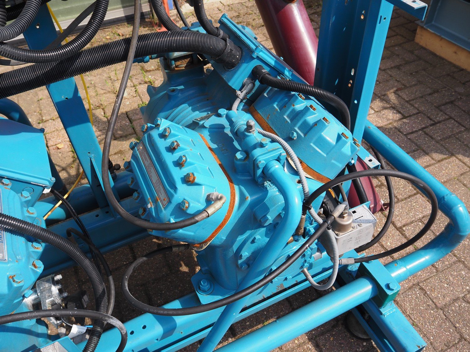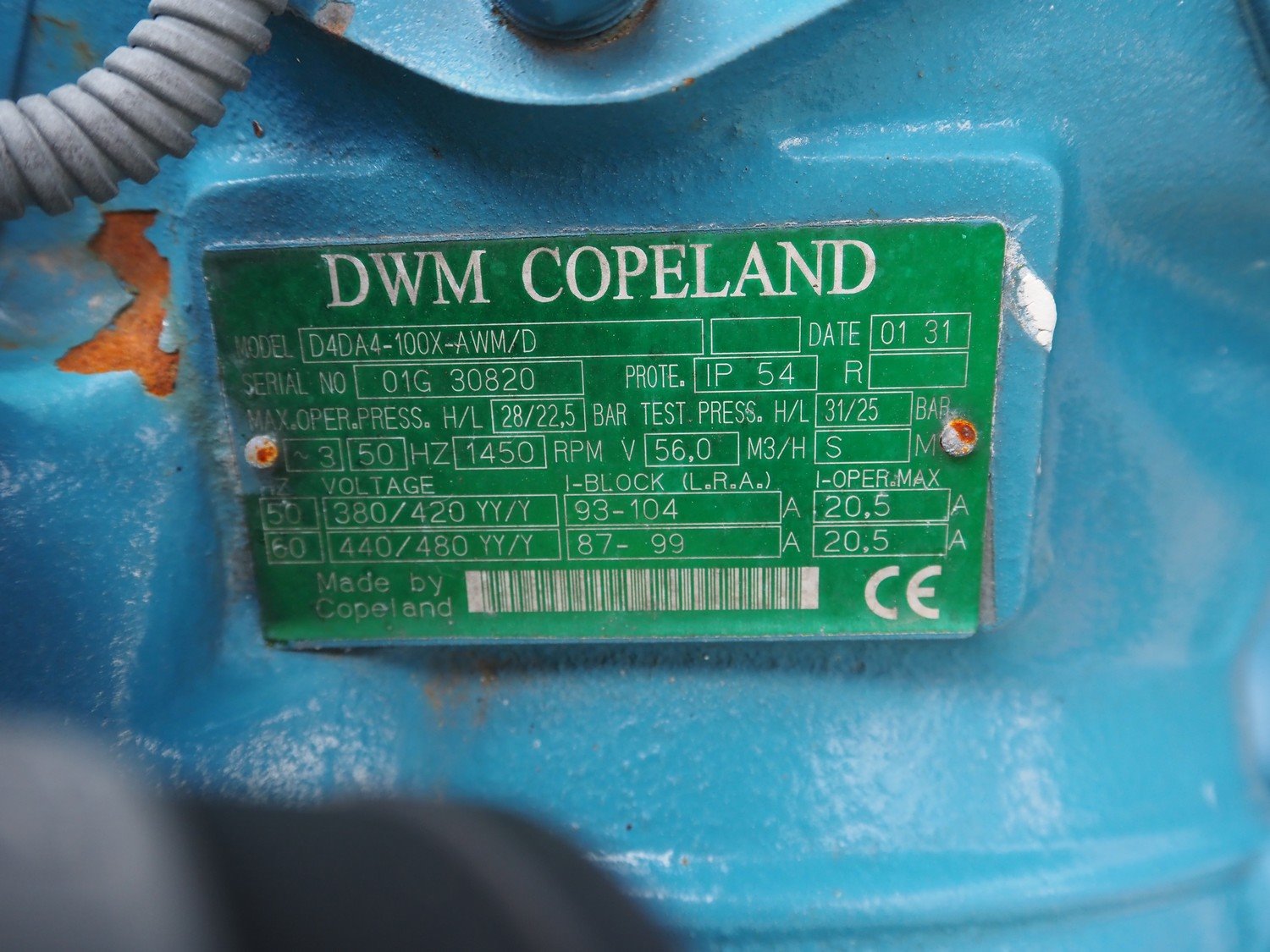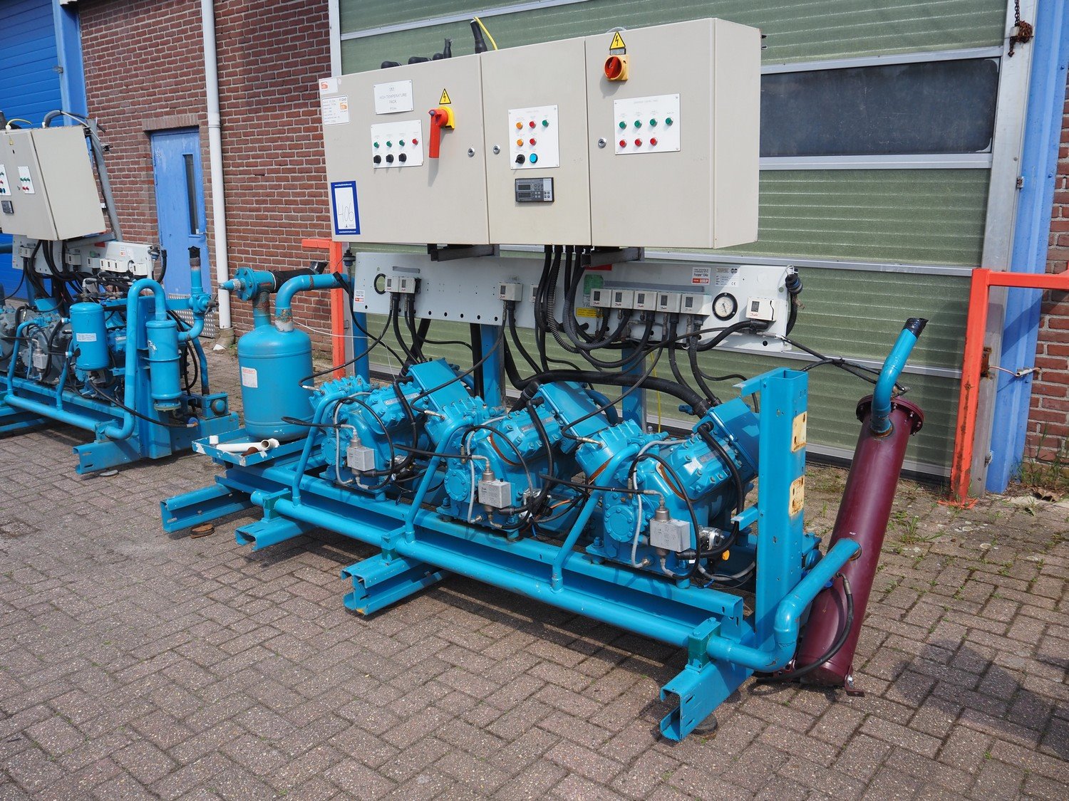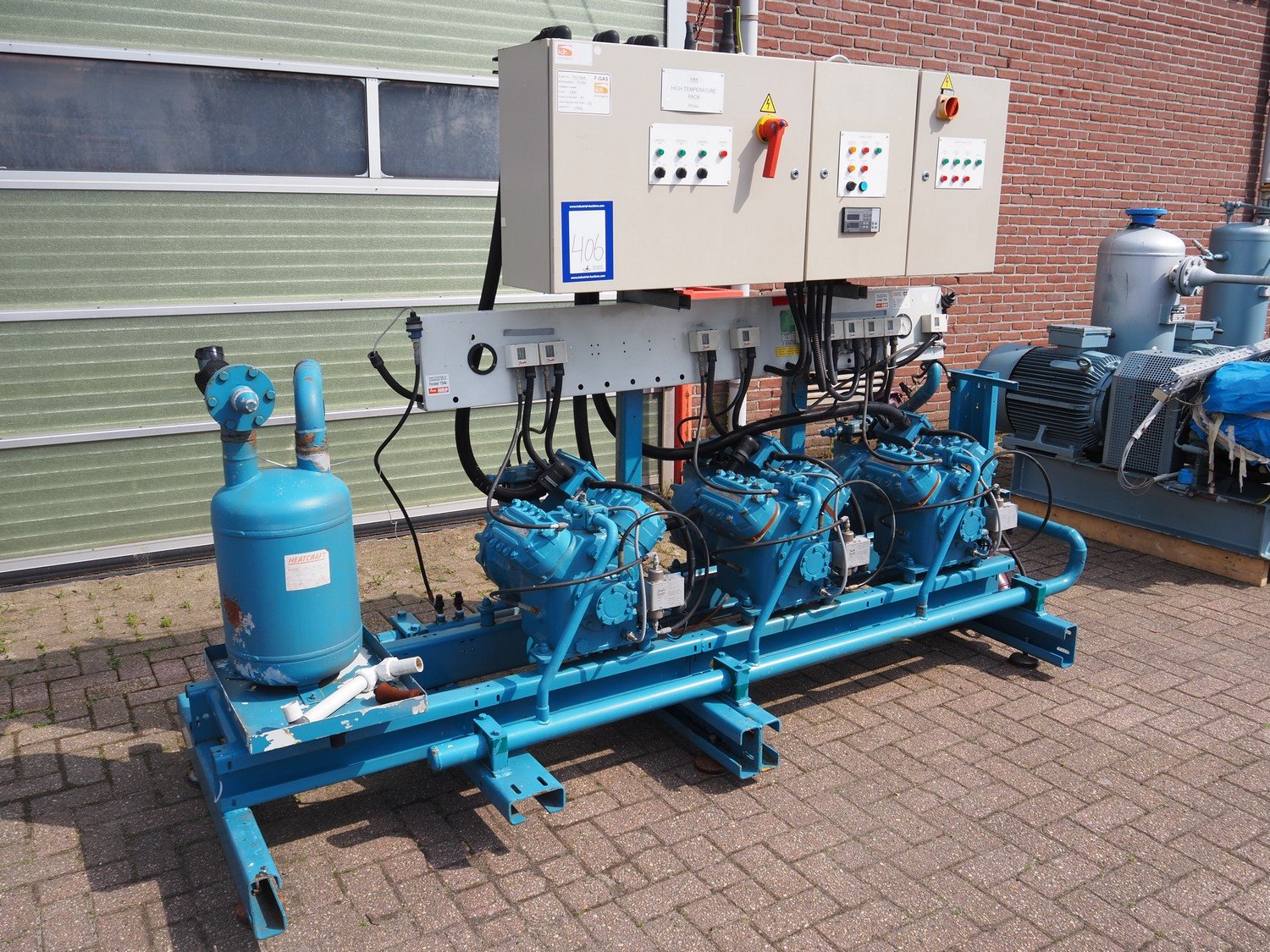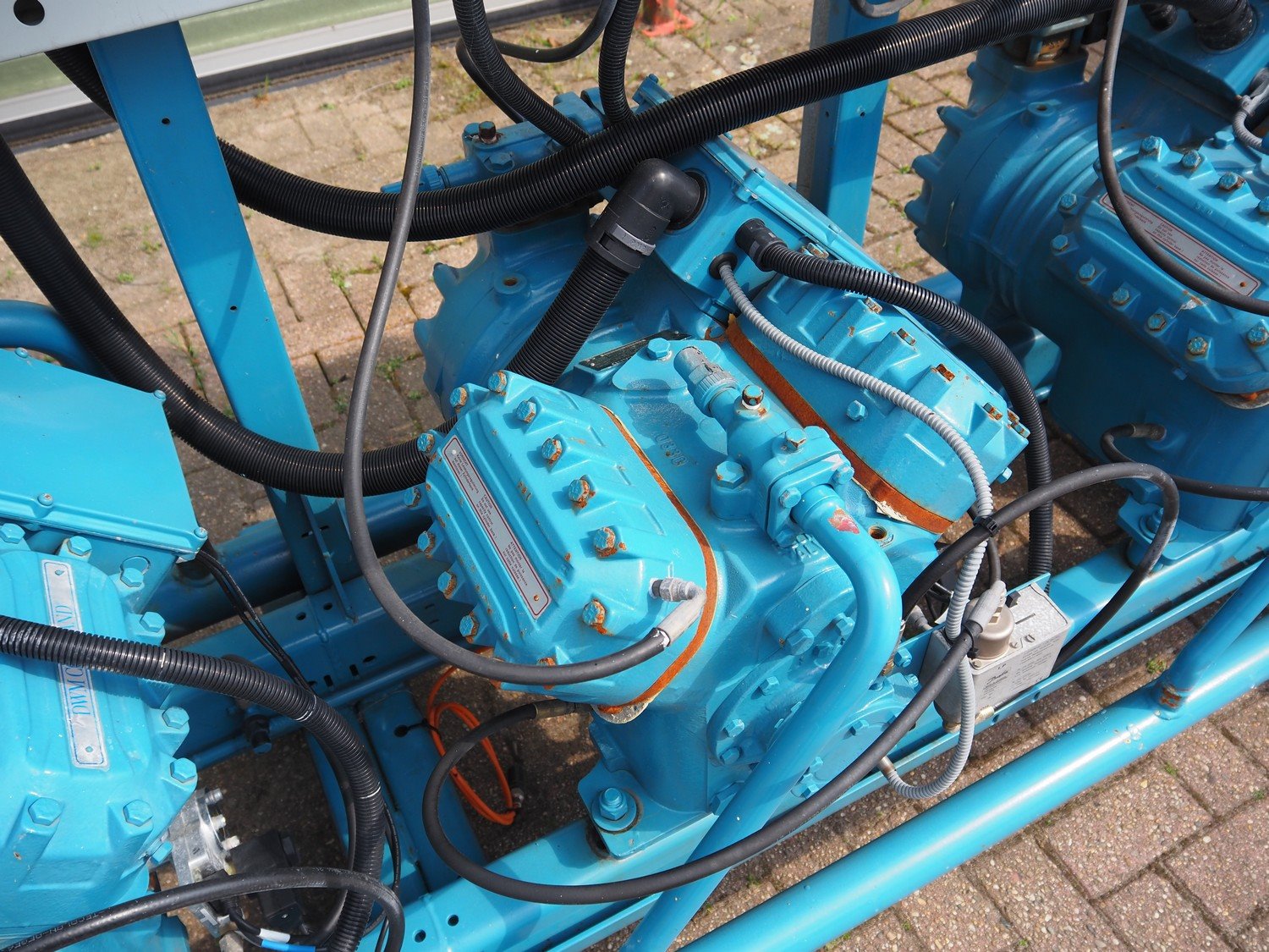 DWM Copeland cooling compressor rack consisting of: 3 DWM Copeland cooling compressors, model: (3x) D4DA4-100XAWM/D, capacity: (3x) 56 m³ per hour, 1450 rpm, dimensions: 3000 mm x 1300 mm x 1900 mm. Kavel locatie: Westelbeersedijk 18, 5091 SM Oost-, West- en Middelbeers, Nederland