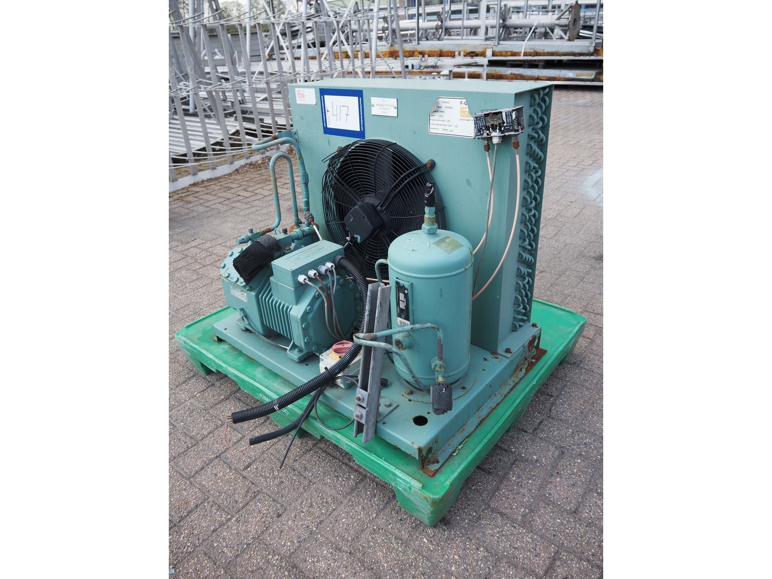 Bitzer Kühlmaschinenbau GmbH cooling/condensing unit, serial number: 66066286, capacity: 22.14/27.14 m³ per hour, dimensions: 1000 mm x 750 mm x 800 mm. Kavel locatie: Westelbeersedijk 18, 5091 SM Oost-, West- en Middelbeers, Nederland
