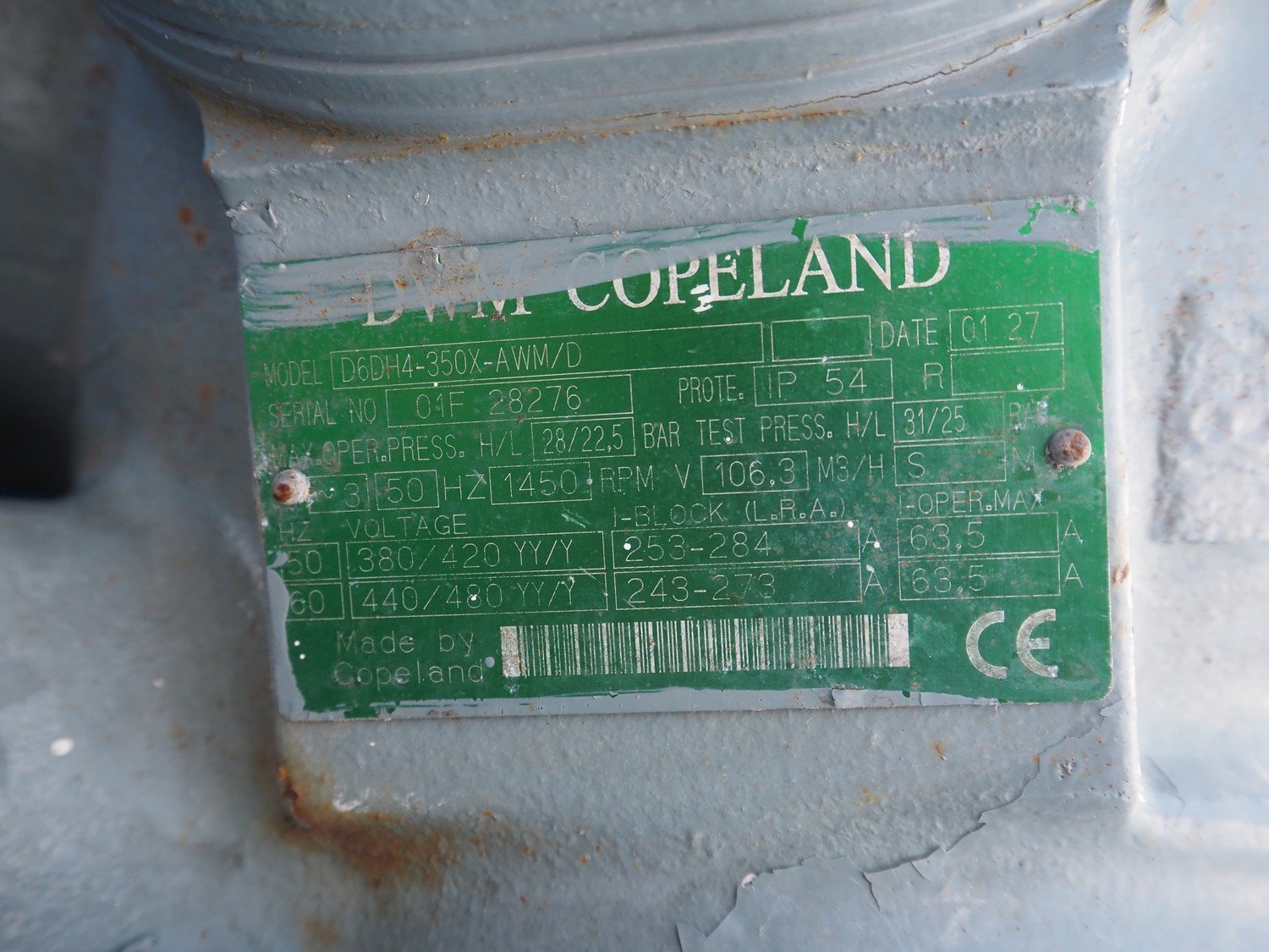 DWM Copeland cooling compressor, model: D6DH4-350-AWM/D, serial number: 01F 28276, 380/420 V, 3 Ph, 50 Hz, 1450 rpm, dimensions: 1450 mm x 500 mm x 900 mm. Kavel locatie: Westelbeersedijk 18, 5091 SM Oost-, West- en Middelbeers, Nederland