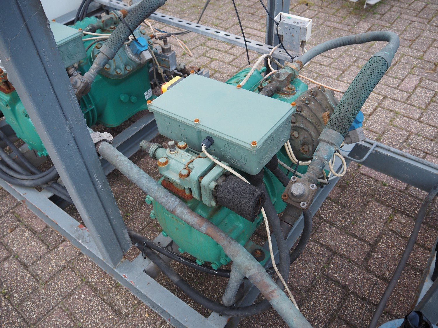 Comptec cooling compressor rack consisting of 2 comptec cooling compressors, model: (2x) 4J22, 415 V, 3 Ph, 50 Hz, dimensions: 2400 mm x 1100 mm x 1150 mm. Kavel locatie: Westelbeersedijk 18, 5091 SM Oost-, West- en Middelbeers, Nederland