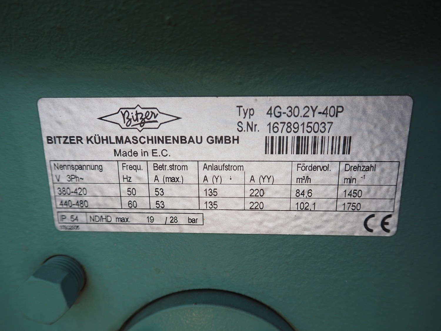 Bitzer Kühlmaschinenbau GmbH cooling/condensing unit, type: 4G-30.2Y-40P, serial number: 1678915037, 440/480 V, 60 Hz, capacity: 84.6/102.1 m³ per hour, dimensions: 1600 mm x 1100 mm x 1500 mm. Kavel locatie: Westelbeersedijk 18, 5091 SM Oost-, West- en Middelbeers, Nederland