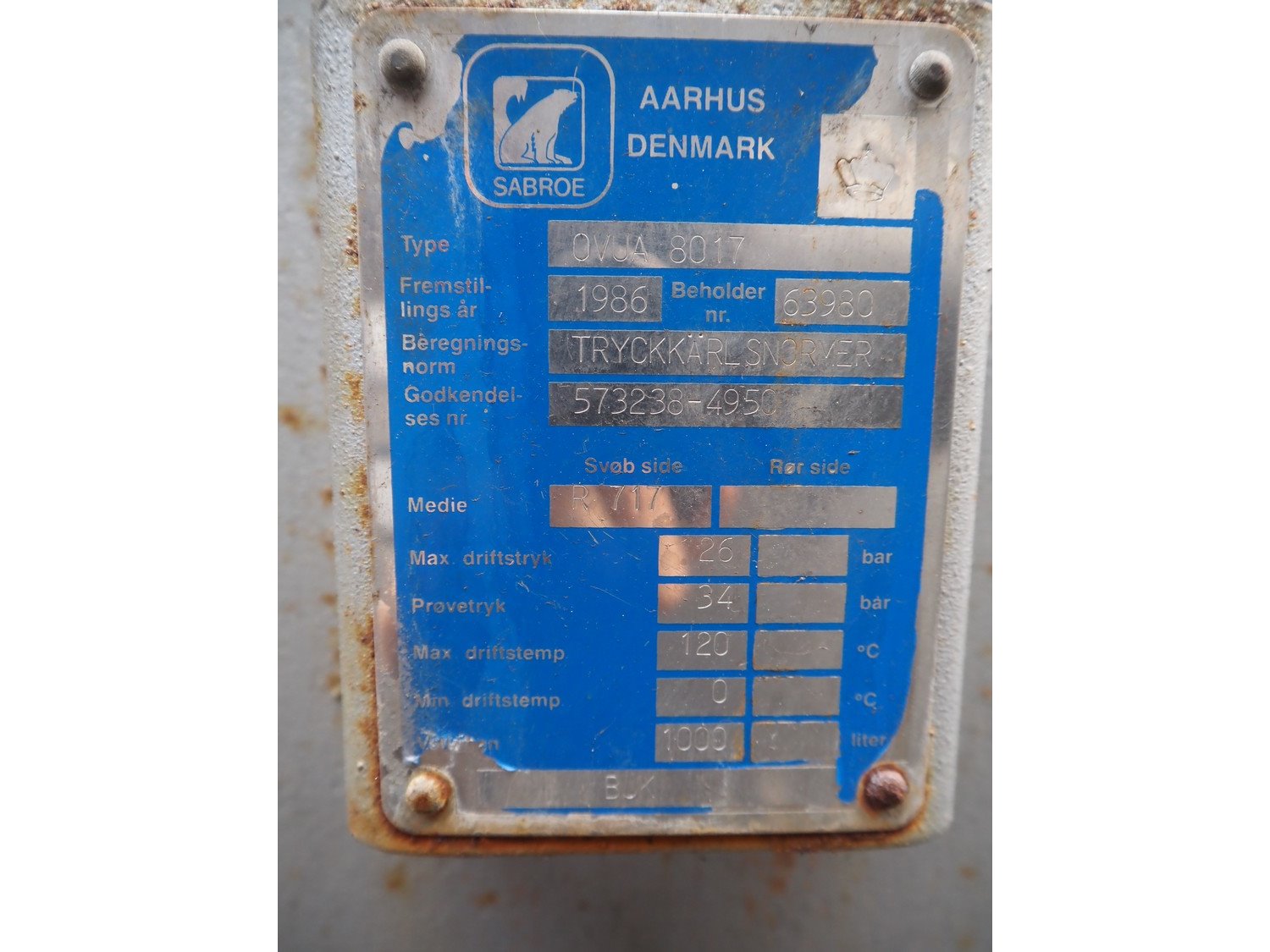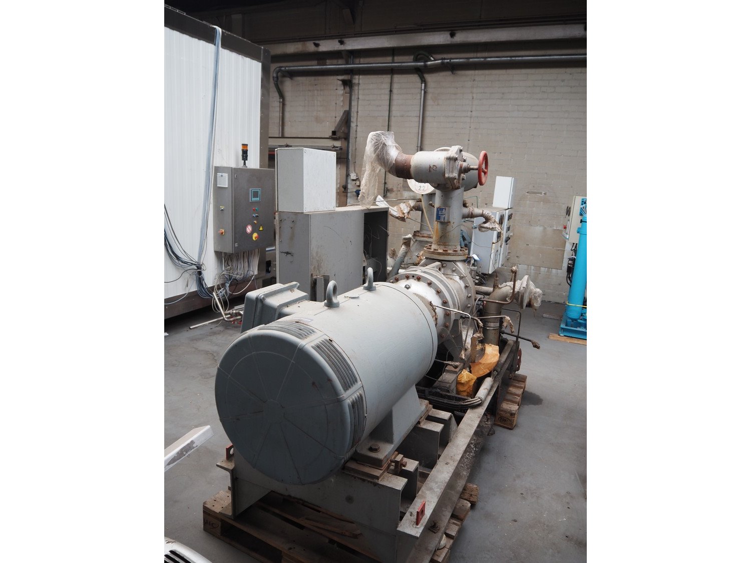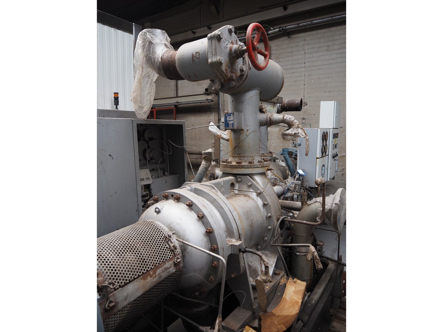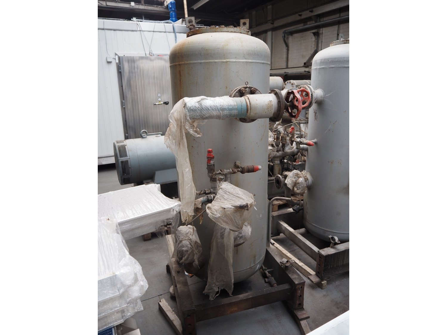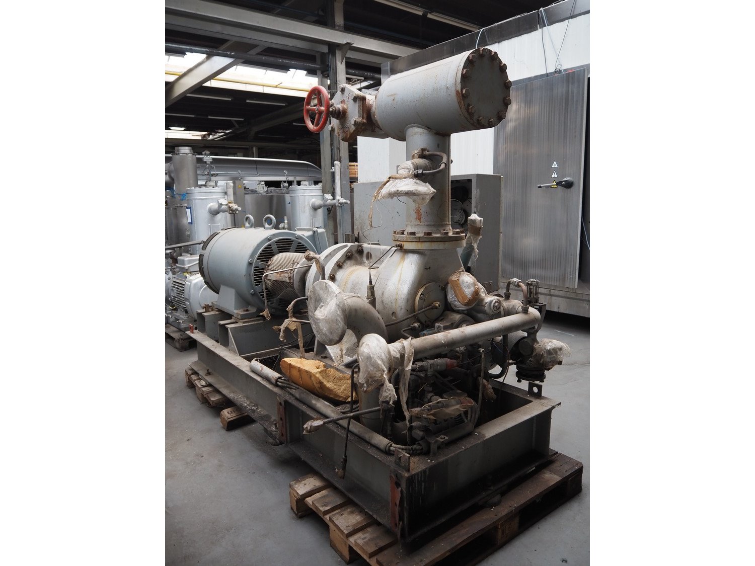 Sabroe screw cooling compressor, type: VMY 336, serial number: 268811-873463, year of construction: 1986, refrigerant: R717, minimum temperature: -40 °C, maximum temperature: 20 °C, with Sabroe refrigerant tank, type: OVUA 8017, serial number: 573238-4950, year of construction: 1986, volume: 1000 liter, dimensions compressor: 3000 mm x 1450 mm x 2100 mm, dimensions tank: 1150 mm x 1100 mm x 2500 mm. Kavel locatie: Westelbeersedijk 18, 5091 SM Oost-, West- en Middelbeers, Nederland