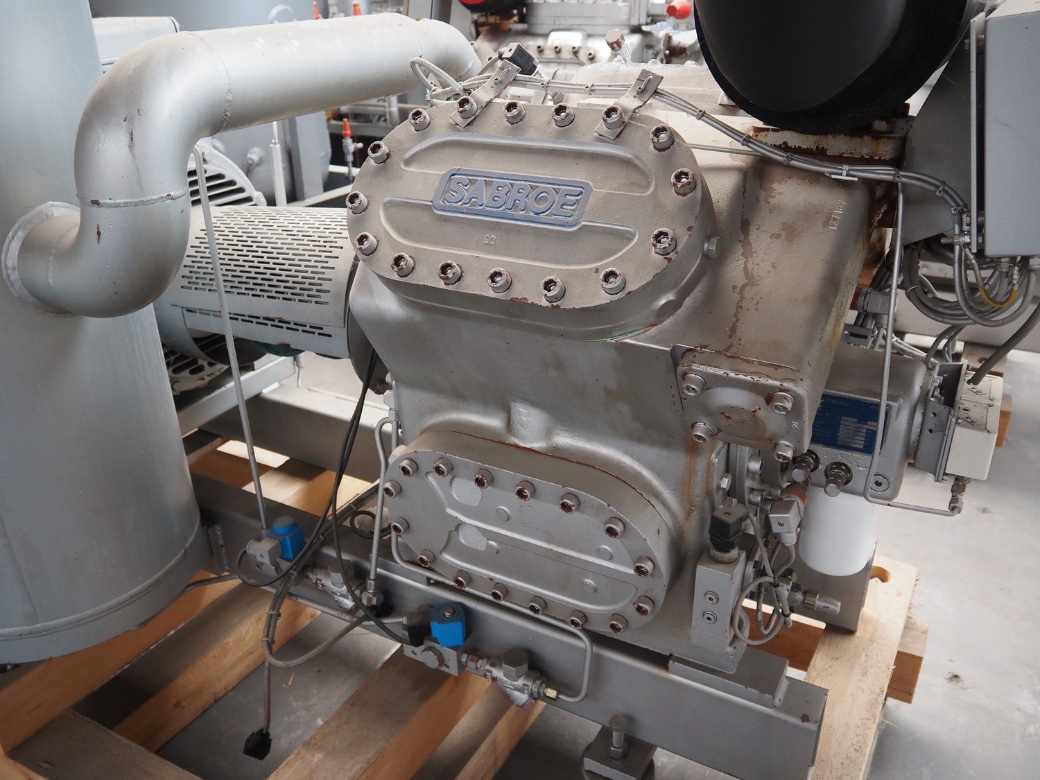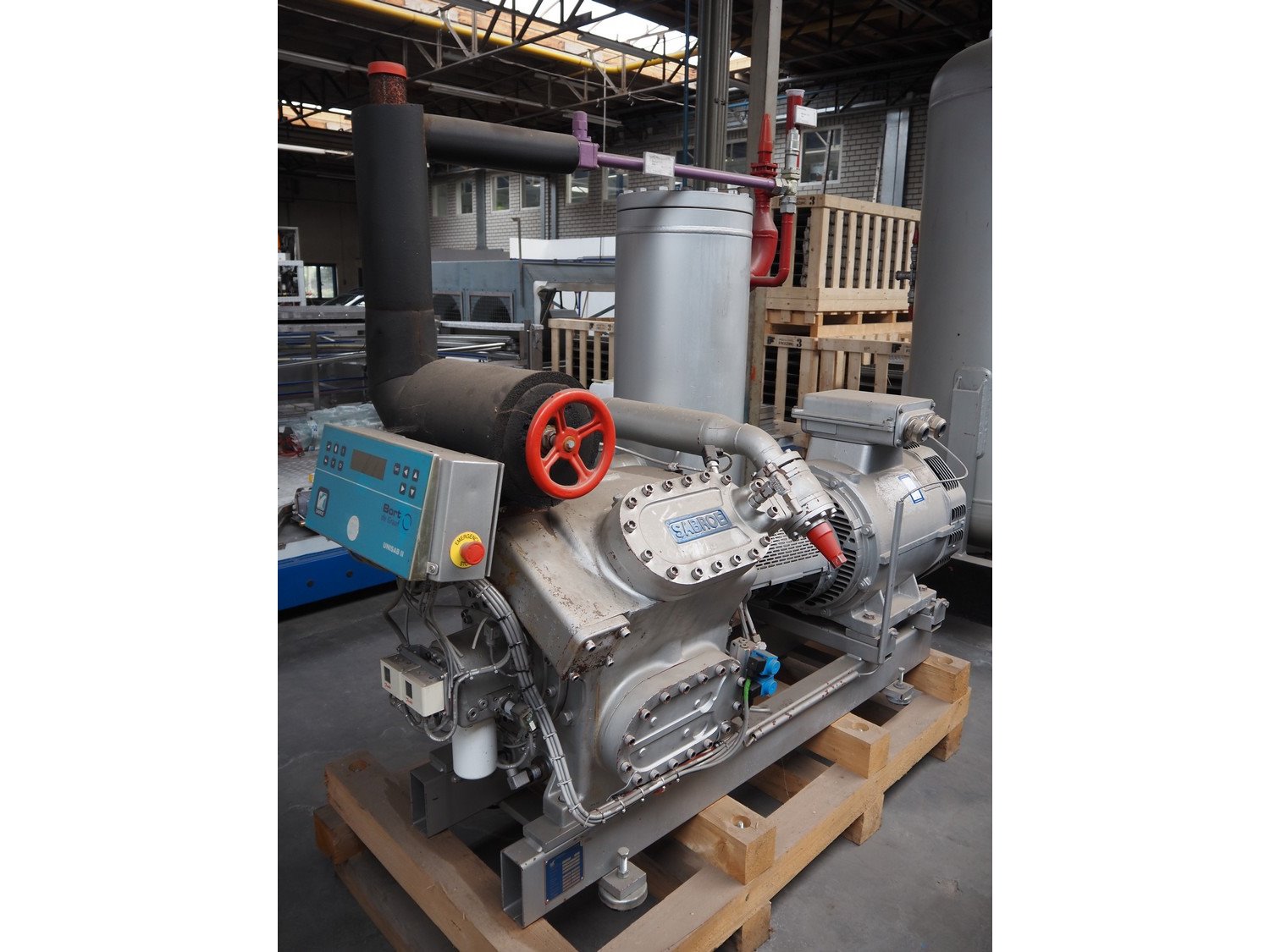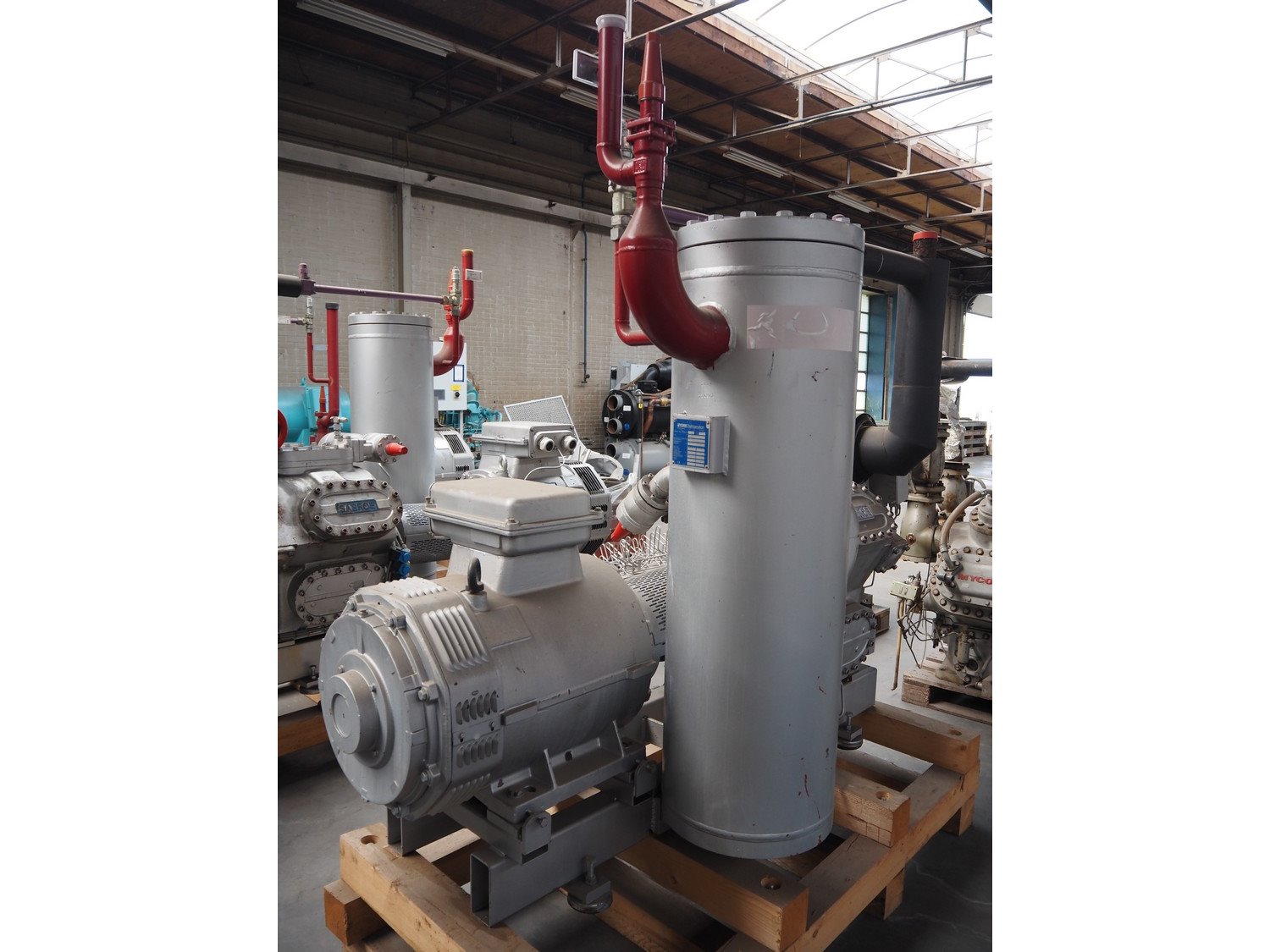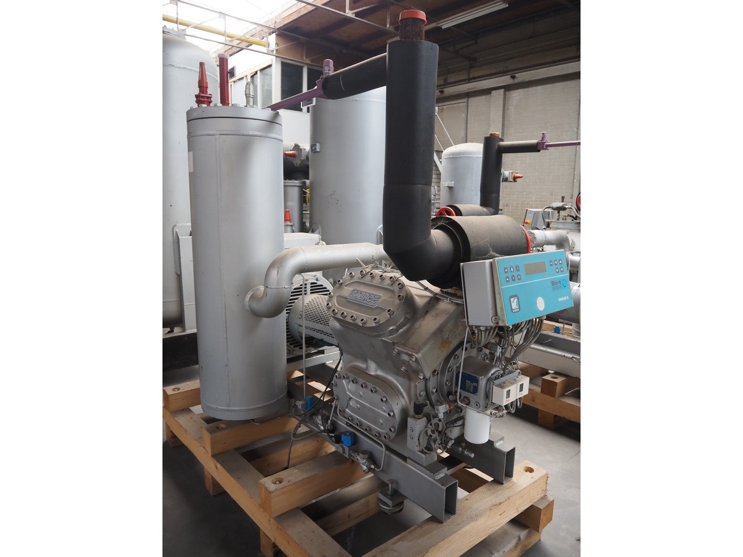 Sabroe/Schorch High-pressure reciprocating cooling compressor, type: HPC 1045, identification number: 232266/796640, year of construction: 2004, Schorch motor, type: KN7250M-BBO 1B-401 1EC 250 M IMB3, York refrigeration vessel, type: OVUR 4113D, number: 724 3TI, year of construction: 2004, dimensions: 2200 mm x 1090 mm x 2290 mm. Kavel locatie: Westelbeersedijk 18, 5091 SM Oost-, West- en Middelbeers, Nederland