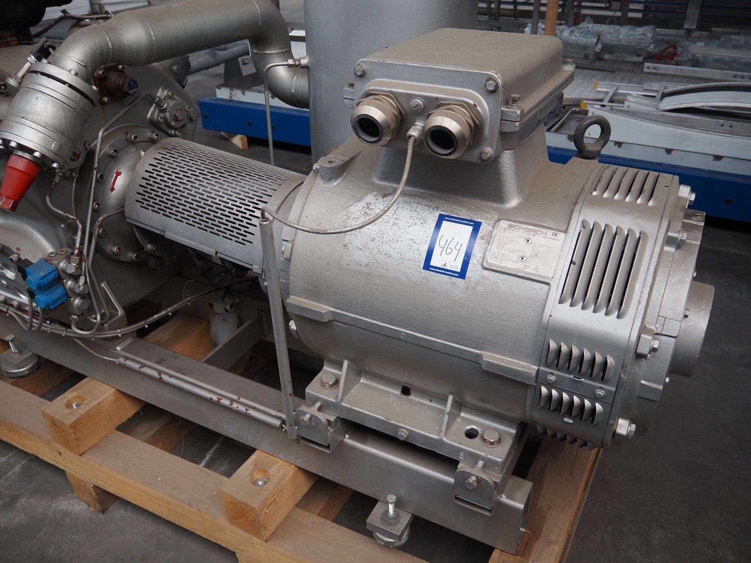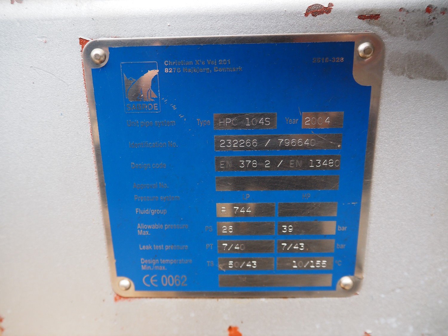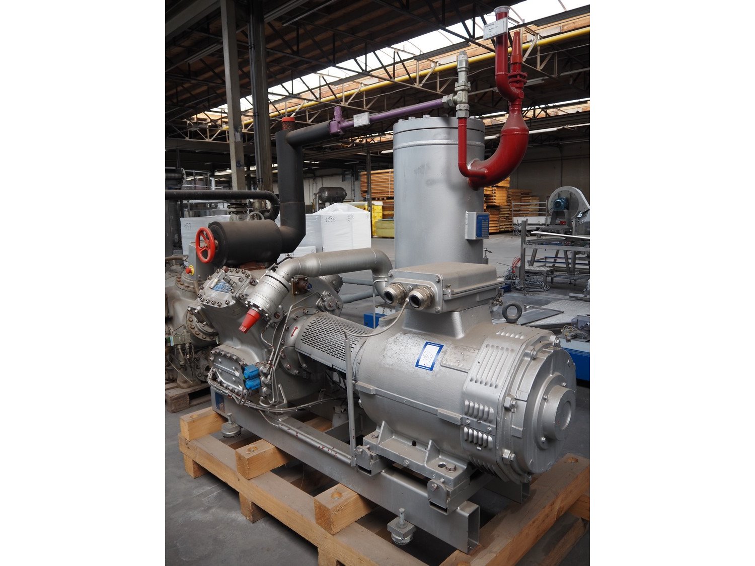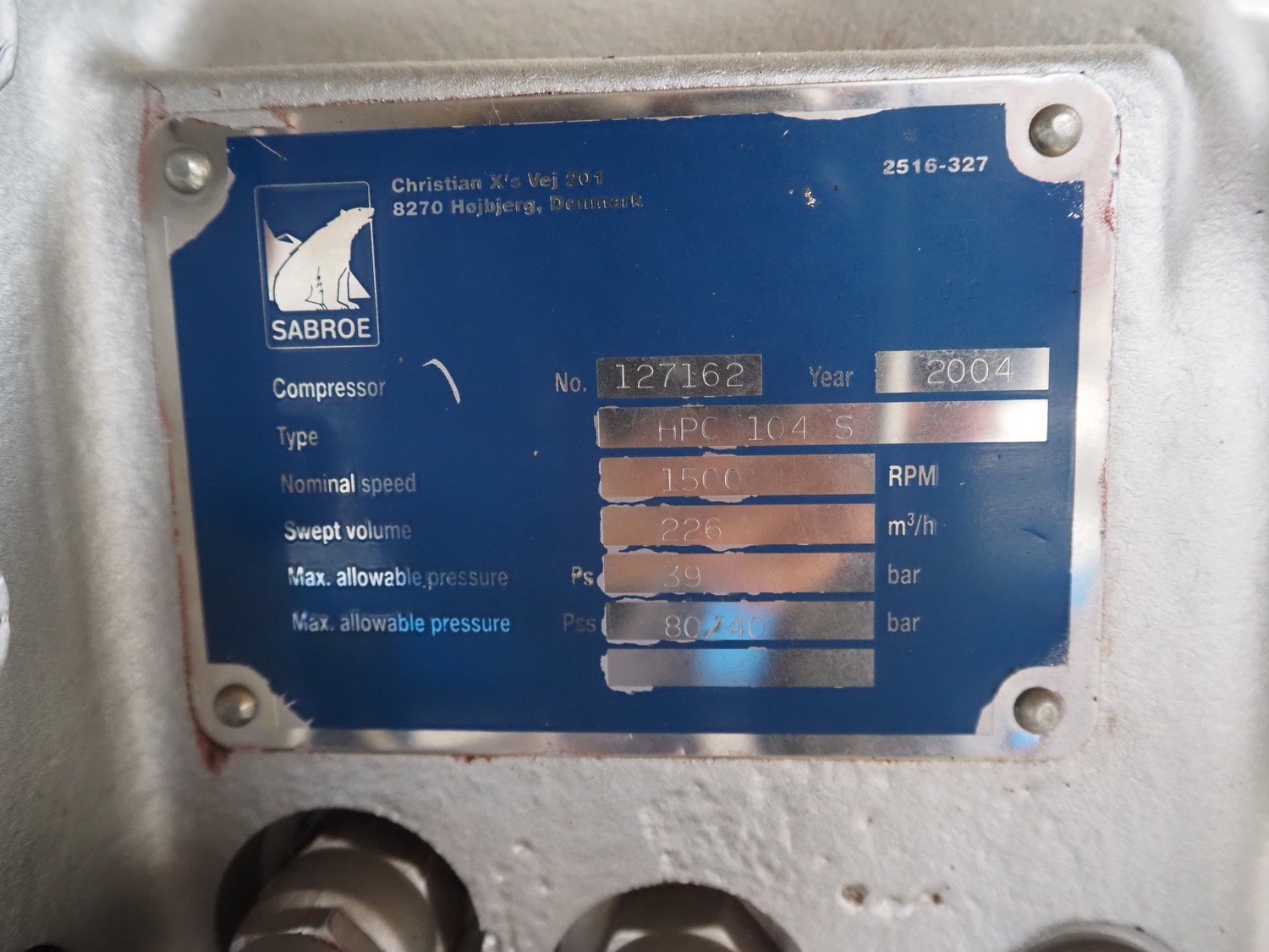 Sabroe/Schorch High-pressure reciprocating cooling compressor, type: HPC 1045, identification number: 232266/796640, year of construction: 2004, Schorch motor, type: KN7250M-BBO 1B-401 1EC 250 M IMB3, York refrigeration vessel, type: OVUR 4113D, number: 724 3TI, year of construction: 2004, dimensions: 2200 mm x 1090 mm x 2290 mm. Kavel locatie: Westelbeersedijk 18, 5091 SM Oost-, West- en Middelbeers, Nederland