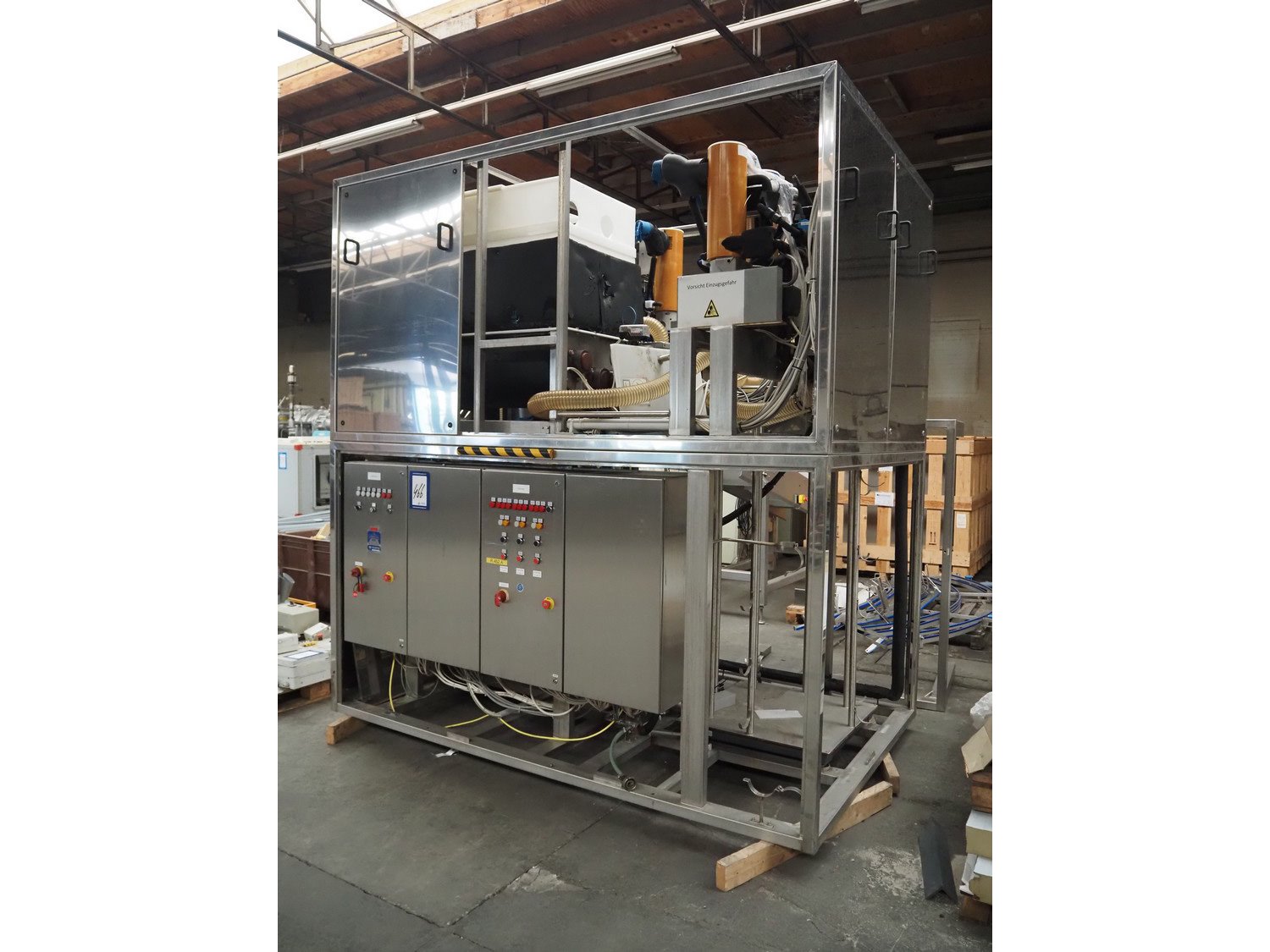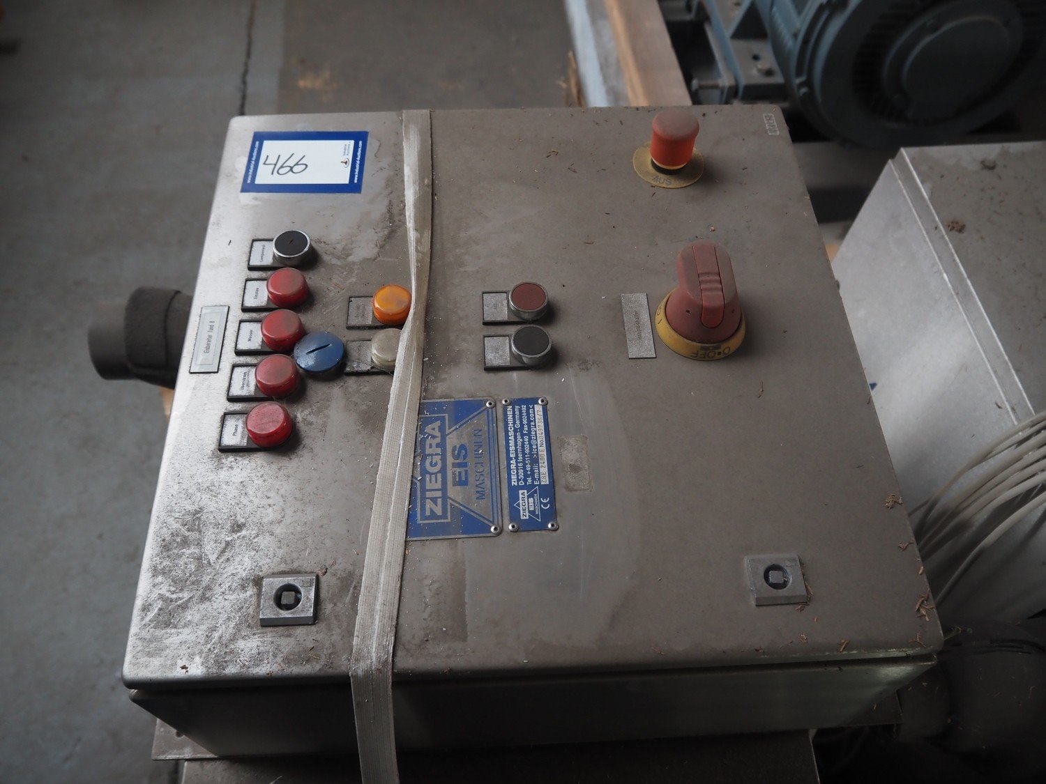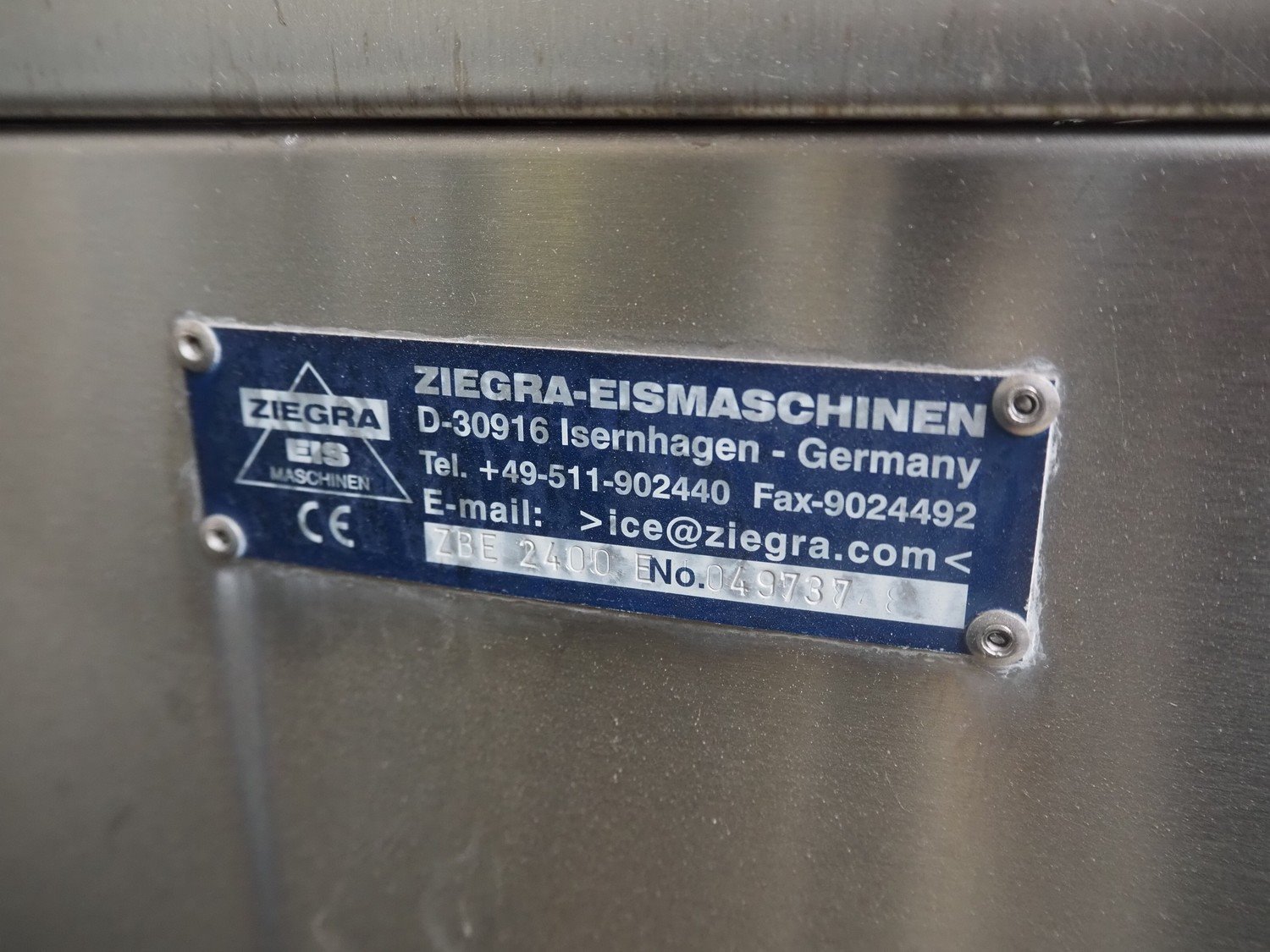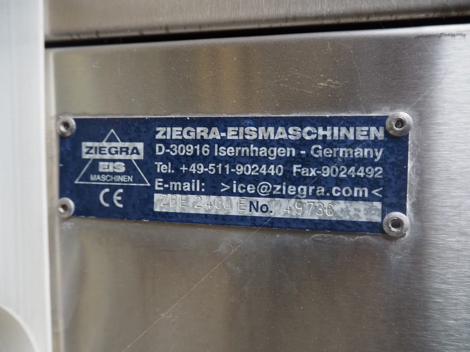 Ziegra Eismaschinen ice machine, type: ZBE 7200 - 3 ISD, number: 028134, 400 V, 3 Ph, 50 Hz, 2 x 35 A, maximum: 25 bar, capacity: 7200 kg per 24 hours, refrigerant: R452A, dimensions ice machine: 2900 mm x 1800 mm x 3000 mm. Including s/s frame, dimensions: 2900 mm x 1800 mm x 800 mm. Kavel locatie: Westelbeersedijk 18, 5091 SM Oost-, West- en Middelbeers, Nederland