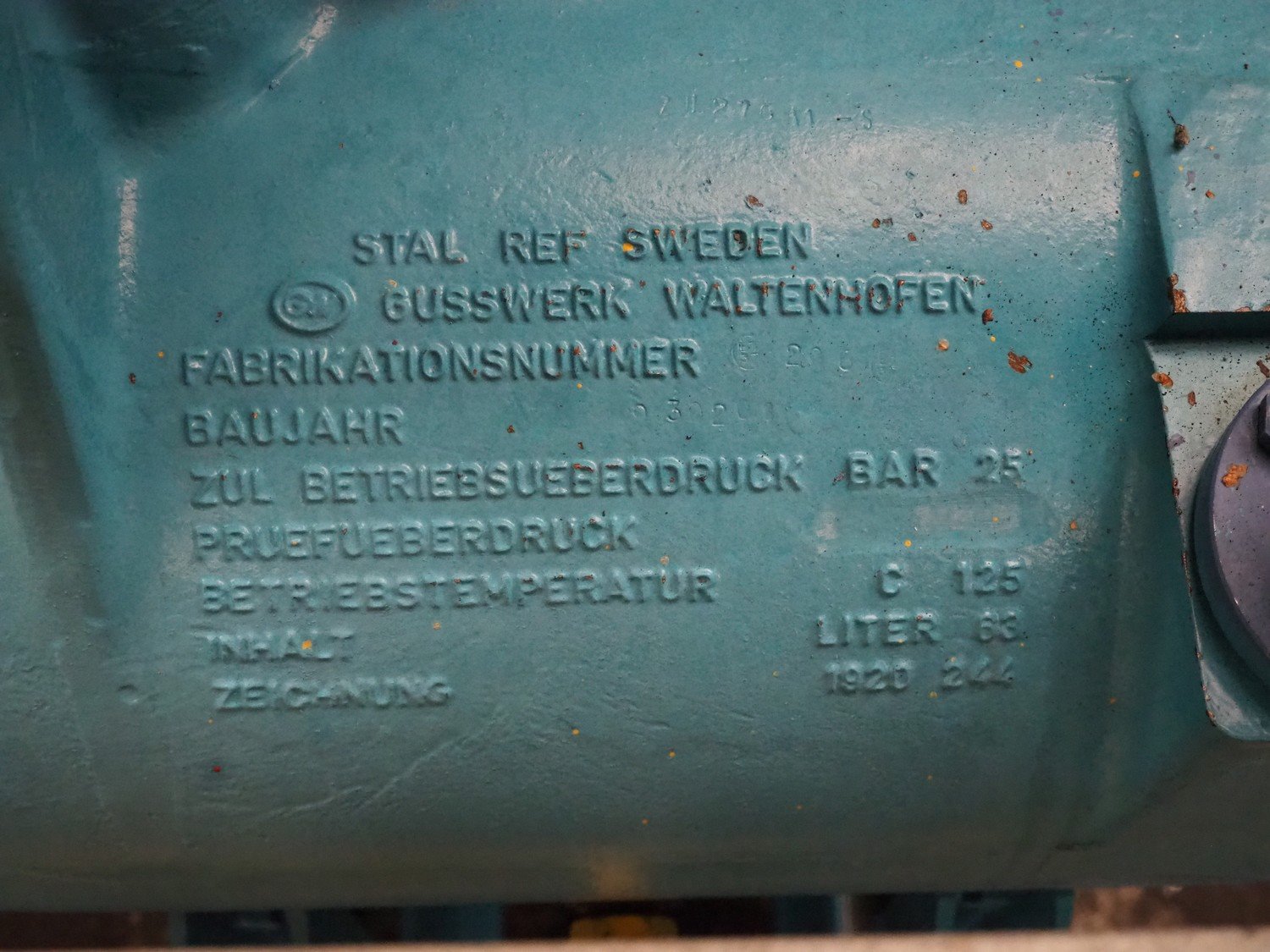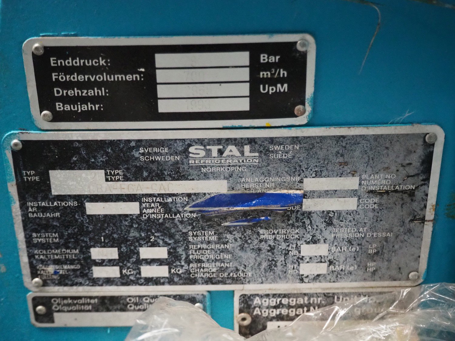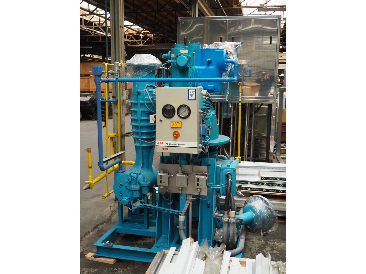 Stal Refrigeration low pressure compressor used as swing machine, type: SVAB 26, year of construction: 1993, capacity: 121 kW at -42°C/-10°C, 437 kW at -10°C/35°C, modified with electronic part load indicator, NH3 oil cooler, dimensions: 1600 mm x 1400 mm x 2200 mm. Overhauled in 2014. Kavel locatie: Westelbeersedijk 18, 5091 SM Oost-, West- en Middelbeers, Nederland