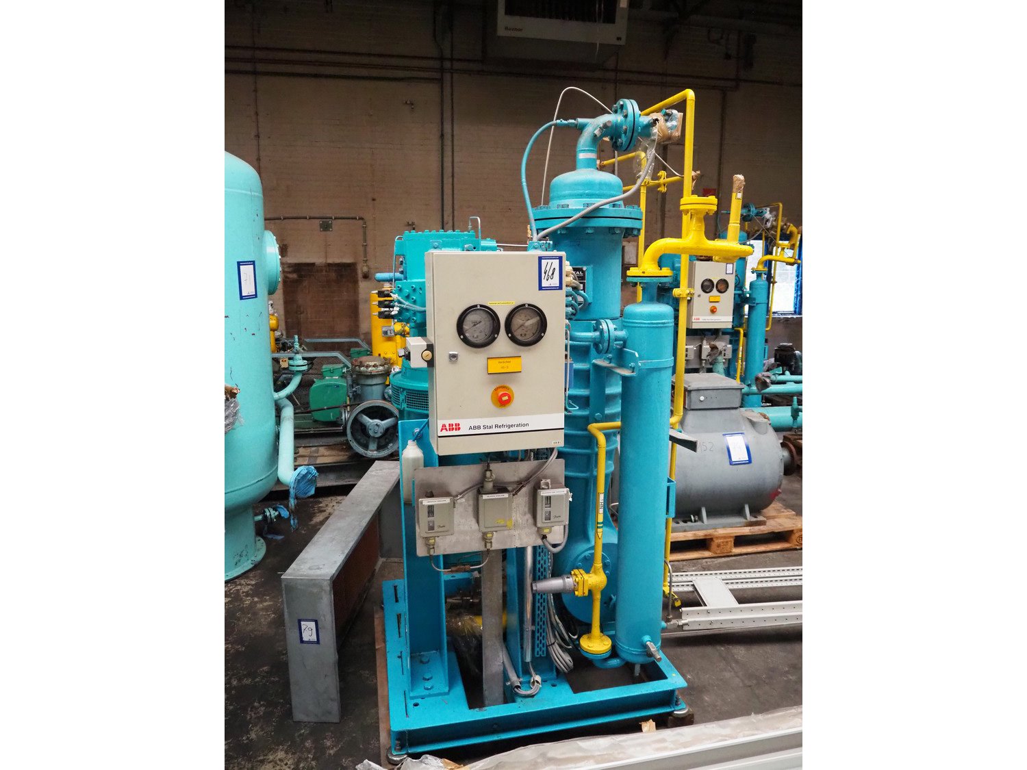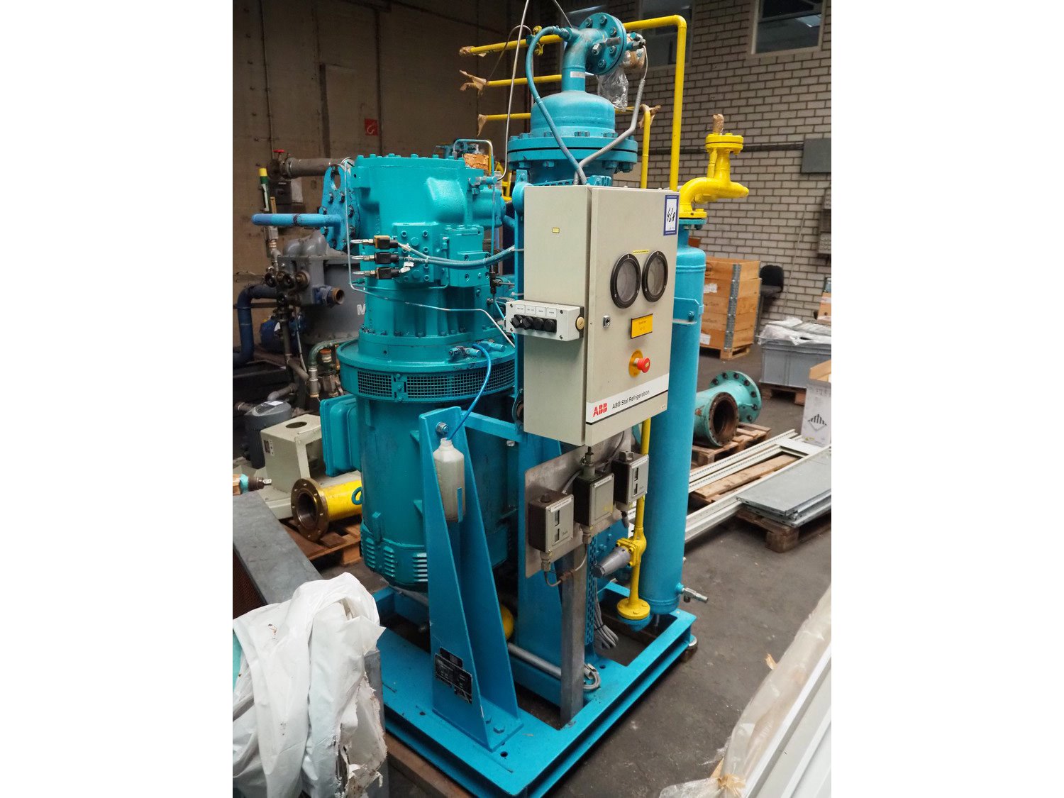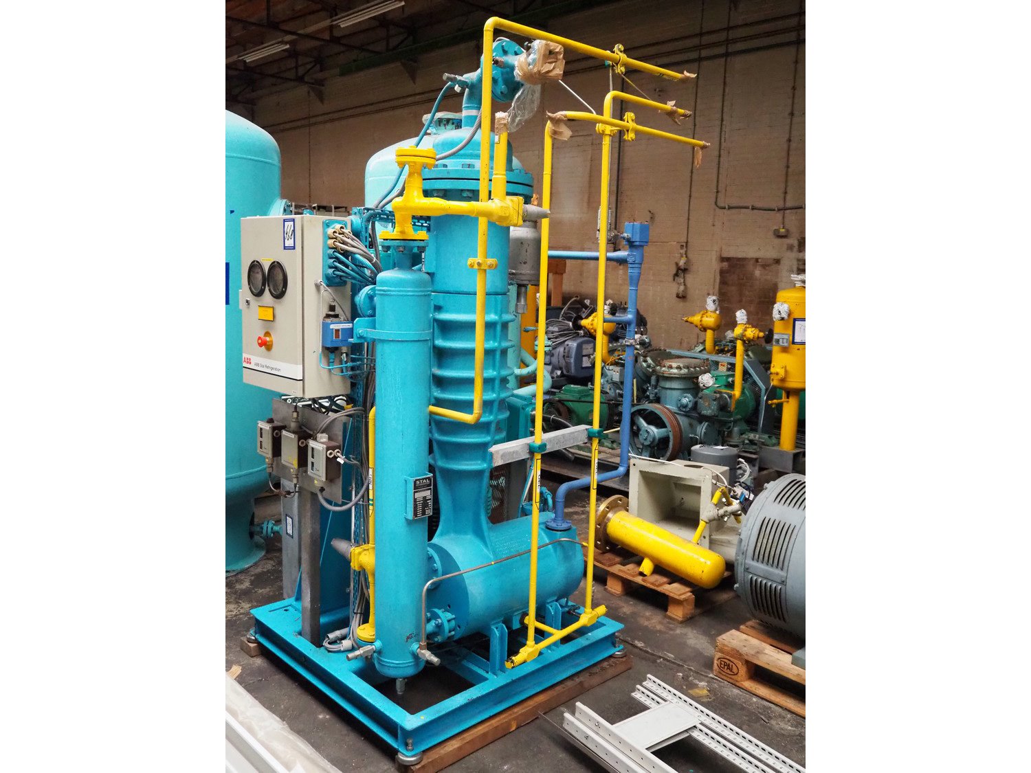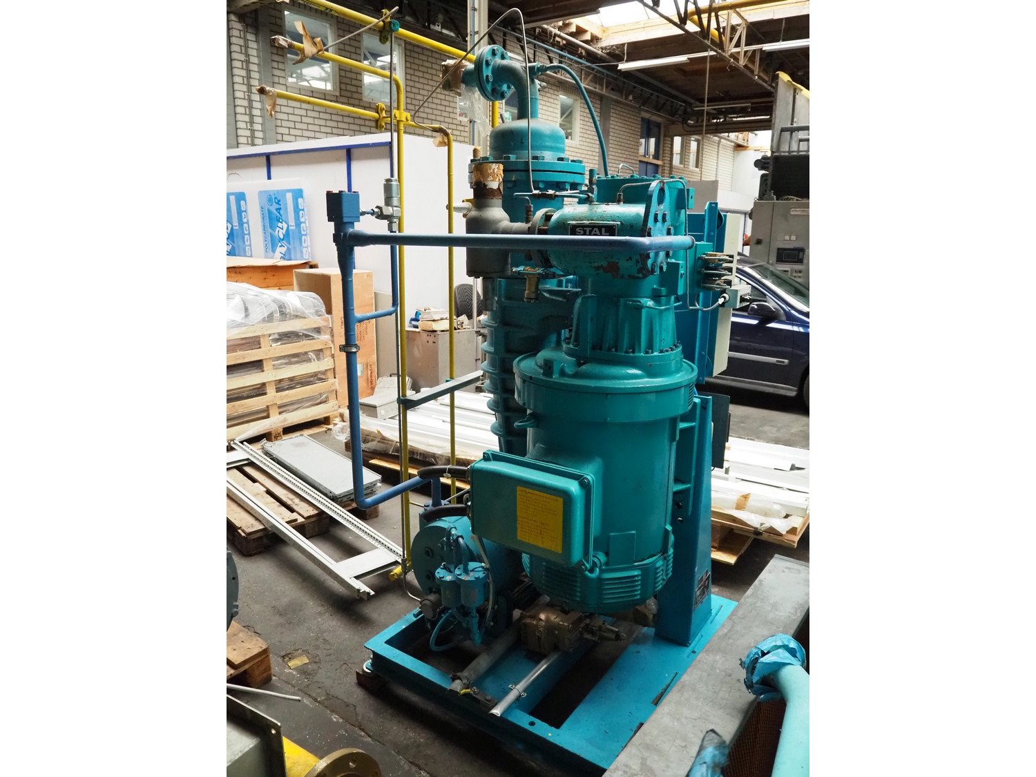 Stal Refrigeration glycol cooling compressor, type: SVA19C, serial number: U-P 330335, year of construction: 1998, weight: 1675 kg, NH3 oil cooler - pre-lubrication oil pump, temperature range: -10°C/35°C, capacity: 268 kW, dimensions: 1400 mm x 1100 mm x 1900 mm. Kavel locatie: Westelbeersedijk 18, 5091 SM Oost-, West- en Middelbeers, Nederland