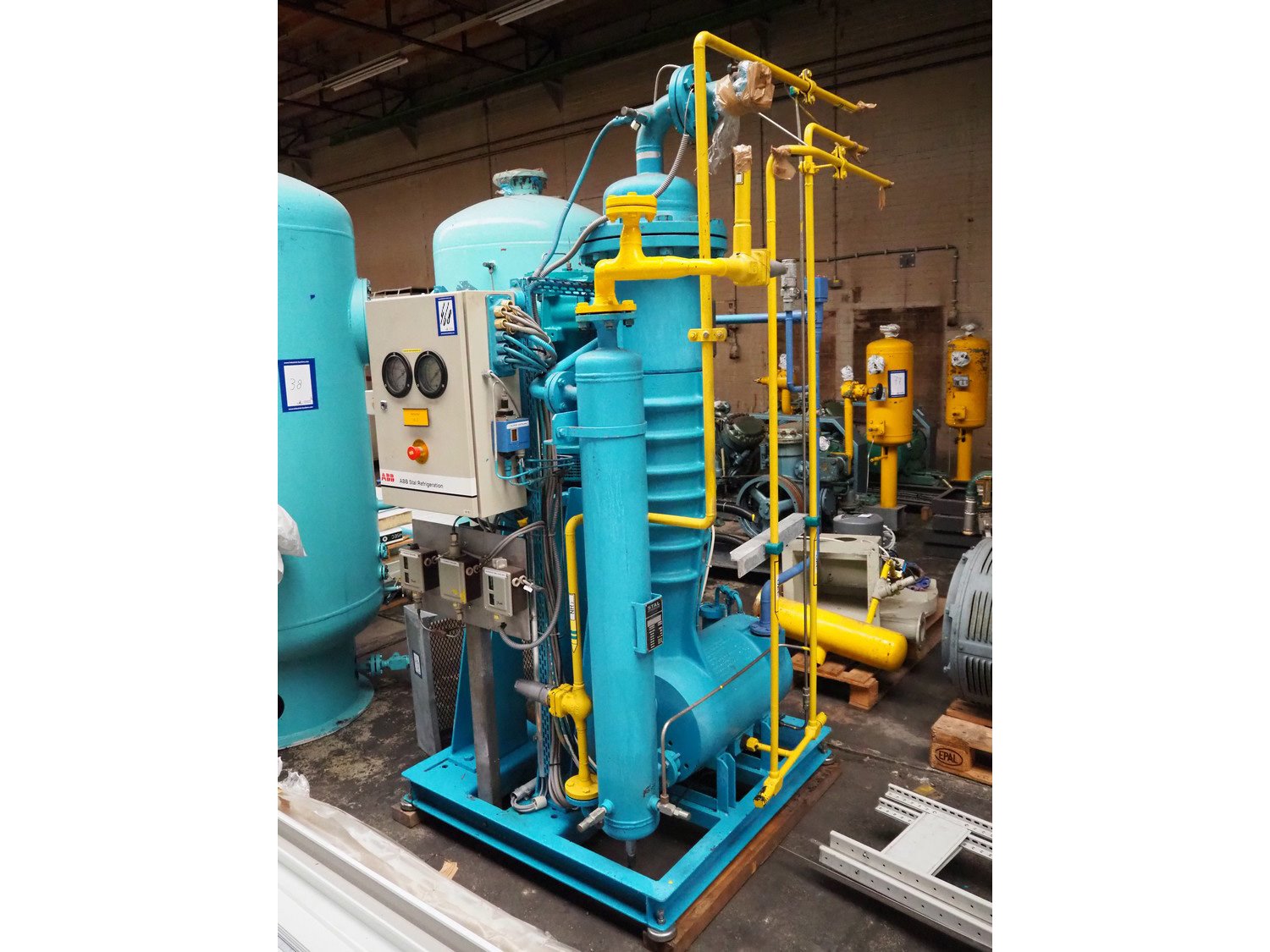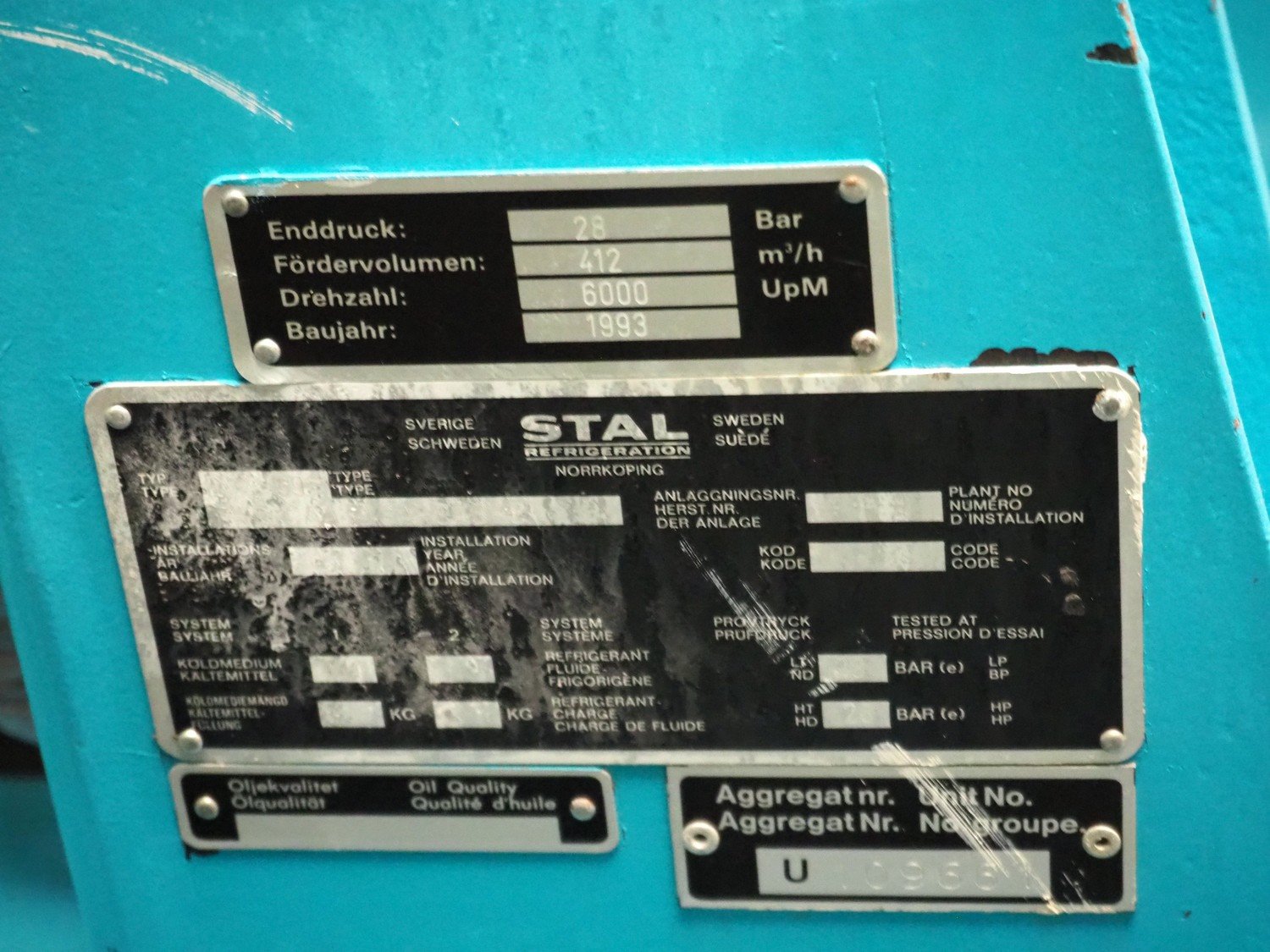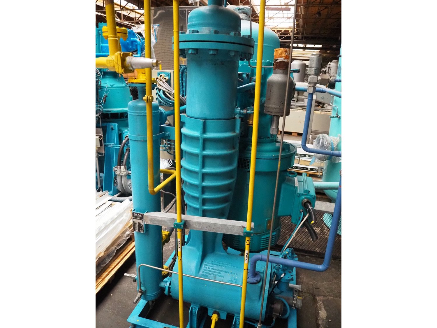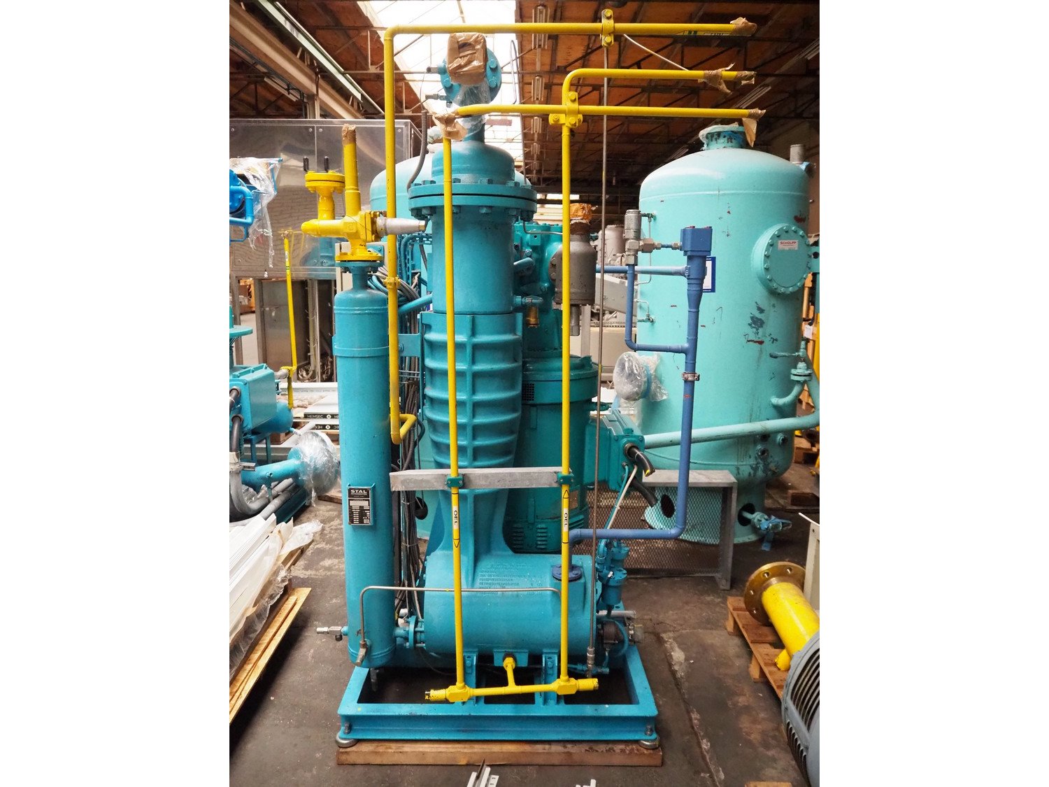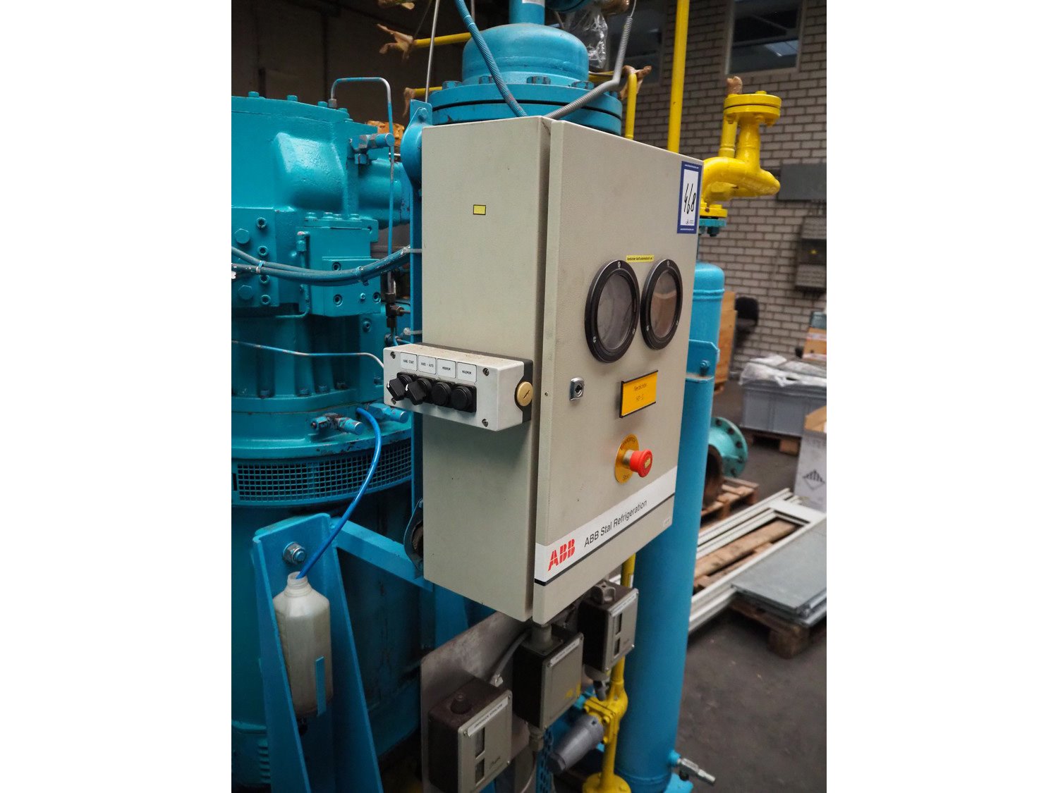 Stal Refrigeration glycol cooling compressor, type: SVA19C, serial number: U-P 330335, year of construction: 1998, weight: 1675 kg, NH3 oil cooler - pre-lubrication oil pump, temperature range: -10°C/35°C, capacity: 268 kW, dimensions: 1400 mm x 1100 mm x 1900 mm. Kavel locatie: Westelbeersedijk 18, 5091 SM Oost-, West- en Middelbeers, Nederland