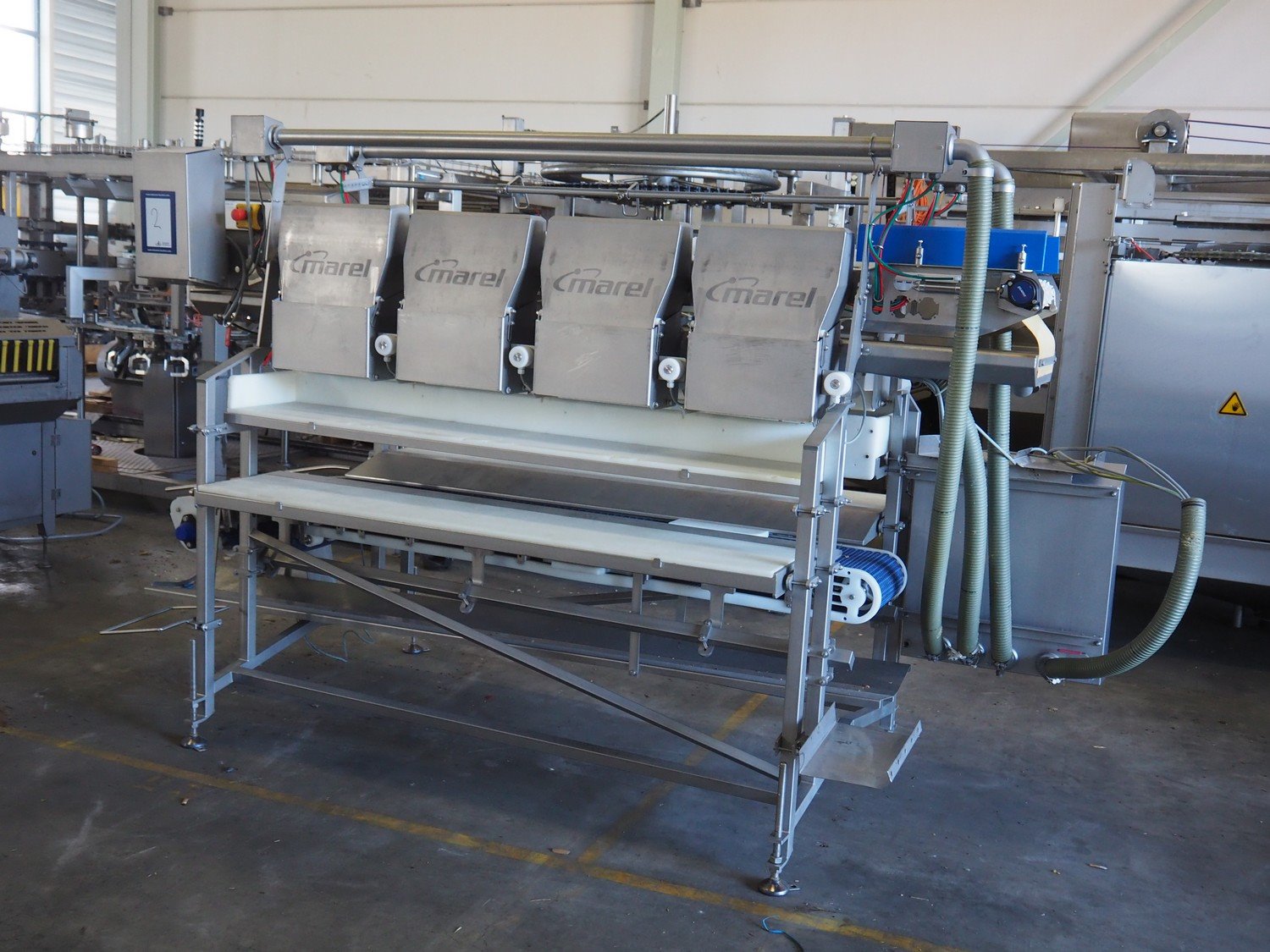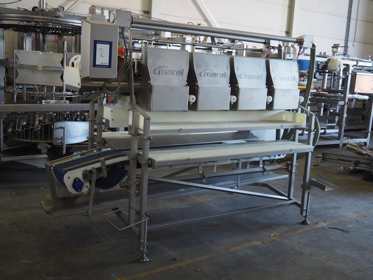 Marel Iceland ehf. Checkweigher for grader system, model: dis, type: 0004-072, serial number: A106575, year of construction: 2013, 8 stations, total possible belt width: 330 mm, plastic mesh belt, belt width: 300 mm, total dimensions: 3300 mm x 1400 mm x 1940 mm. Kavel locatie: Keulschevaart 24 (unit 50-52), 3621 MX Breukelen, Nederland