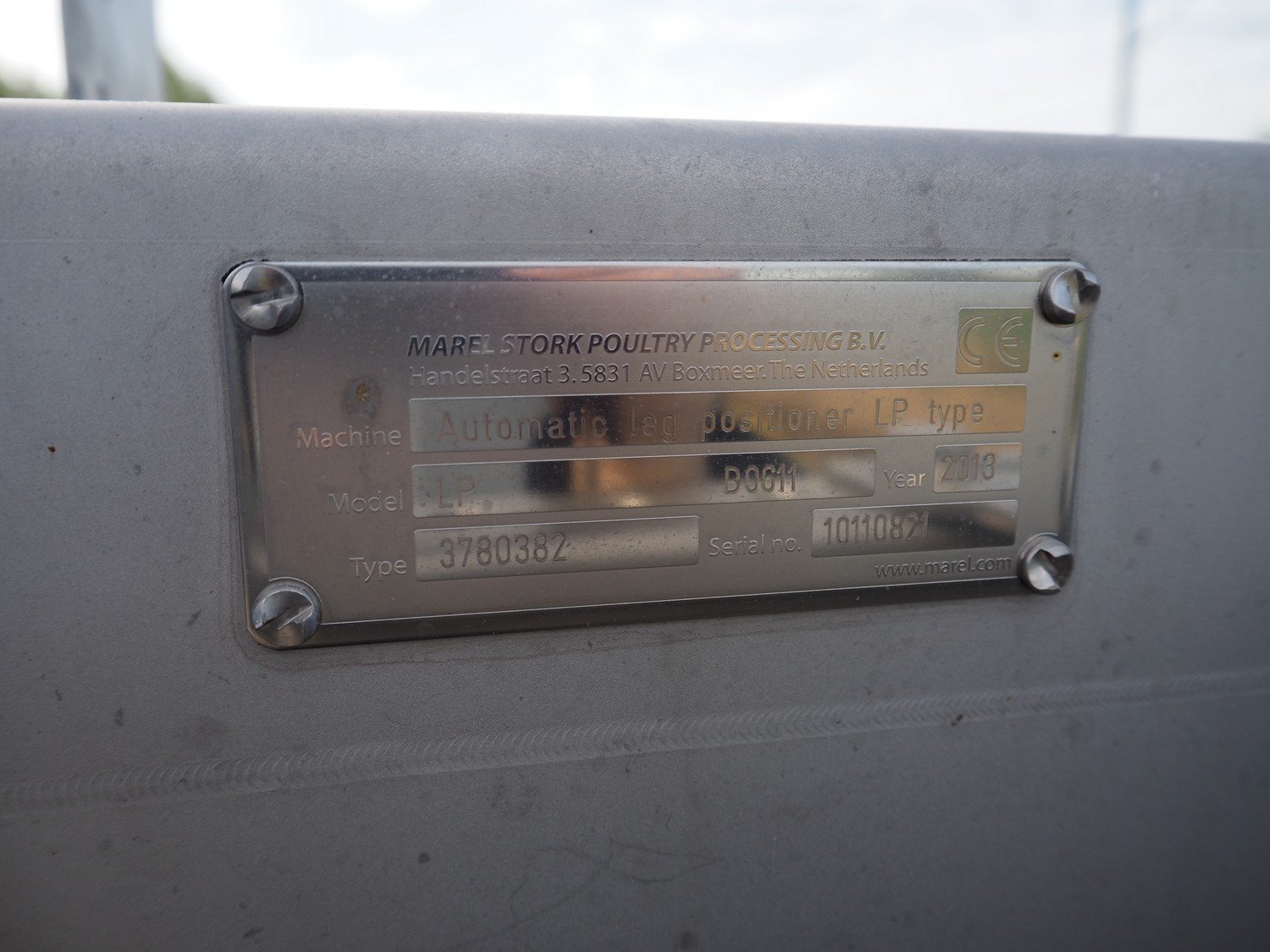 Marel Stork Poultry Processing B.V. automatic leg positioner LP type, model: LP B0611, type: 3780382, serial number: 10110821, year of construction: 2013, 12 stations, dimensions: 1400 mm x 1200 mm x 2500 mm. Kavel locatie: Keulschevaart 24 (unit 50-52), 3621 MX Breukelen, Nederland