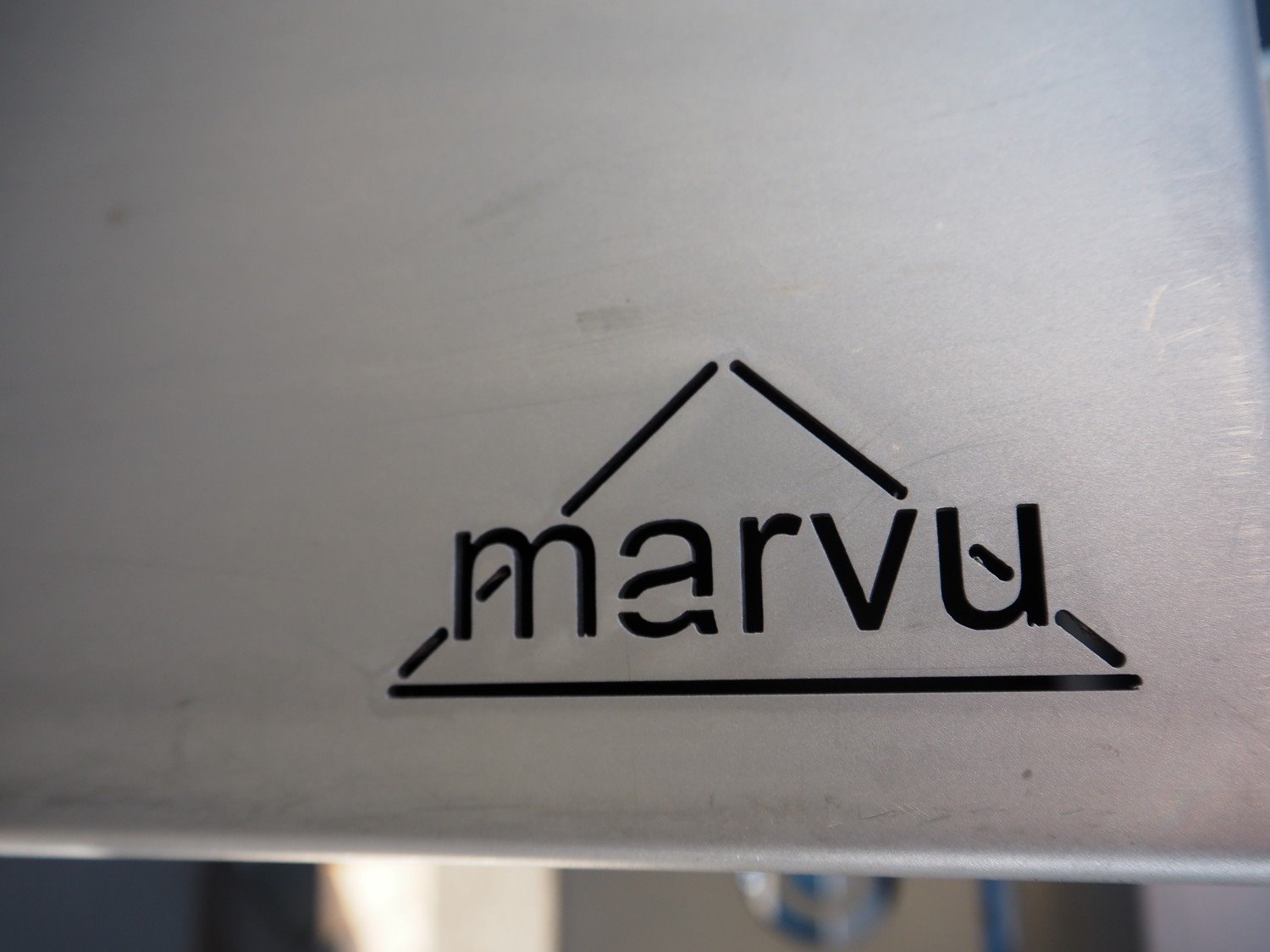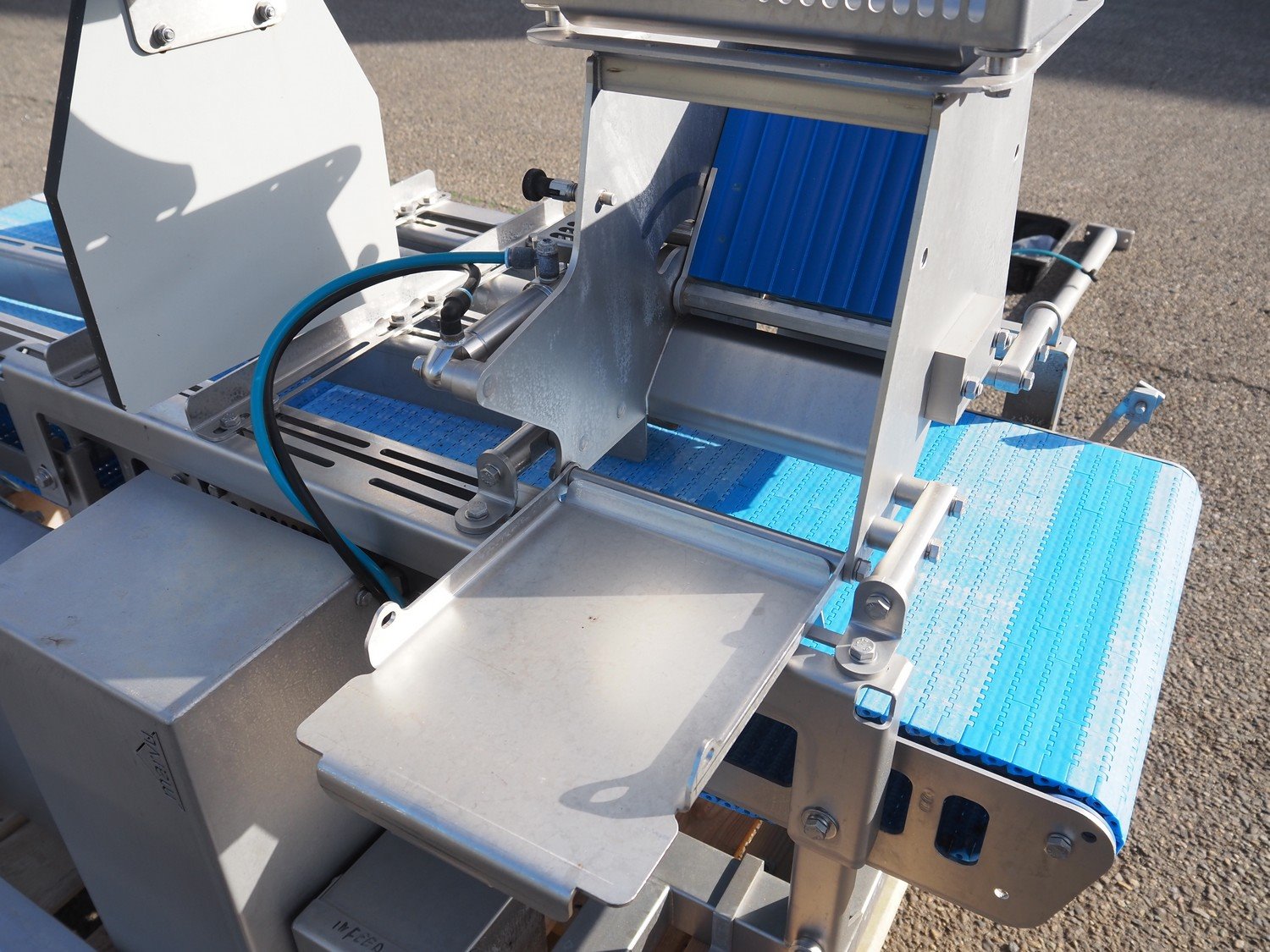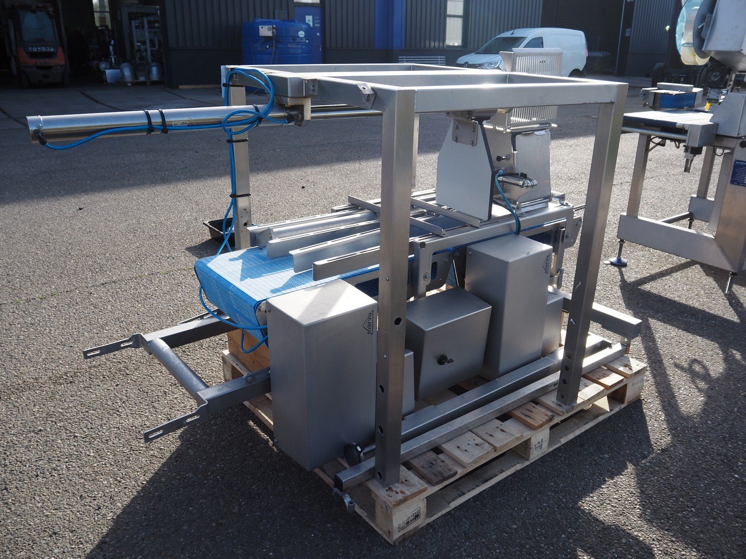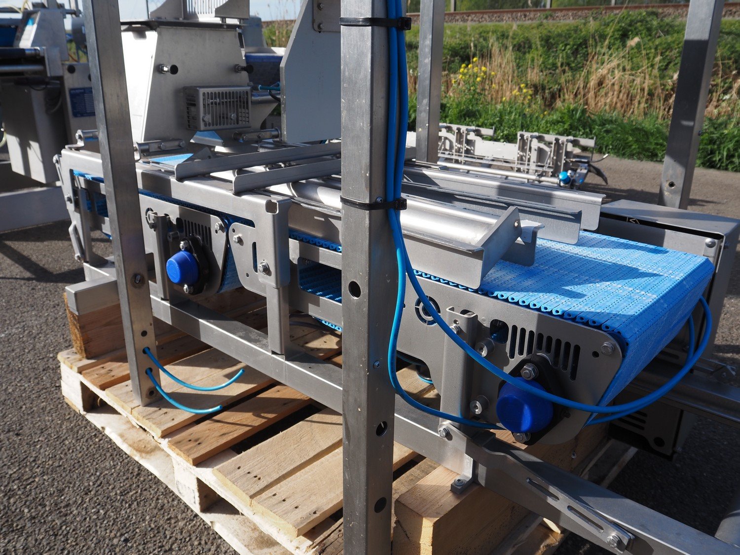 Marvu transport belt with 2-way infeed hopper, plastic belt, belt width: 380 mm, total dimensions: 2000 mm x 1000 mm x 1100 mm. Kavel locatie: Keulschevaart 24 (unit 50-52), 3621 MX Breukelen, Nederland