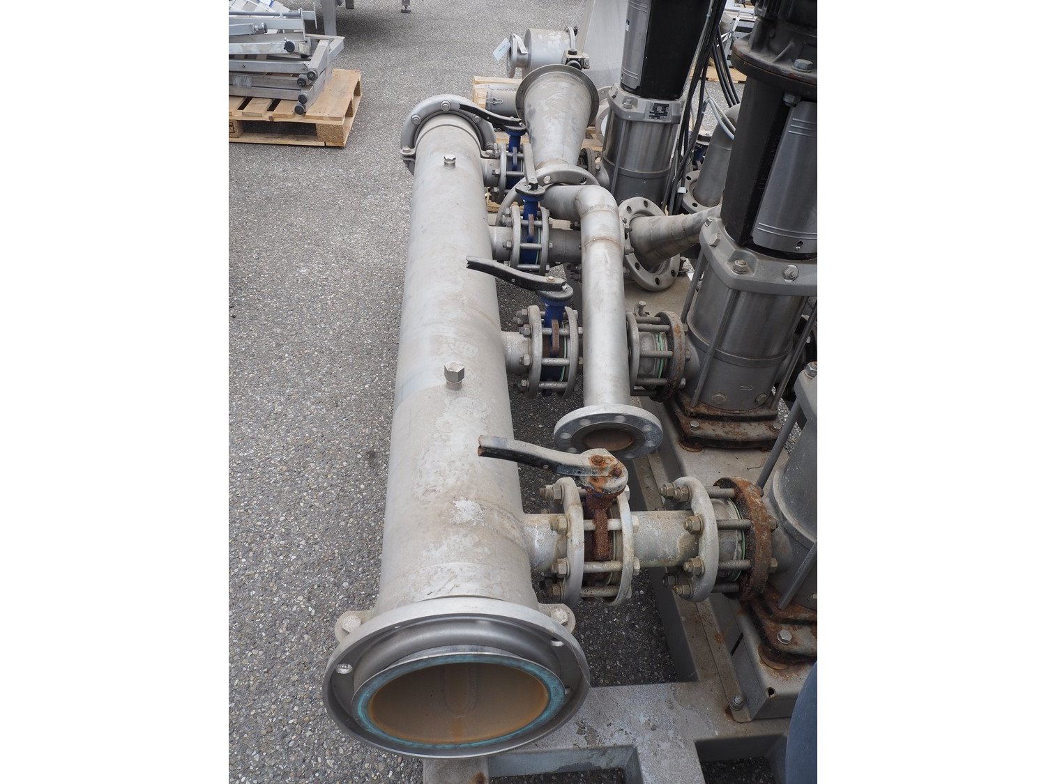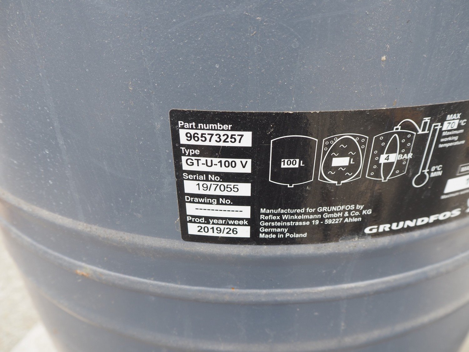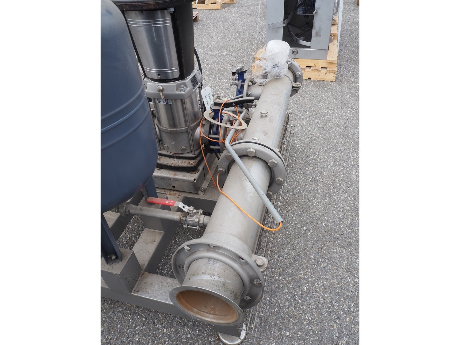 Grundfos high pressure installation consisting of 4 Grundfos circulation pumps, type: (2x) CRNE45-2-1 A-F-A-E-HQQE, (2x) CRE45-2-1 A-F-A-E-HQQE and 2 Grundfos steel pressure vessels, type: GT-U-100 V, dimensions: 2700 mm x 1370 mm x 1950 mm, 1900 mm x 1300 mm x 1520 and 1300 mm x 1350 mm x 1620 mm. Kavel locatie: Keulschevaart 24 (unit 50-52), 3621 MX Breukelen, Nederland
