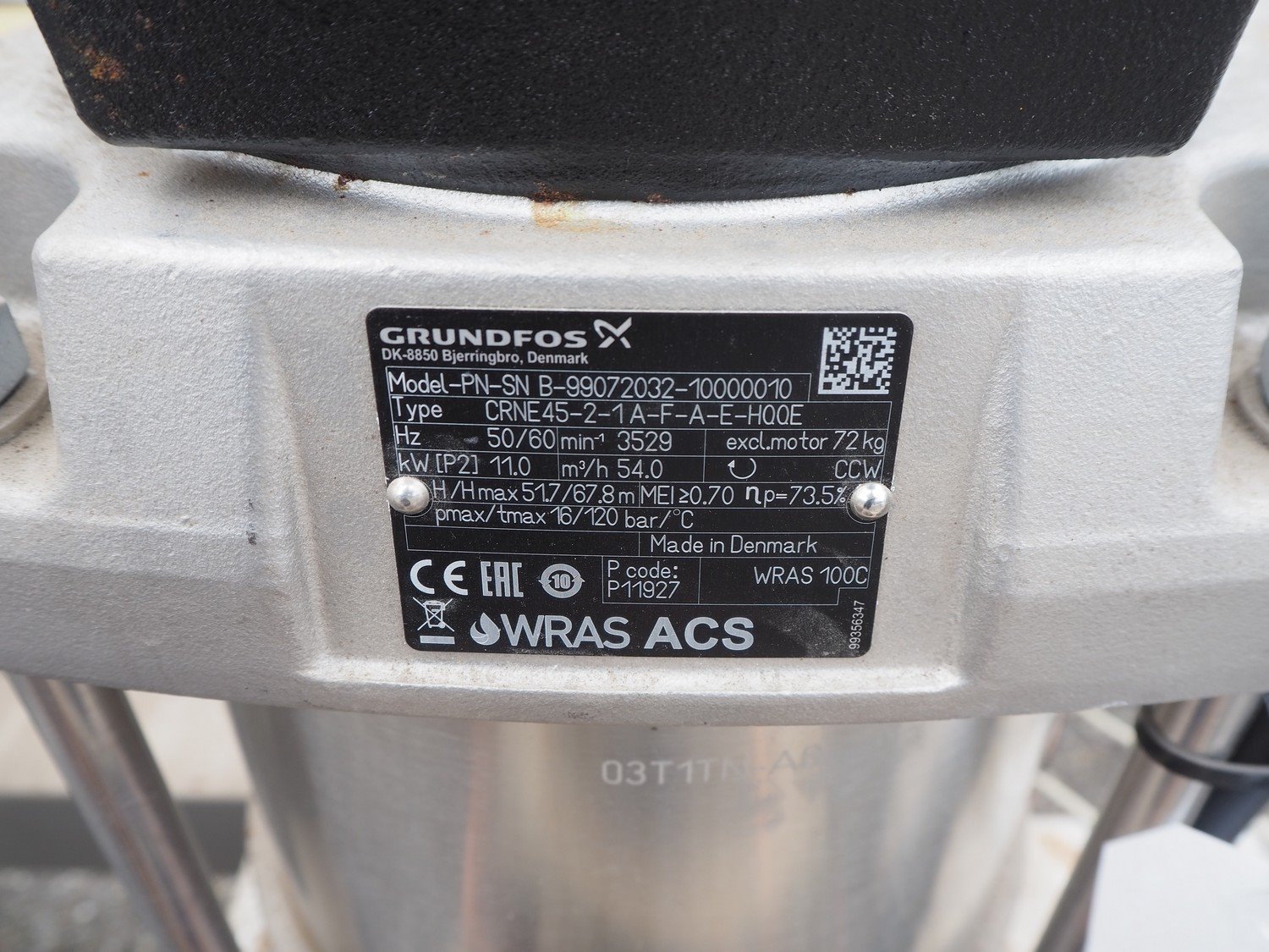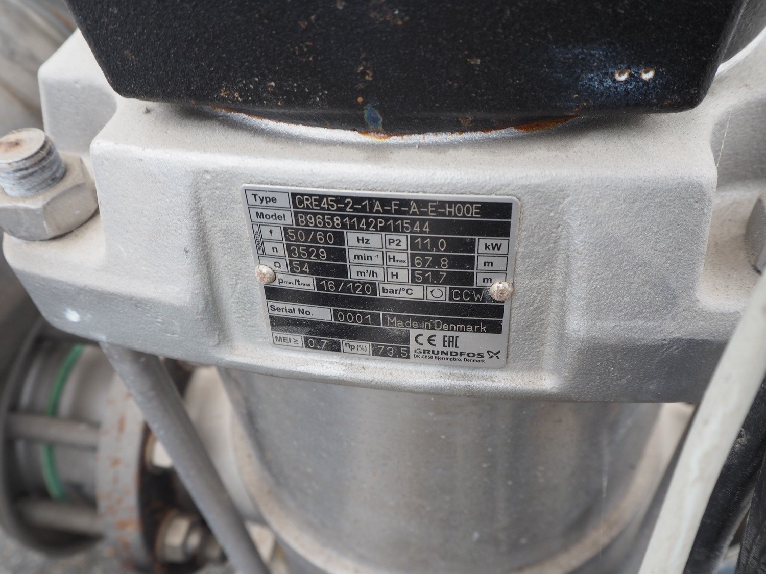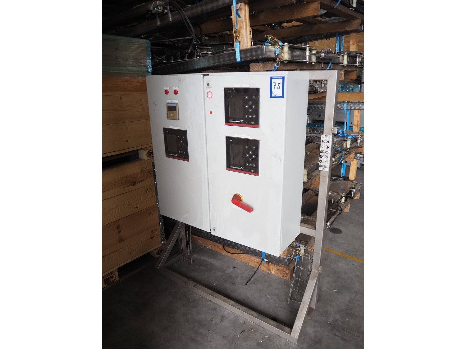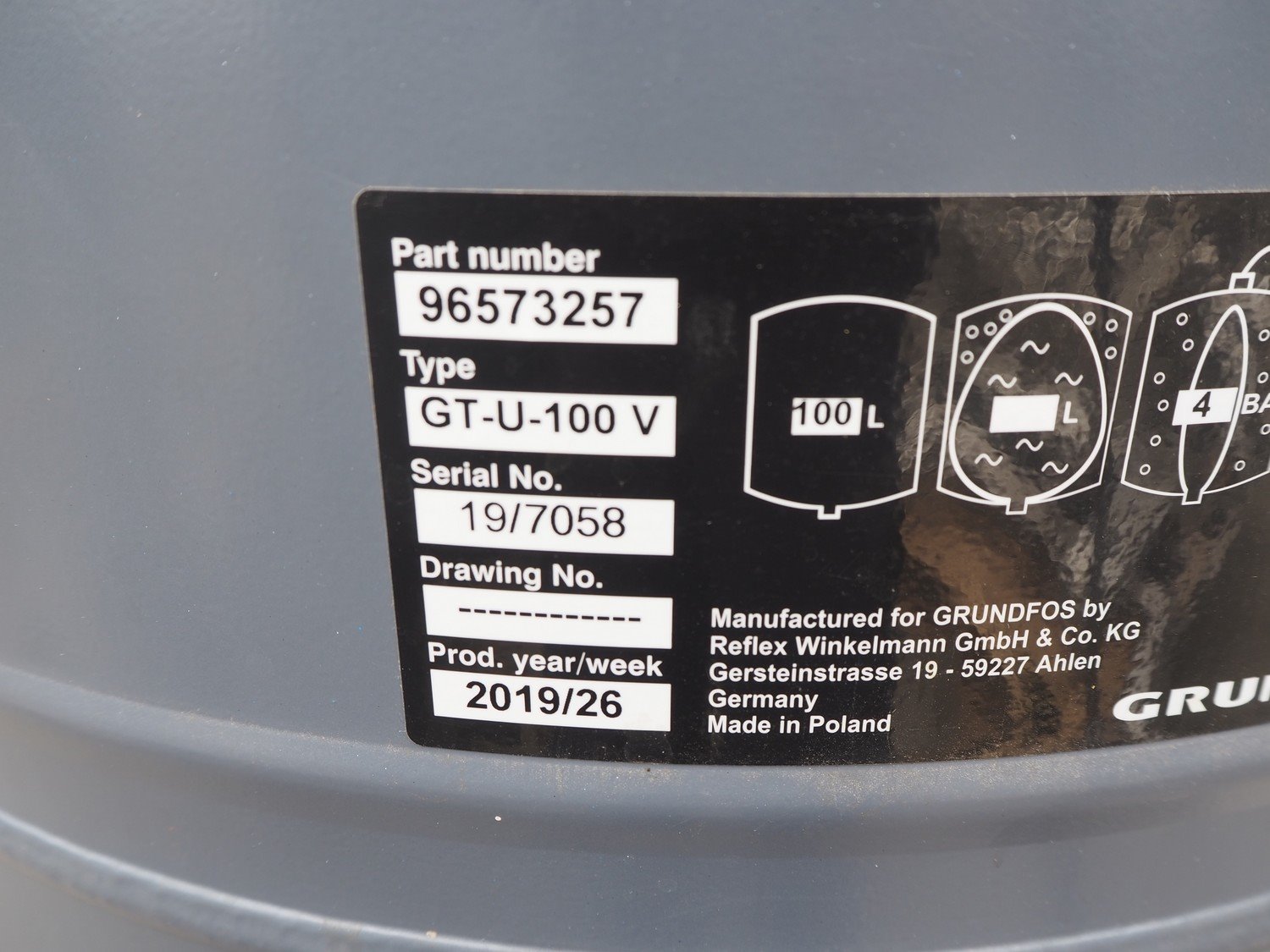 Grundfos high pressure installation consisting of 4 Grundfos circulation pumps, type: (2x) CRNE45-2-1 A-F-A-E-HQQE, (2x) CRE45-2-1 A-F-A-E-HQQE and 2 Grundfos steel pressure vessels, type: GT-U-100 V, dimensions: 2700 mm x 1370 mm x 1950 mm, 1900 mm x 1300 mm x 1520 and 1300 mm x 1350 mm x 1620 mm. Kavel locatie: Keulschevaart 24 (unit 50-52), 3621 MX Breukelen, Nederland