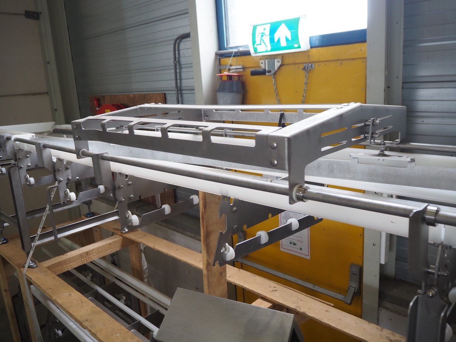 2 transport belts, s/s frame, belt width: 450 mm, total dimensions: (2x) 4900 mm x 600 mm x 750 mm. Missing belt. Kavel locatie: Keulschevaart 24 (unit 50-52), 3621 MX Breukelen, Nederland