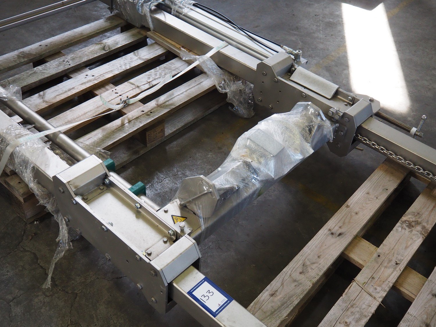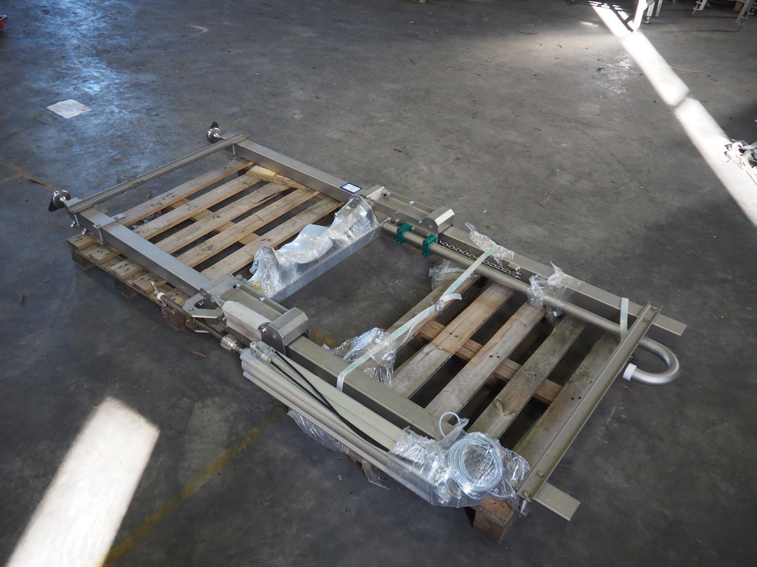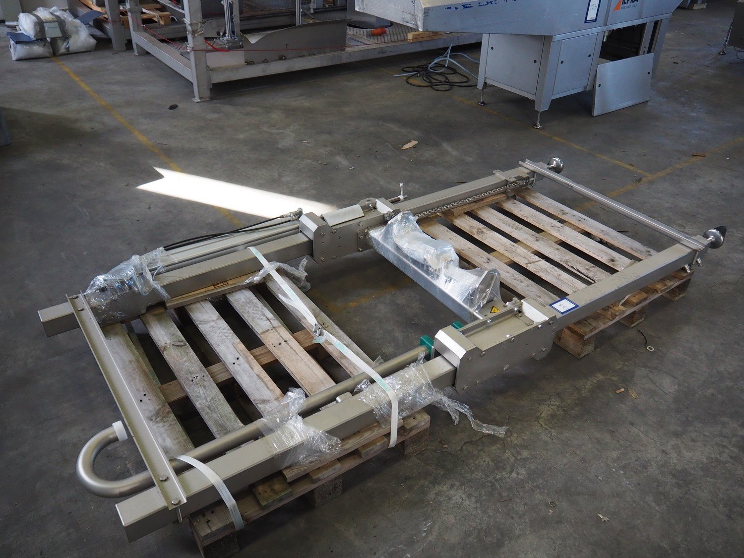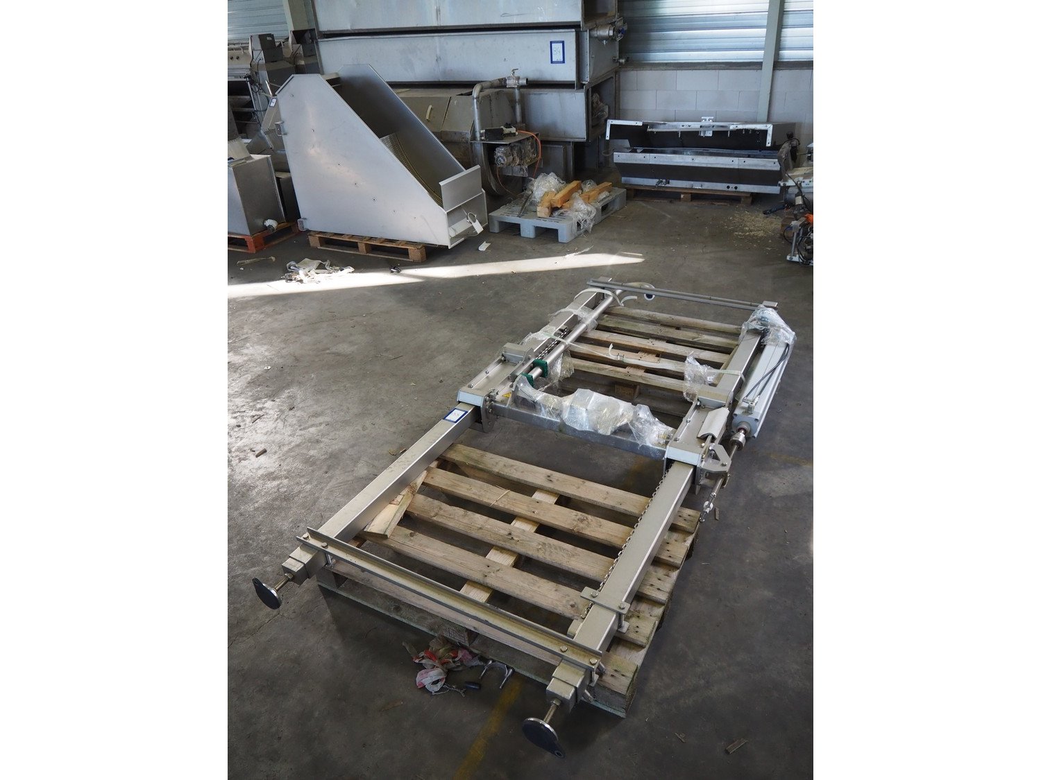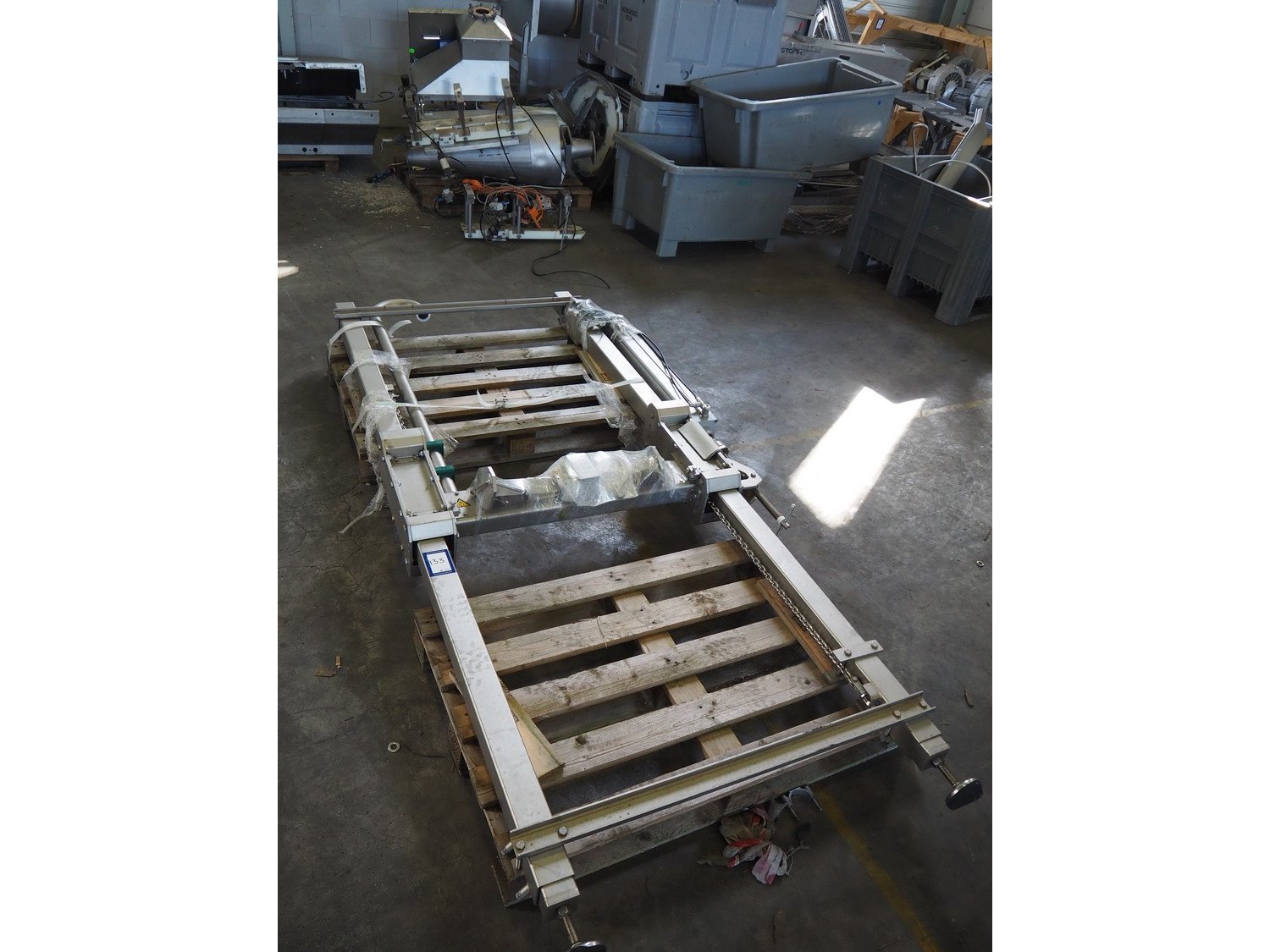Meyn height adjustable frame, dimensions: 200 mm x 1350 mm x 2800 mm. Kavel locatie: Keulschevaart 24 (unit 50-52), 3621 MX Breukelen, Nederland