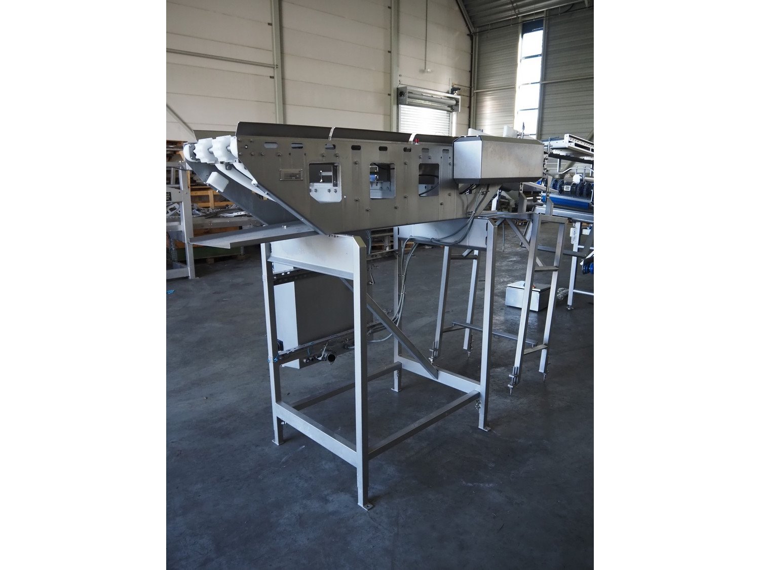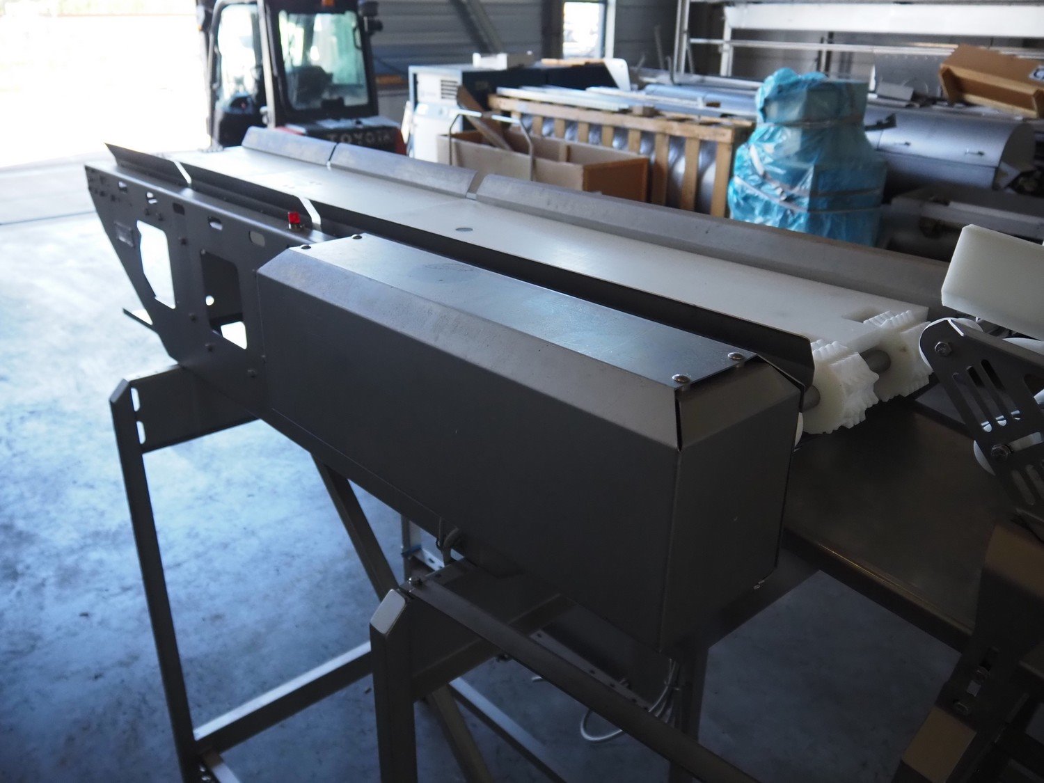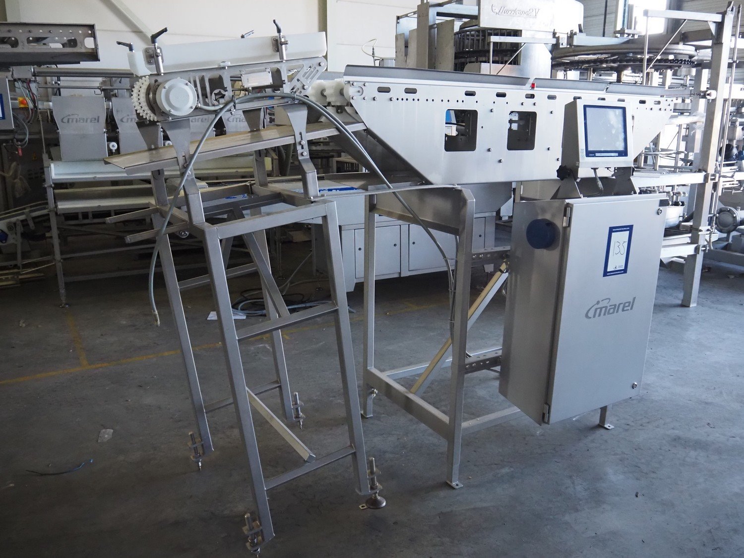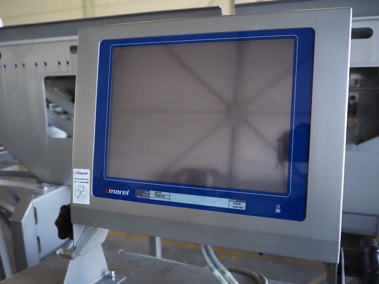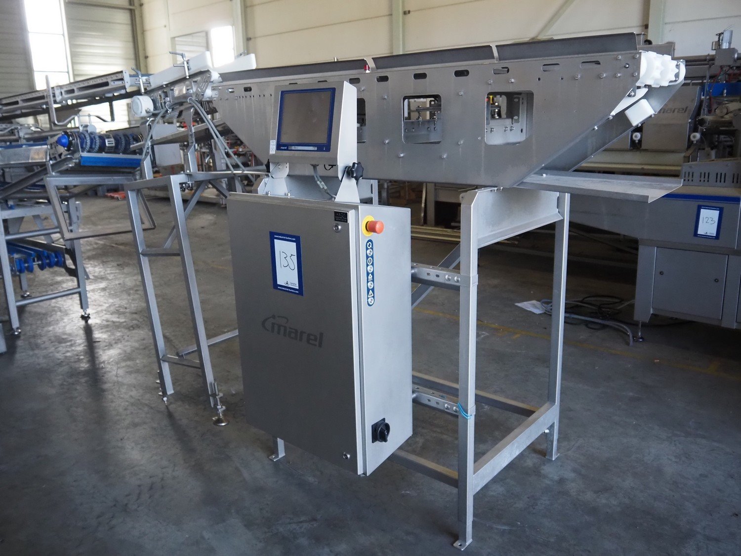 Marel Iceland ehf. Checkweigher for grader system with straight conveyor, model: CUS-ELCM, type: 2034-001, serial number: A106632, year of construction: 2013, 400 V, 3 Ph, 50/60 Hz, 3.3 A, total possible belt width: 320 mm, total dimensions: 2600 mm x 1100 mm x 1850 mm. missing belt. Kavel locatie: Keulschevaart 24 (unit 50-52), 3621 MX Breukelen, Nederland