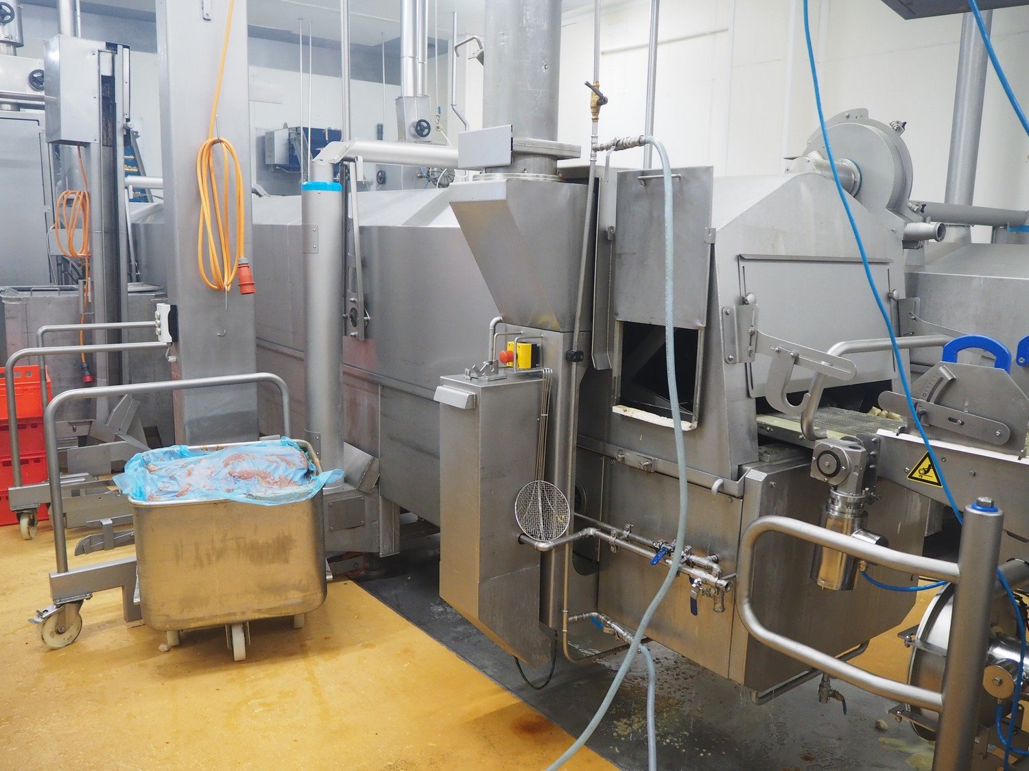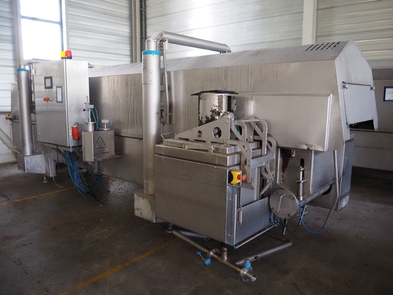 TST Innovative food machinery frying tunnel, model: HotOilFryer, belt width: 600 mm, total dimensions: 7000 mm x 2200 mm x 2200 mm. In- and outfeed conveyors are not included. Lot already professionally dismantled. Kavel locatie: Keulschevaart 24 (unit 50-52), 3621 MX Breukelen, Nederland