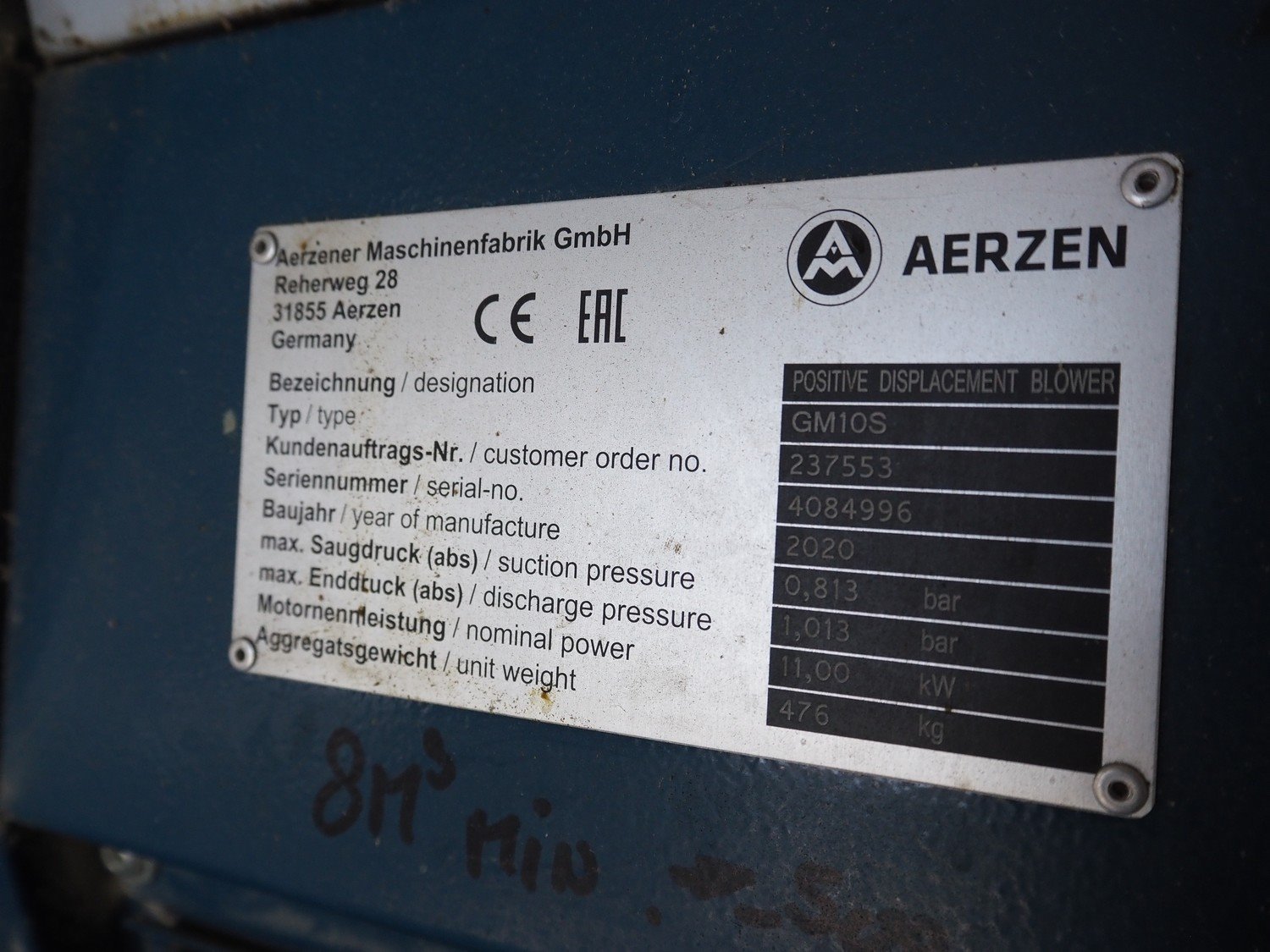 Aerzen positive displacement blower, type: GM10S, serial number: 4084996, year of construction: 2020, nominal power: 11 kW, weight: 476 kg, dimensions: 1200 mm x 940 mm x 1400 mm. Kavel locatie: Keulschevaart 24 (unit 50-52), 3621 MX Breukelen, Nederland
