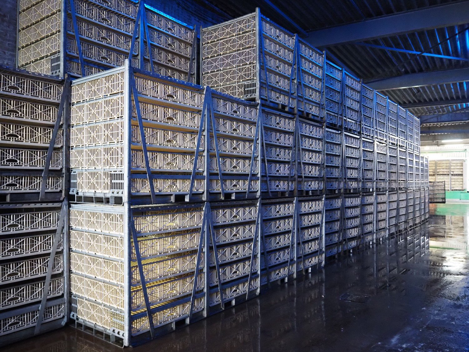 100 Stork live bird boxes, (2x) 5 floors, dimensions floors: (10x) 1100 mm x 1140 mm, total dimensions: (100x) 2450 mm x 1200 mm x 1460 mm. The boxes are expected to be available from August. Collection by appointment. Kavel locatie: Keulschevaart 24 (unit 50-52), 3621 MX Breukelen, Nederland