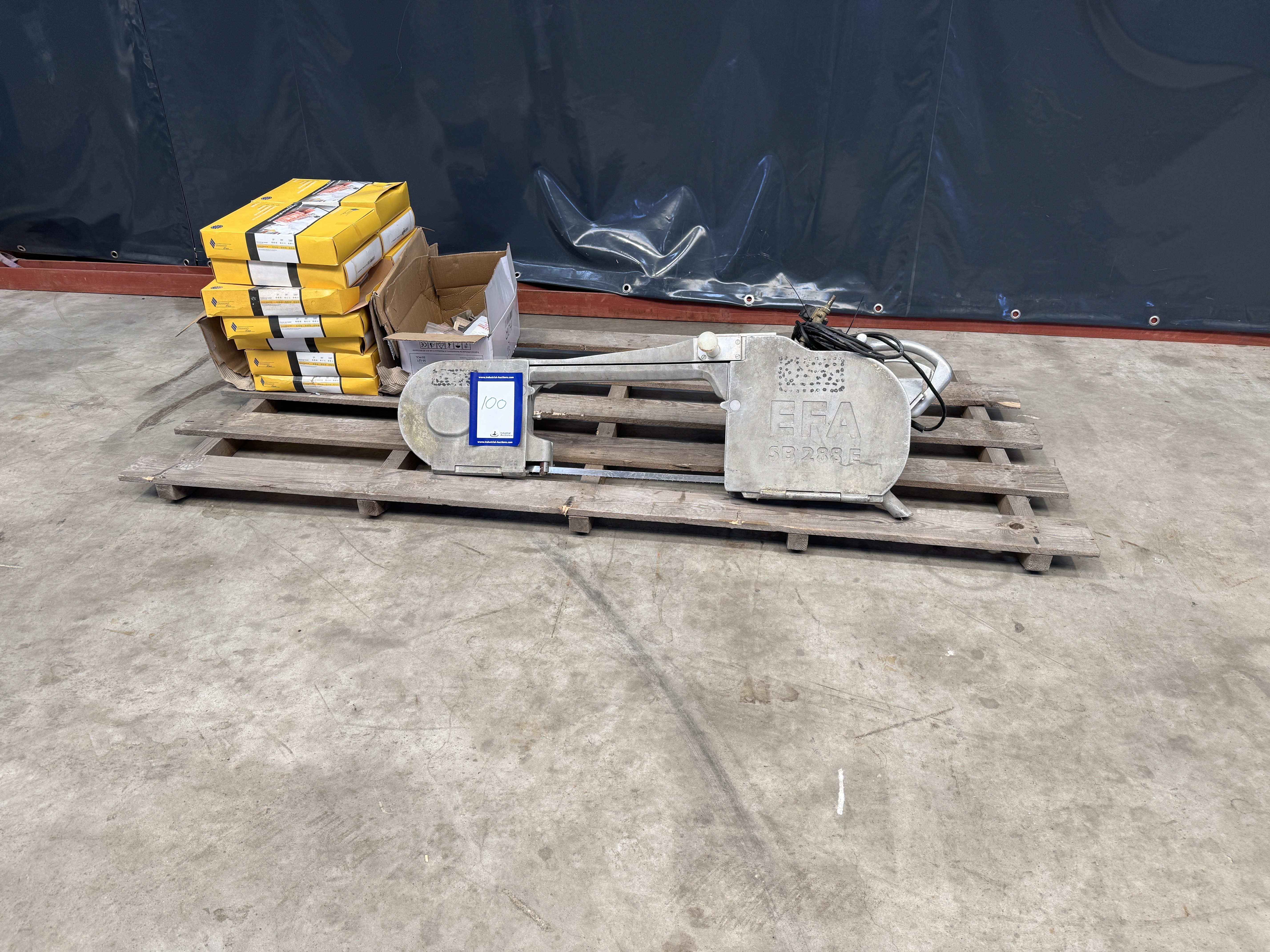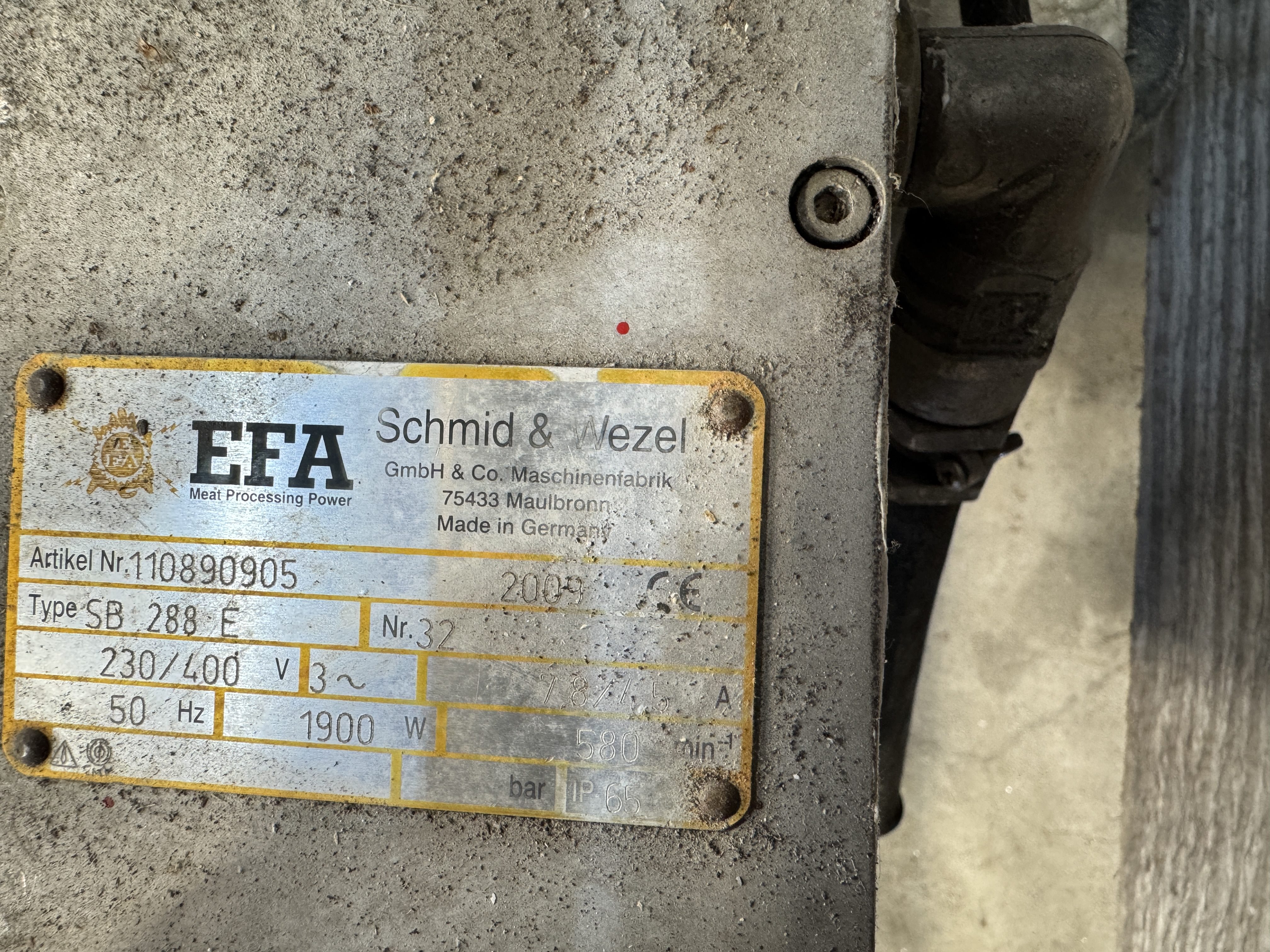 EFA Schmid & Wezel splitting saw, type: SB 288 E, number: 32, year of construction: 2009, 230/400 V, 3 Ph, 50 Hz, 1900 W, working width: 460 mm, total dimensions: 1330 mm x 200 mm x 500 mm. Kavel locatie: Makkummerwaard 3, 8321 WV Urk, Nederland