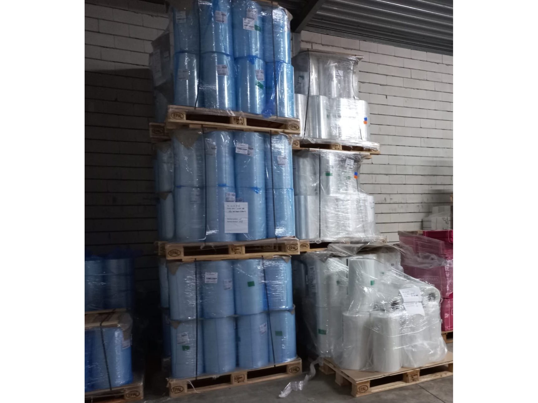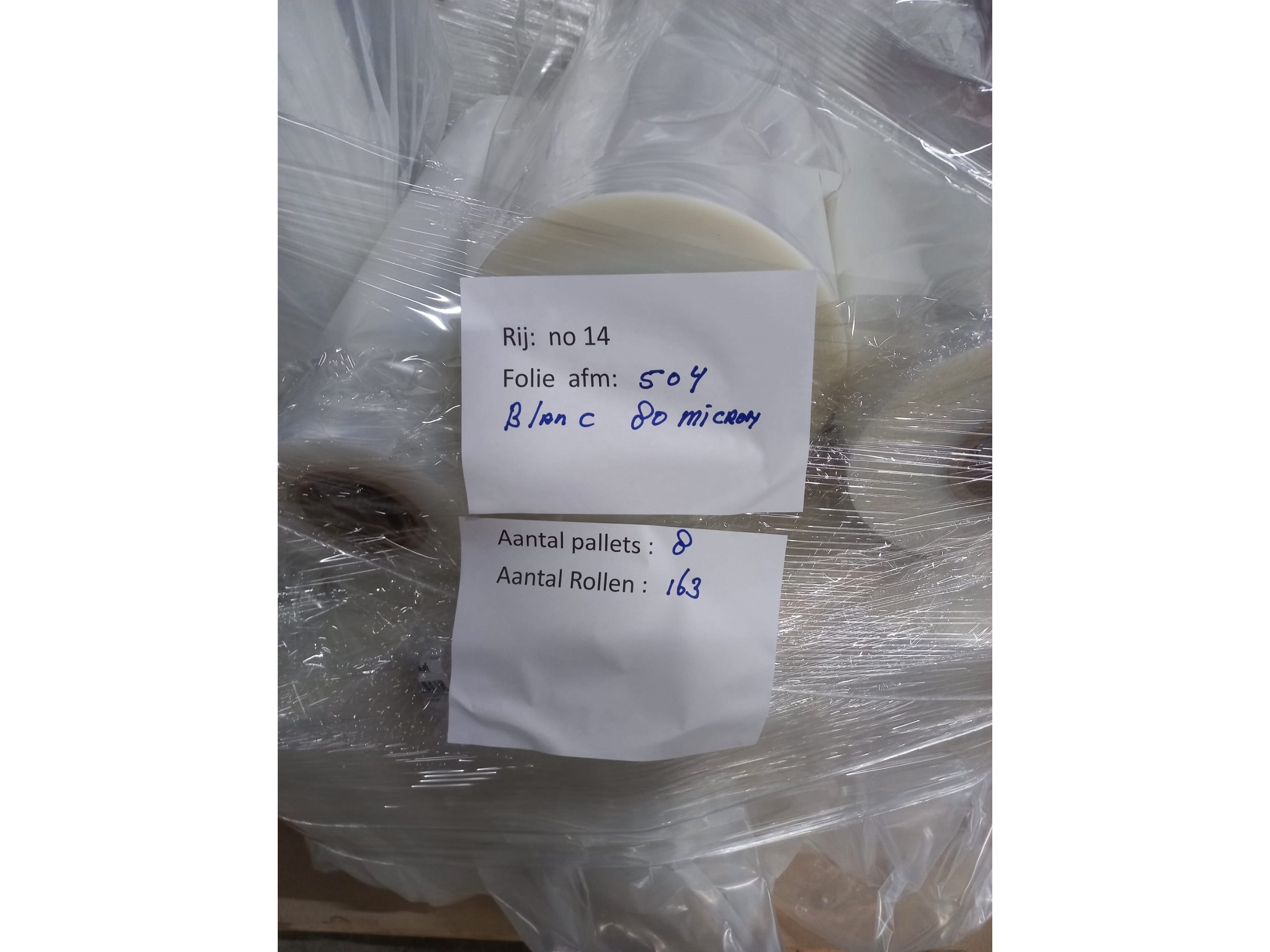 21 pallets with a total of 452 rolls of film, with a total length of 220950 meters, consisting of: 217 rolls of lower film PA-PE, dimensions: 0.100 mm x 525 mm, 163 rolls of upper film PA-PE, dimensions: 0.080 mm x 504 mm, 72 rolls of lower film PA-PE, dimensions: 0.160 mm x 525 mm. Kavel locatie: Ertveldweg 31, 5231 XA Den Bosch, Nederland