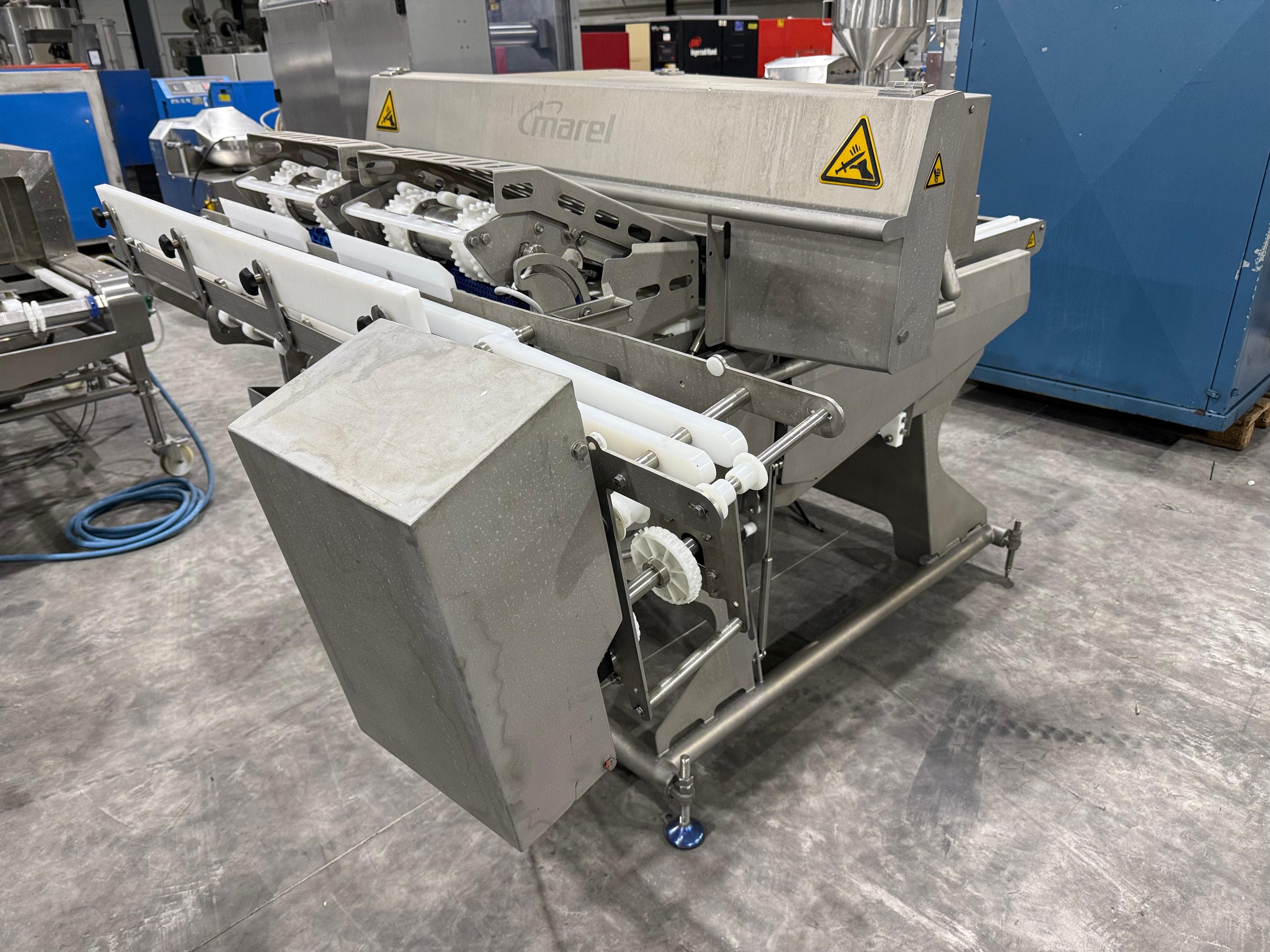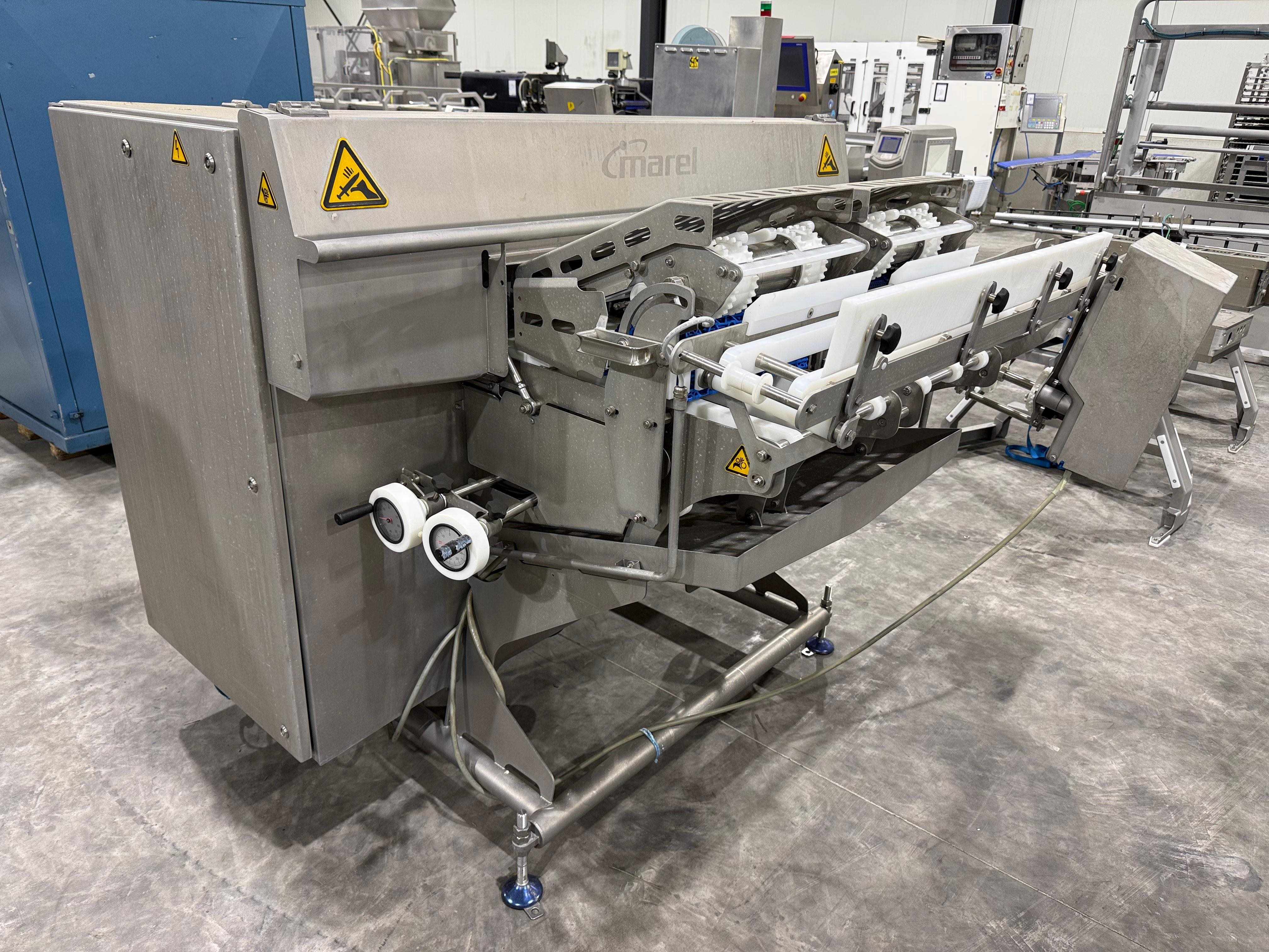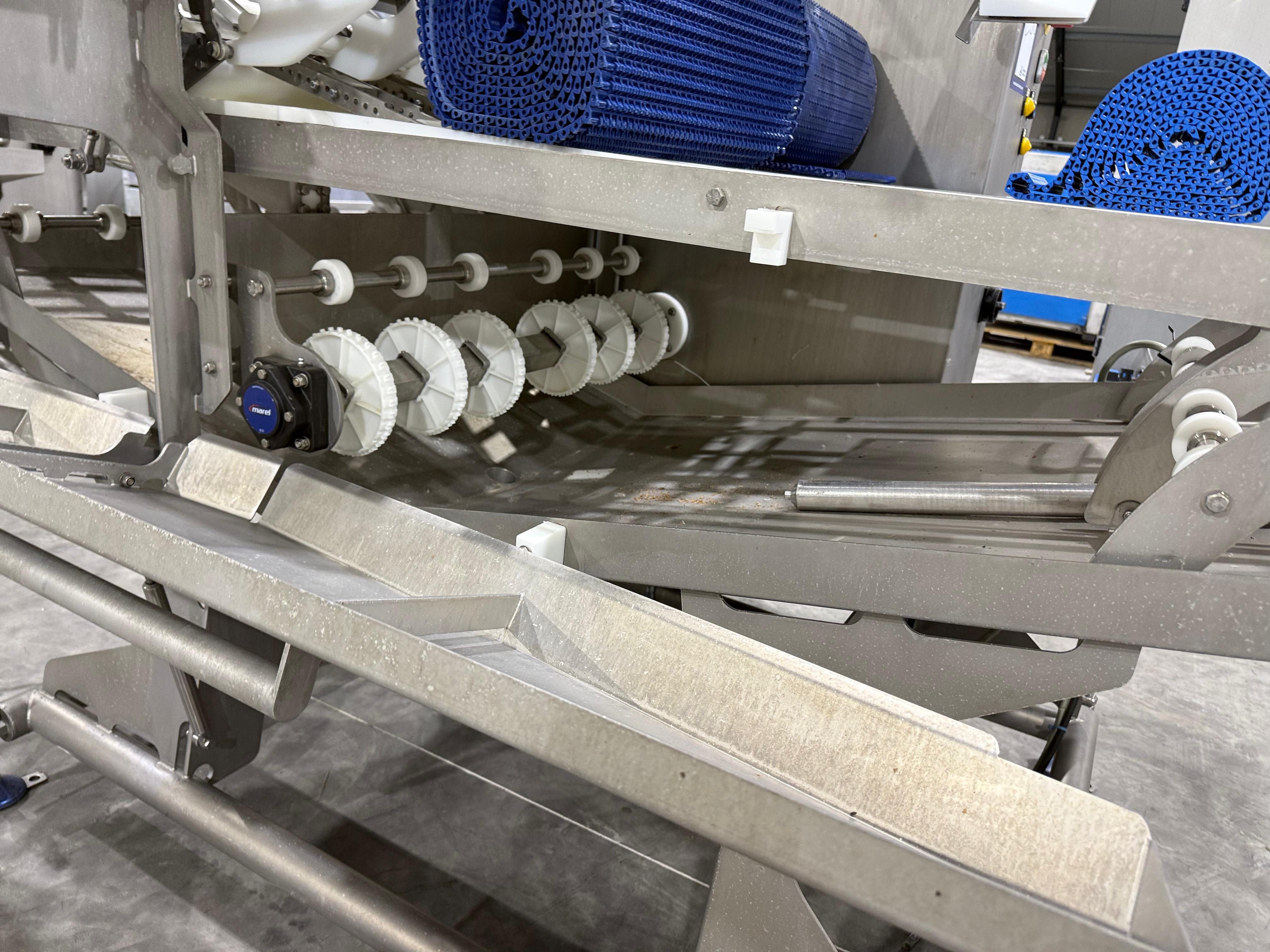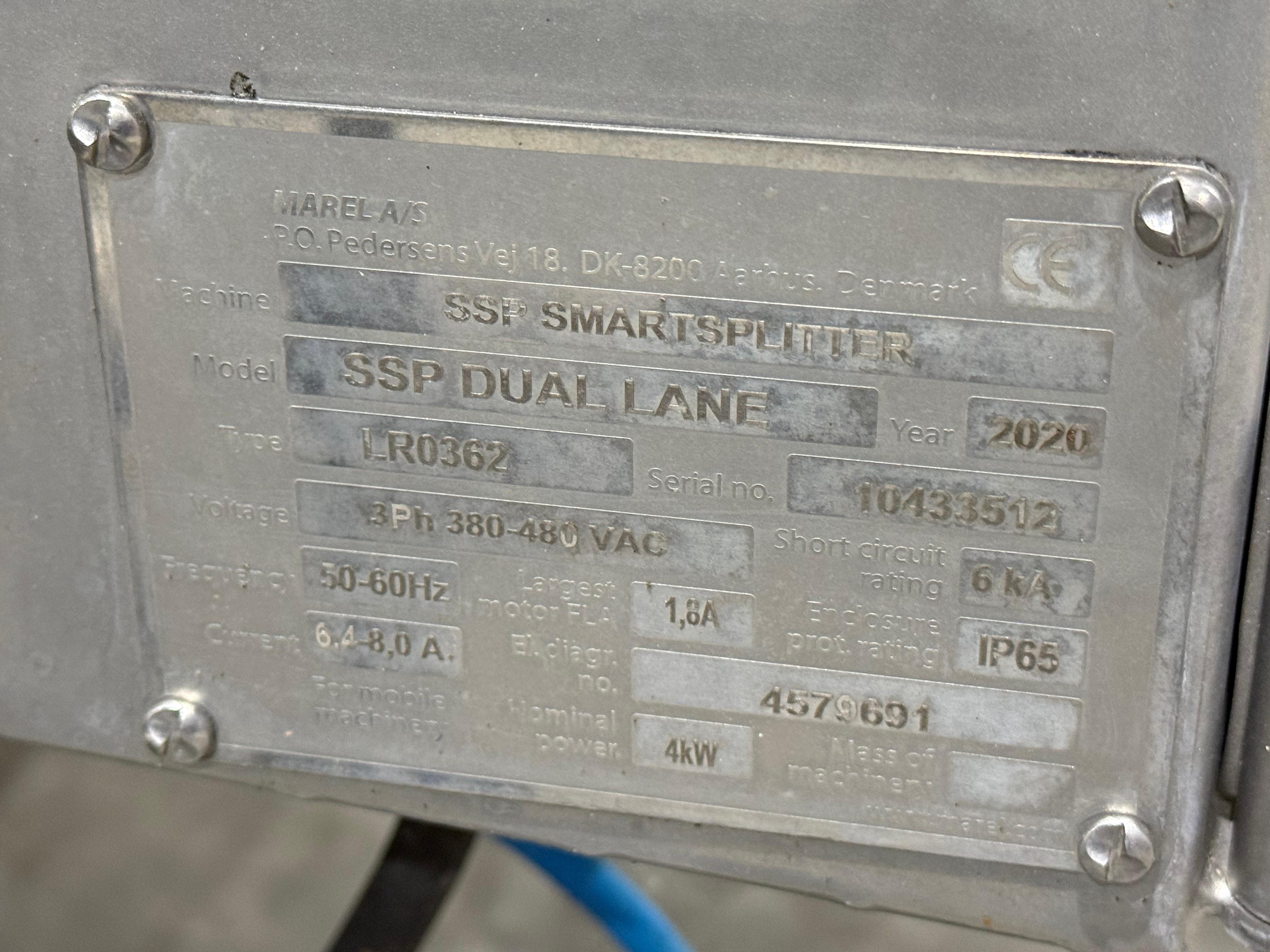 Marel smart splitter, model: SSP dual lane, serial number: 10433512, year of construction: 2020, 380-480 V, 50-60 Hz, 6.4-8.0 A, 4 kW, belt width: (2x) 360 mm, (1x) 180 mm, clearance: (2x) 325 mm x 120 mm, working width: 300 mm, total dimensions: 2100 mm x 1900 mm x 1450 mm. Kavel locatie: Langereijt 29A, 5091 JP Middelbeers, Nederland