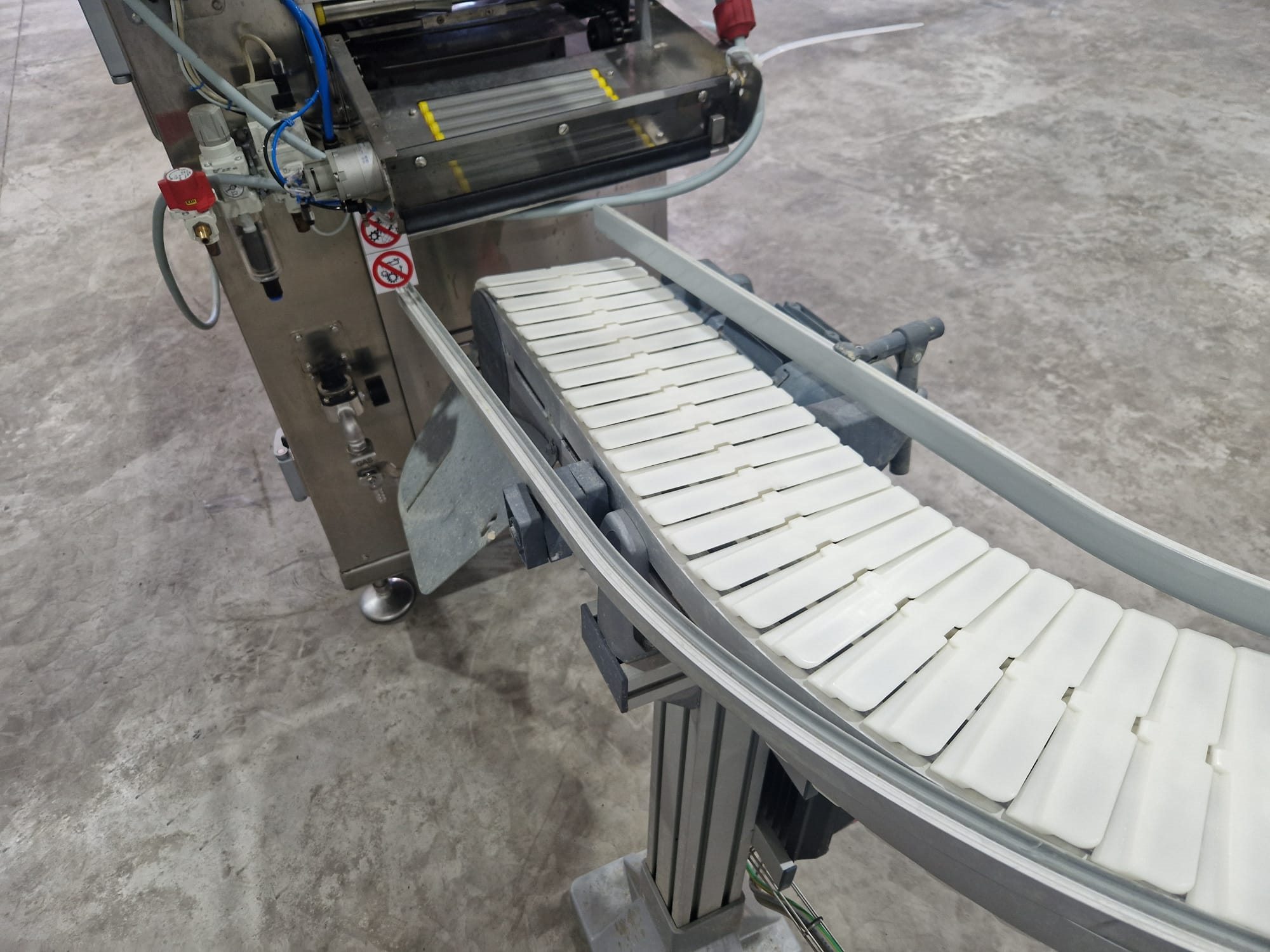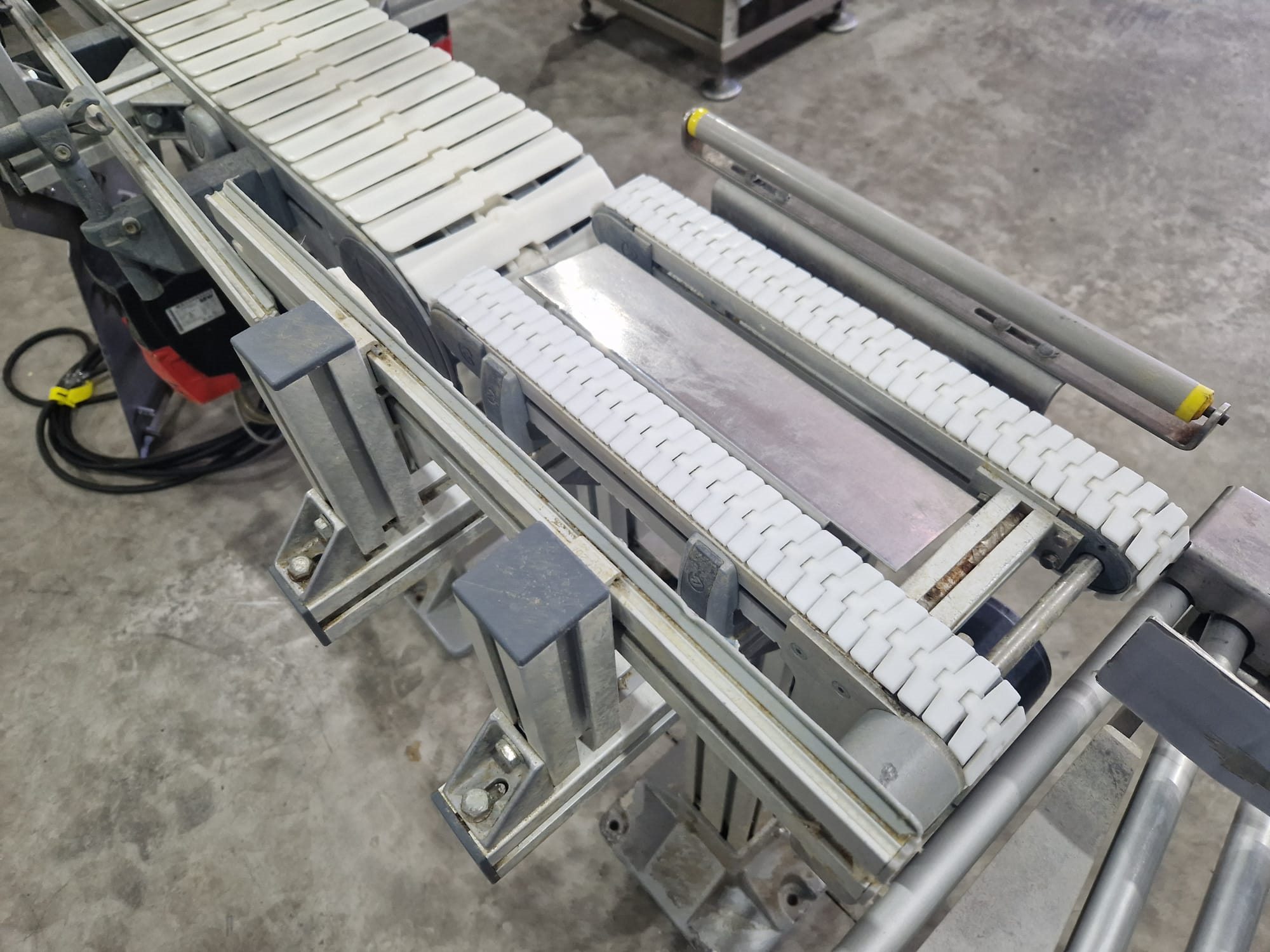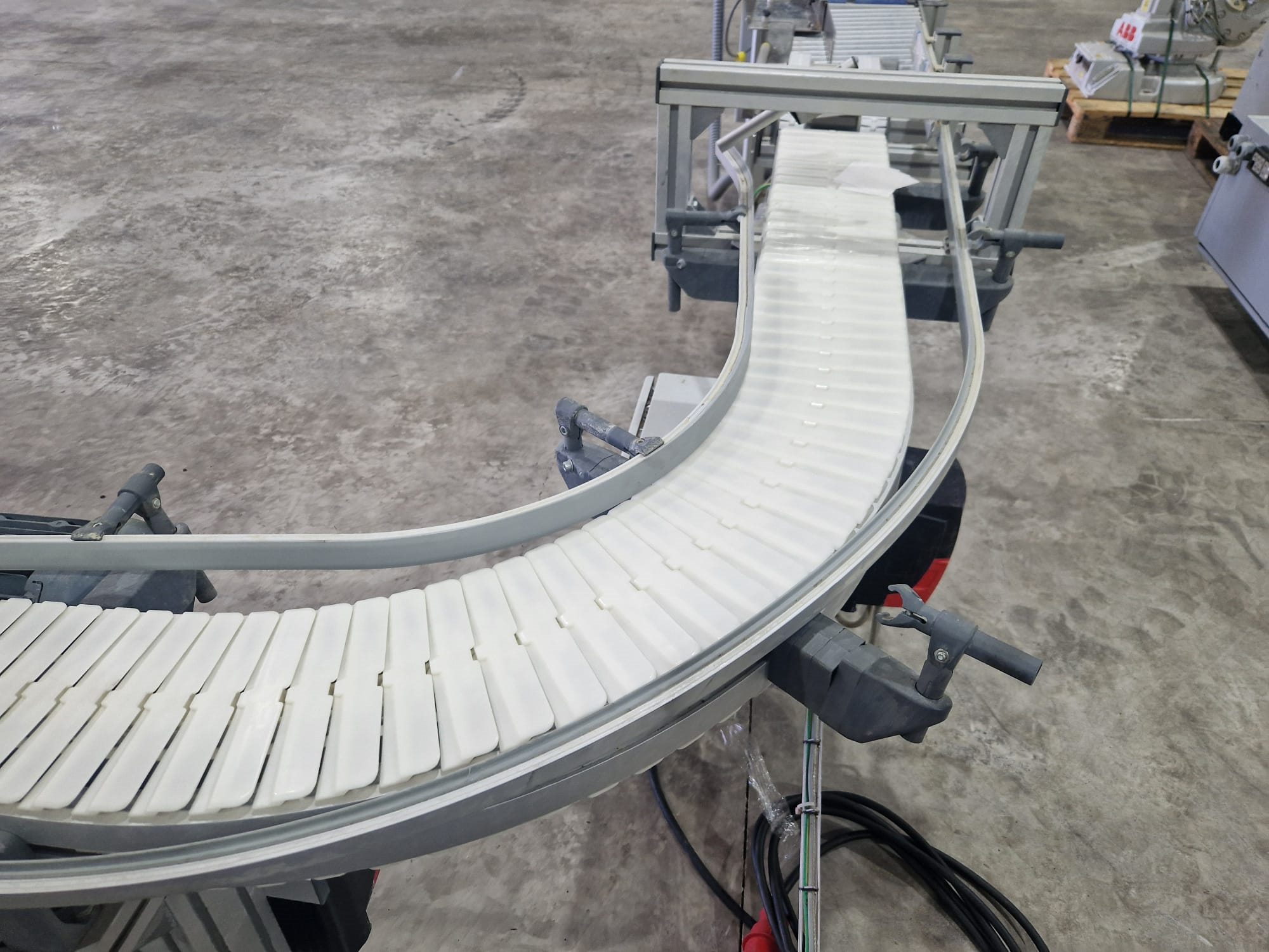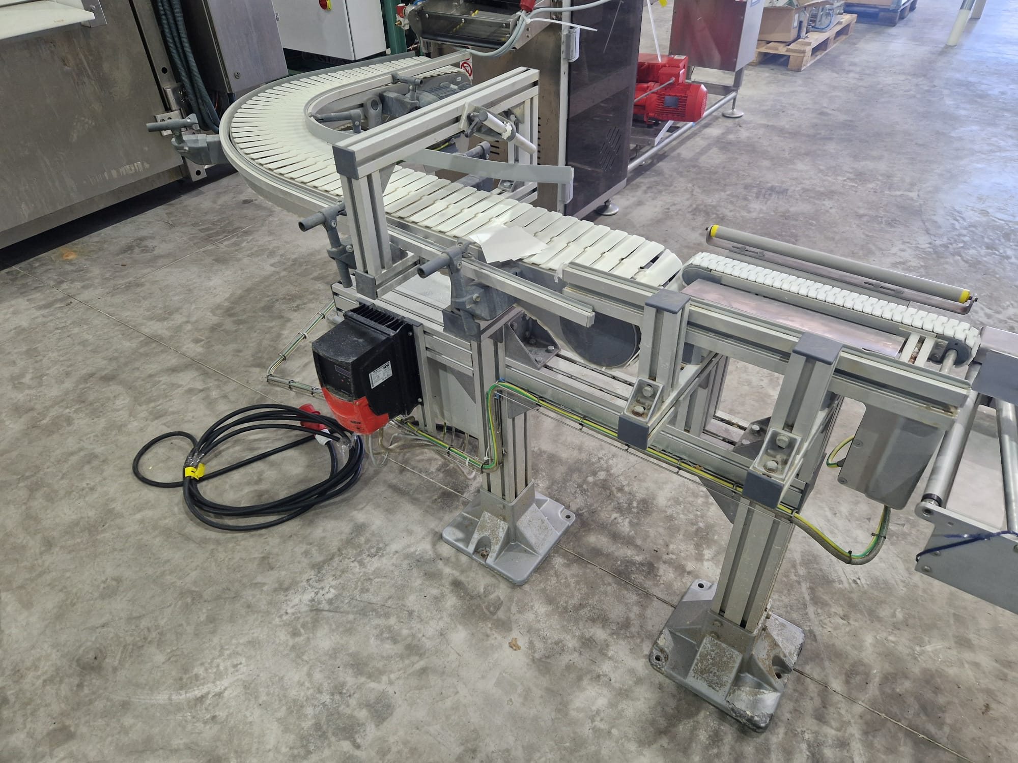 Flexlink 90° curve conveyor, type: 1233582, serial number: 2333901, year of construction: 01/18, plastic belt, belt width: (1x) 175 mm (2x) 45 mm, total dimensions: 1900 mm x 1300 mm x 1100 mm. Kavel locatie: Langereijt 29A, 5091 JP Middelbeers, Nederland