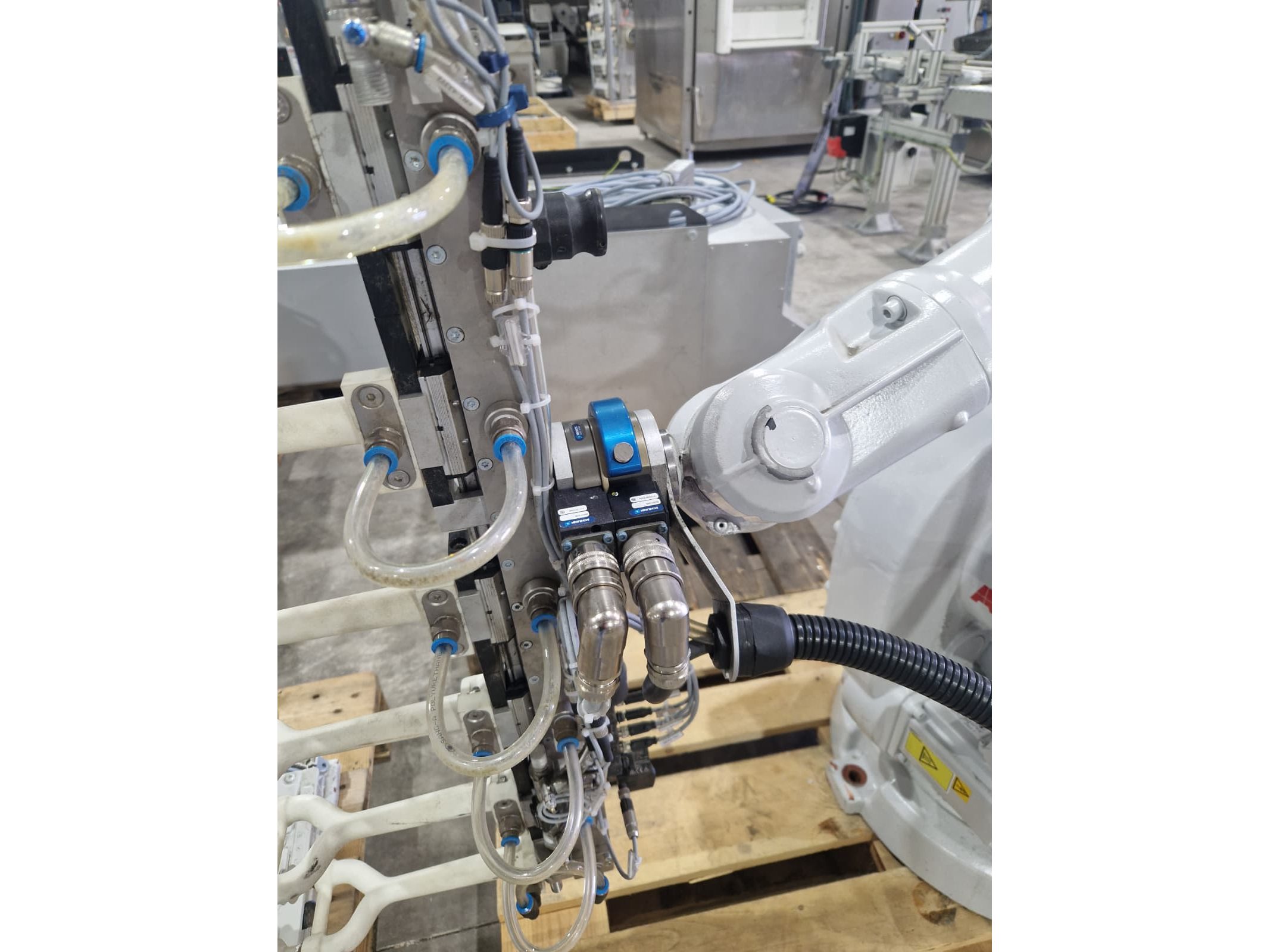 ABB AB robot arm with contol unit, type robot: IRB 1600, serial number: 1600-110715, year of construction: 2021, type control unit: IRC5 M2004, serial number: 16-66935, year of construction: 2012, 400 V, 3 Ph, 50-60 Hz, 7 A, dimensions robot: 1400 mm x 560 mm x 1100 mm. Kavel locatie: Langereijt 29A, 5091 JP Middelbeers, Nederland