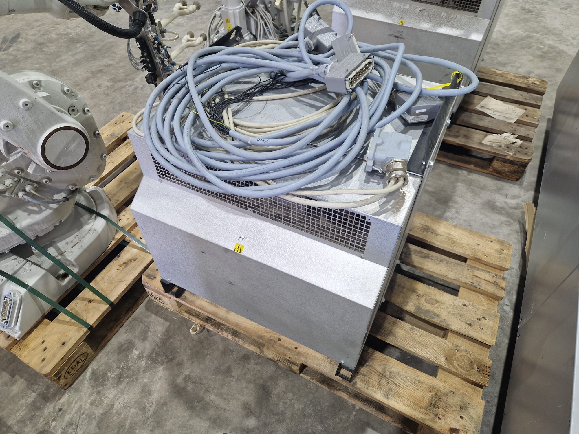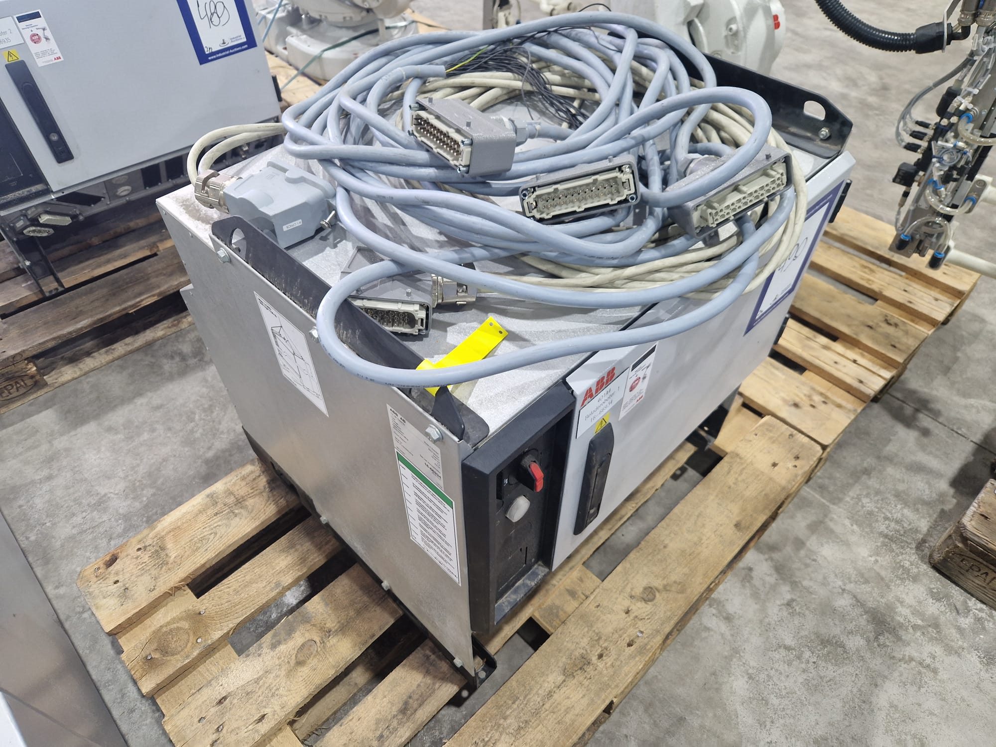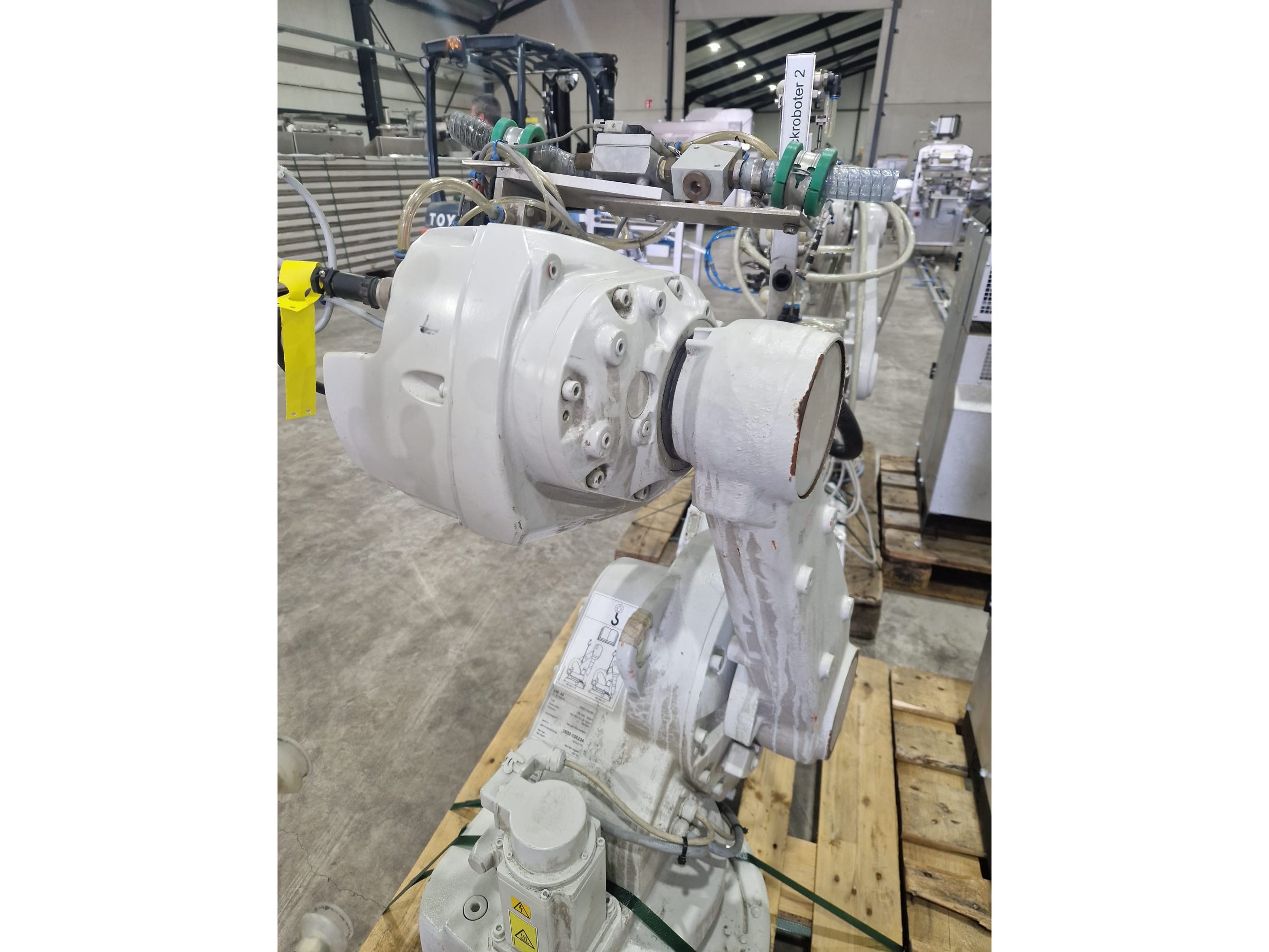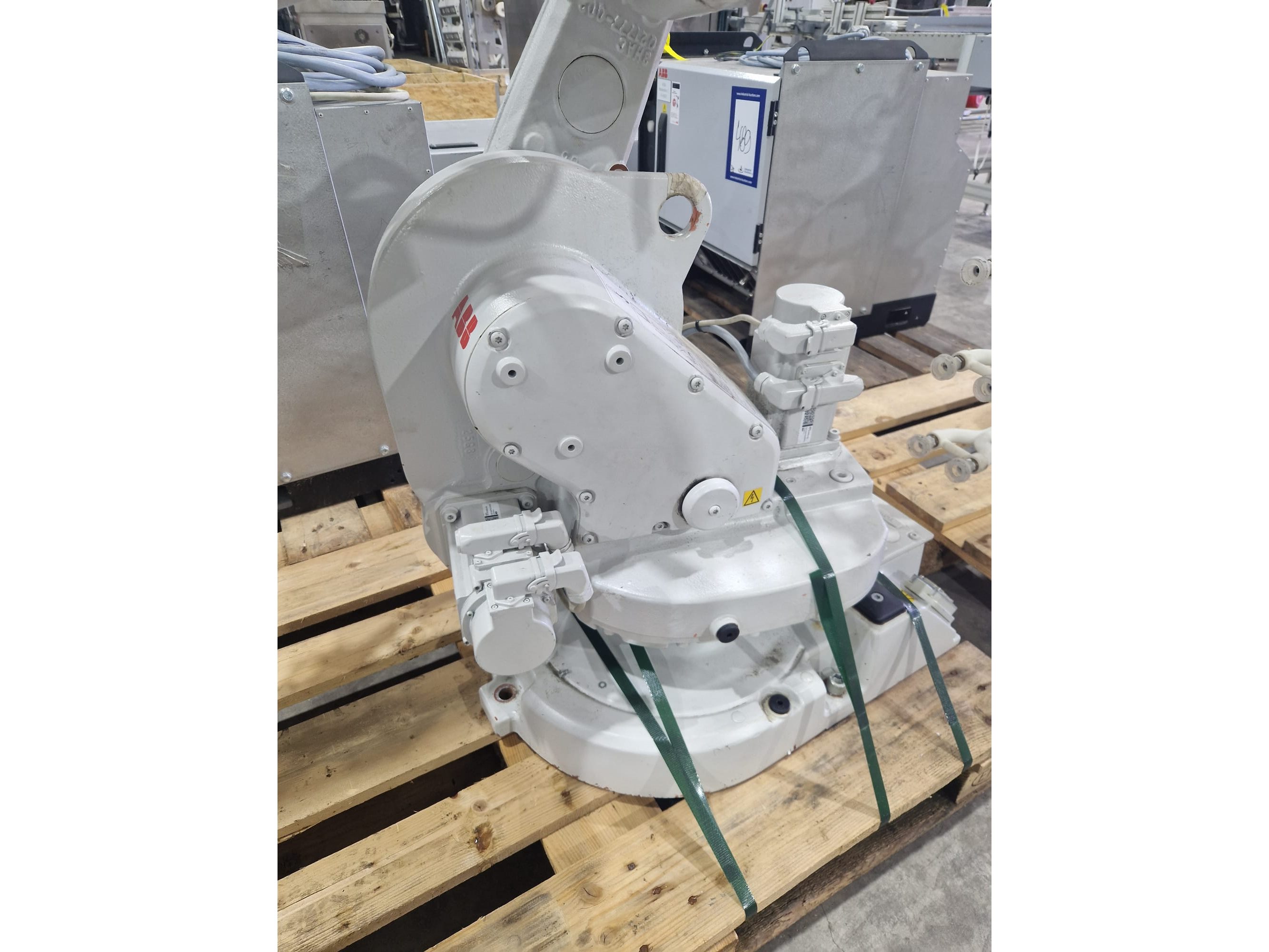 ABB AB robot arm with contol unit, type robot: IRB 1600, serial number: 1600-108234, year of construction: 2023, type control unit: IRC5 M2004, serial number: 16-66934, year of construction: 2012, 400 V, 3 Ph, 50-60 Hz, 7 A, dimensions robot: 1400 mm x 560 mm x 1100 mm. Kavel locatie: Langereijt 29A, 5091 JP Middelbeers, Nederland