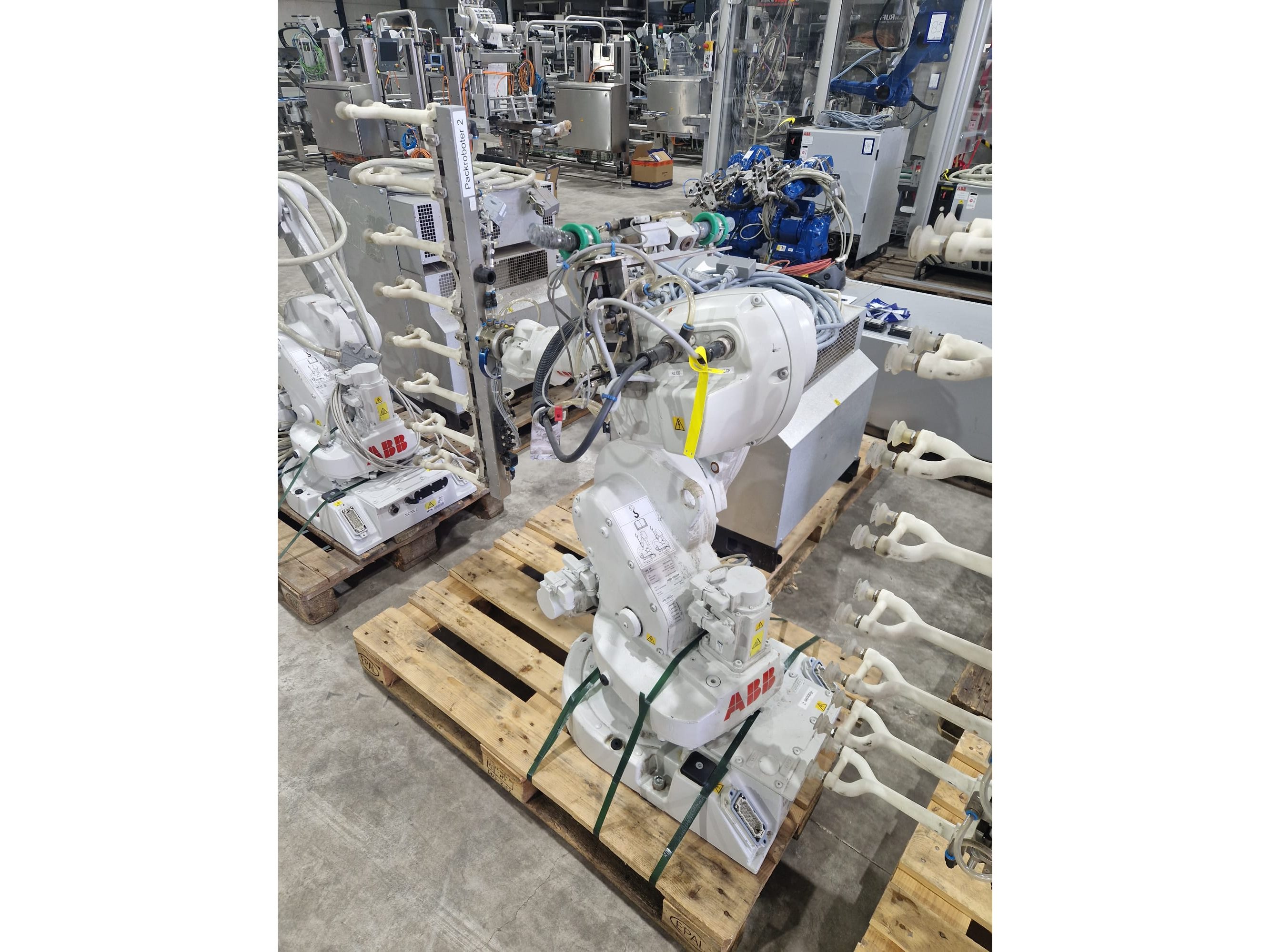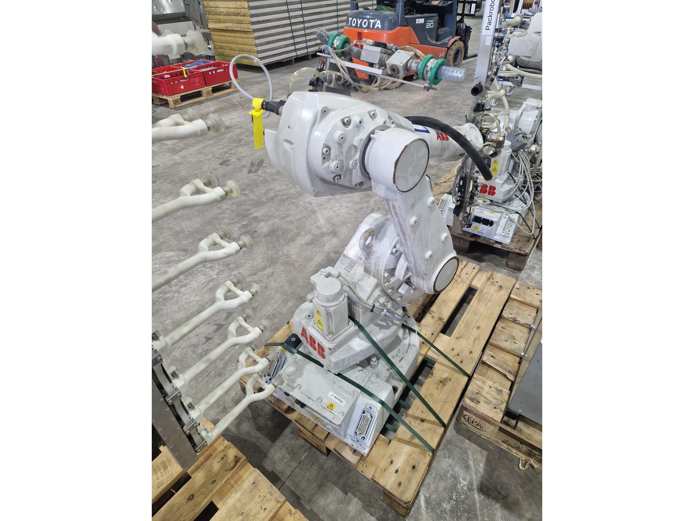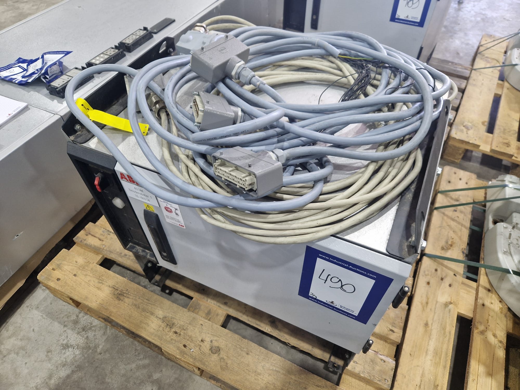 ABB AB robot arm with contol unit, type robot: IRB 1600, serial number: 1600-108234, year of construction: 2023, type control unit: IRC5 M2004, serial number: 16-66934, year of construction: 2012, 400 V, 3 Ph, 50-60 Hz, 7 A, dimensions robot: 1400 mm x 560 mm x 1100 mm. Kavel locatie: Langereijt 29A, 5091 JP Middelbeers, Nederland