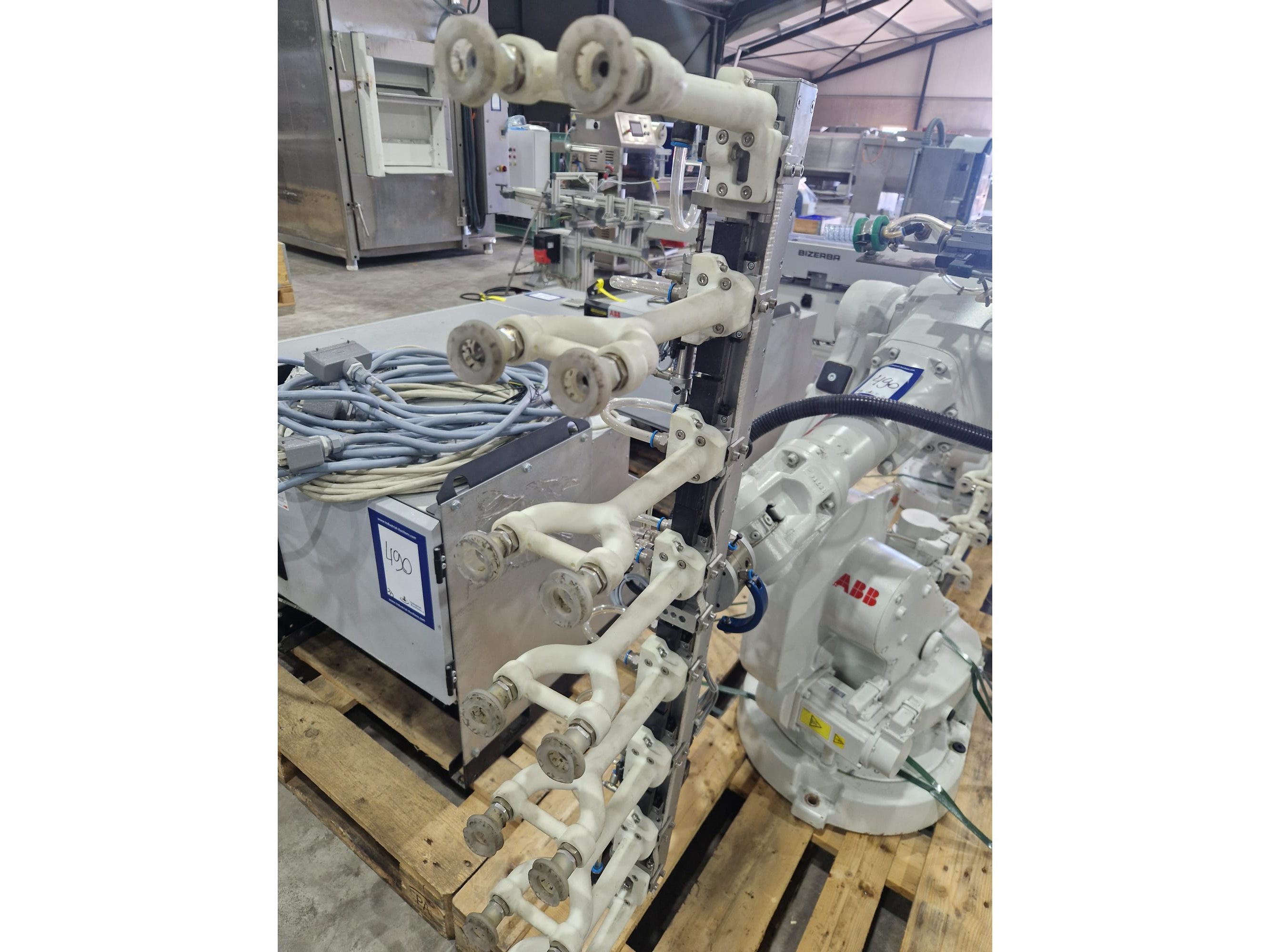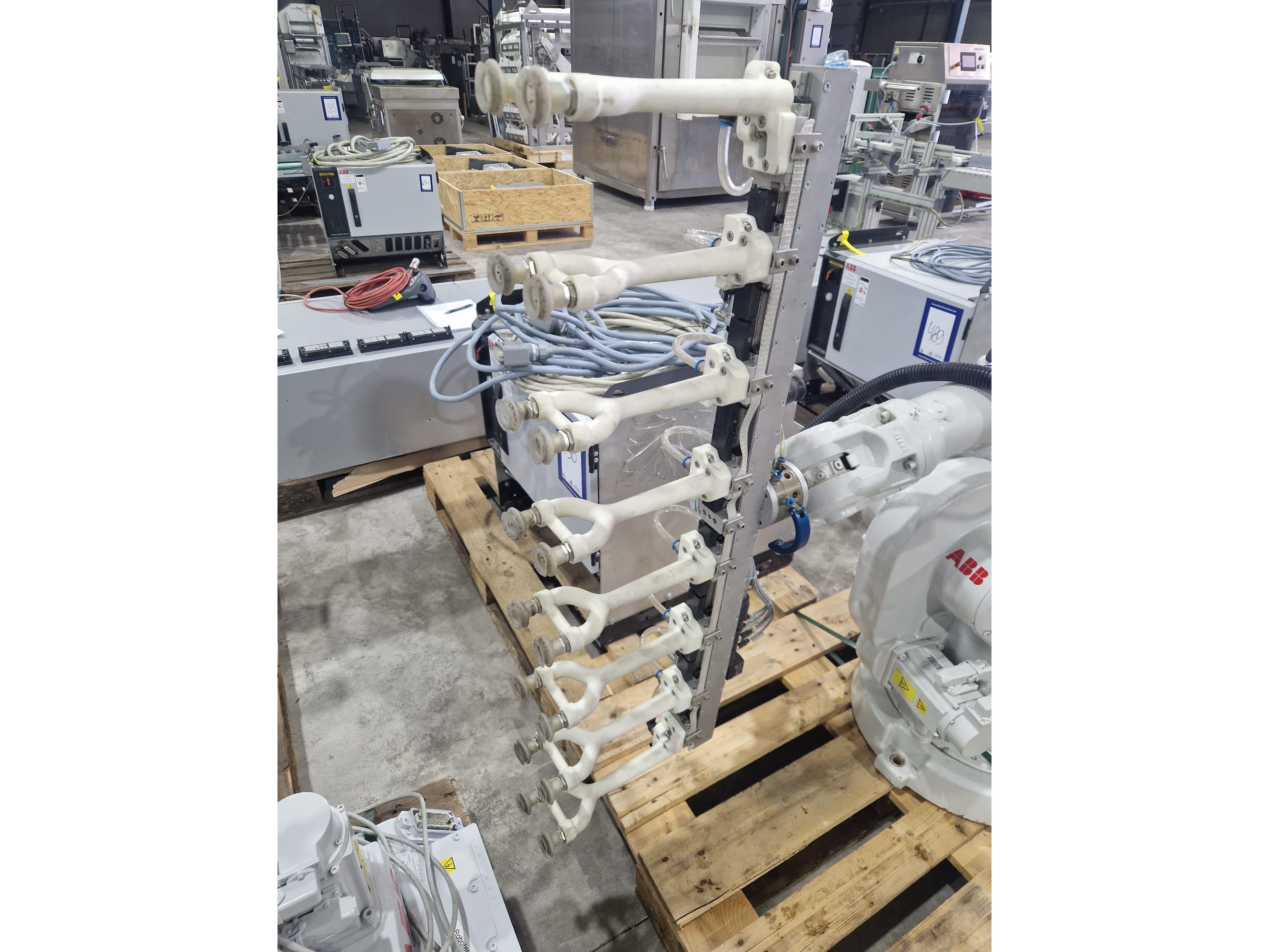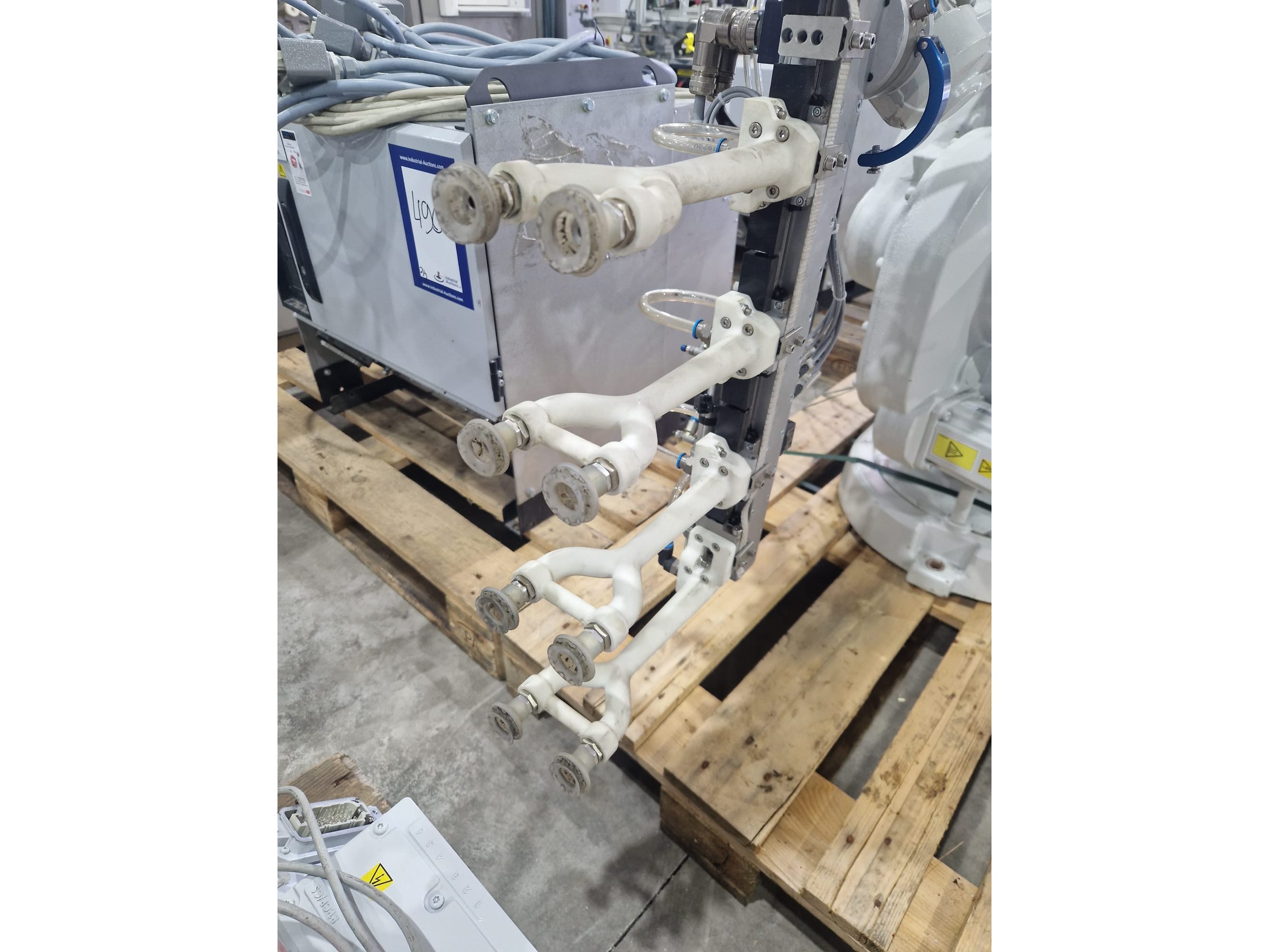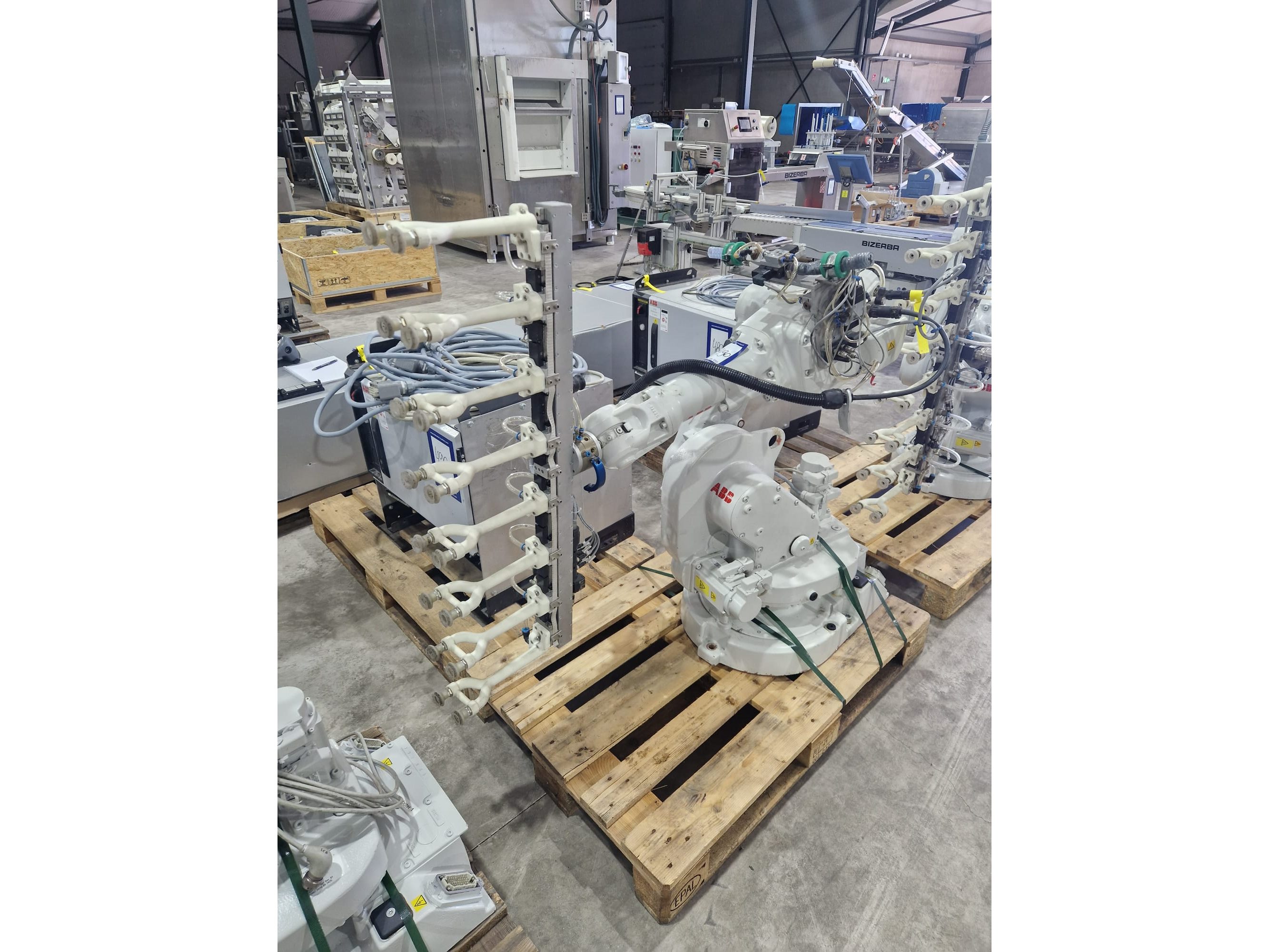 ABB AB robot arm with contol unit, type robot: IRB 1600, serial number: 1600-108234, year of construction: 2023, type control unit: IRC5 M2004, serial number: 16-66934, year of construction: 2012, 400 V, 3 Ph, 50-60 Hz, 7 A, dimensions robot: 1400 mm x 560 mm x 1100 mm. Kavel locatie: Langereijt 29A, 5091 JP Middelbeers, Nederland