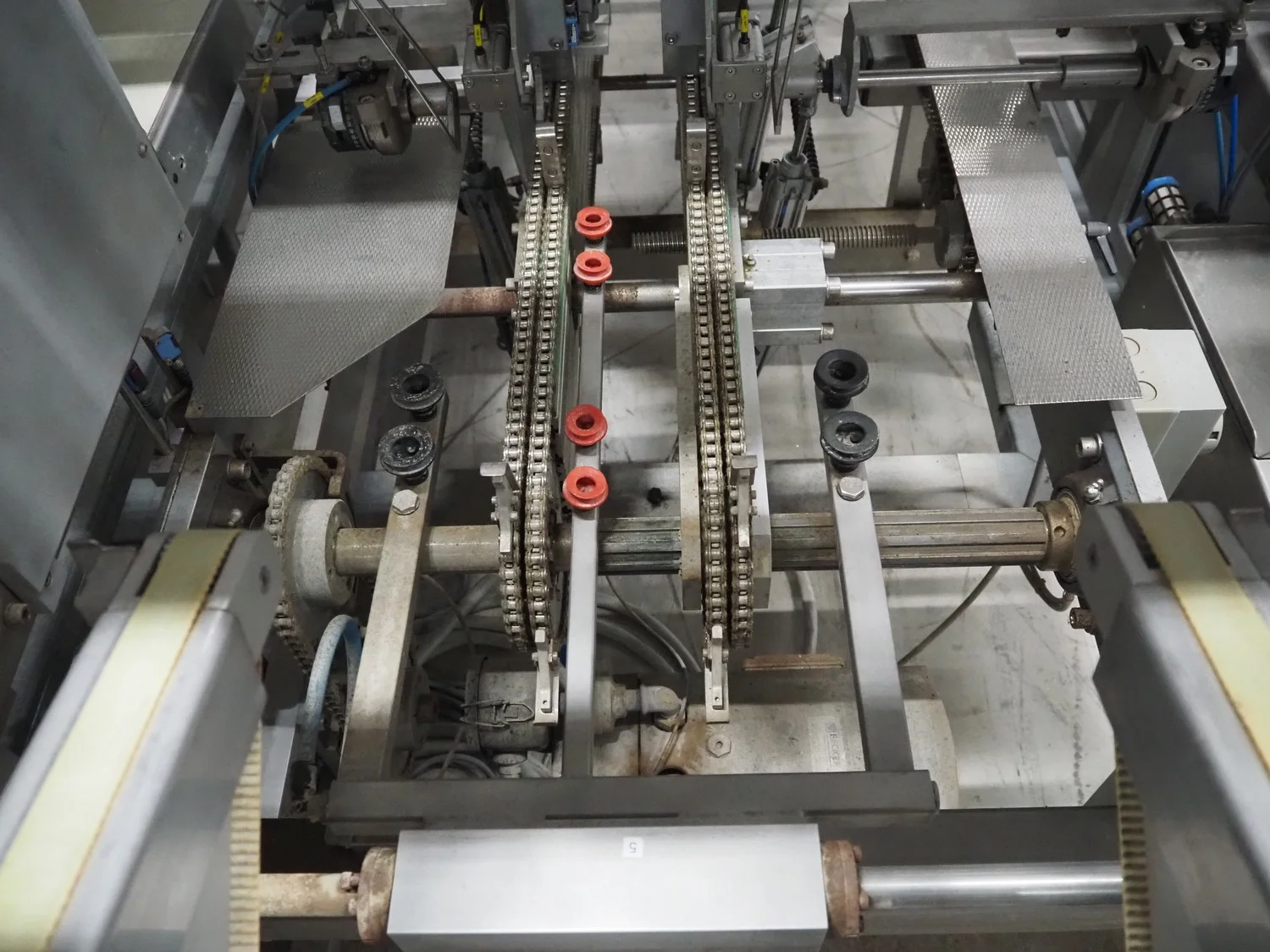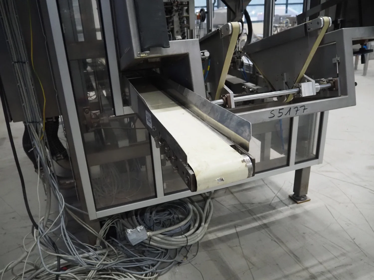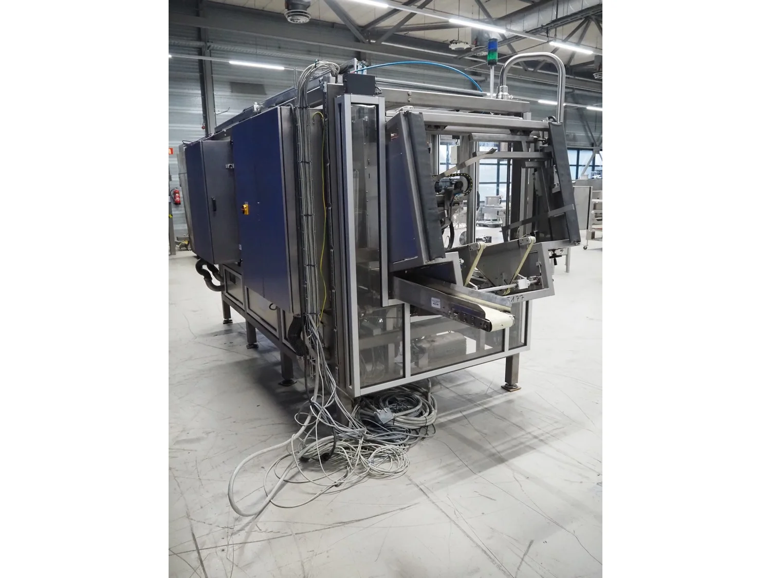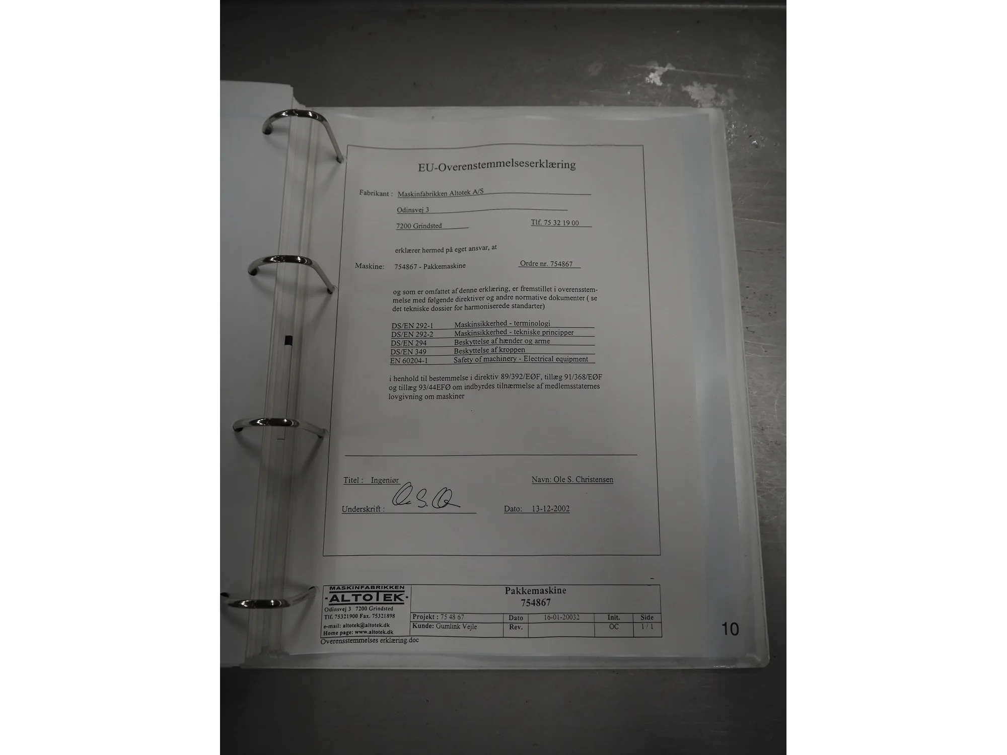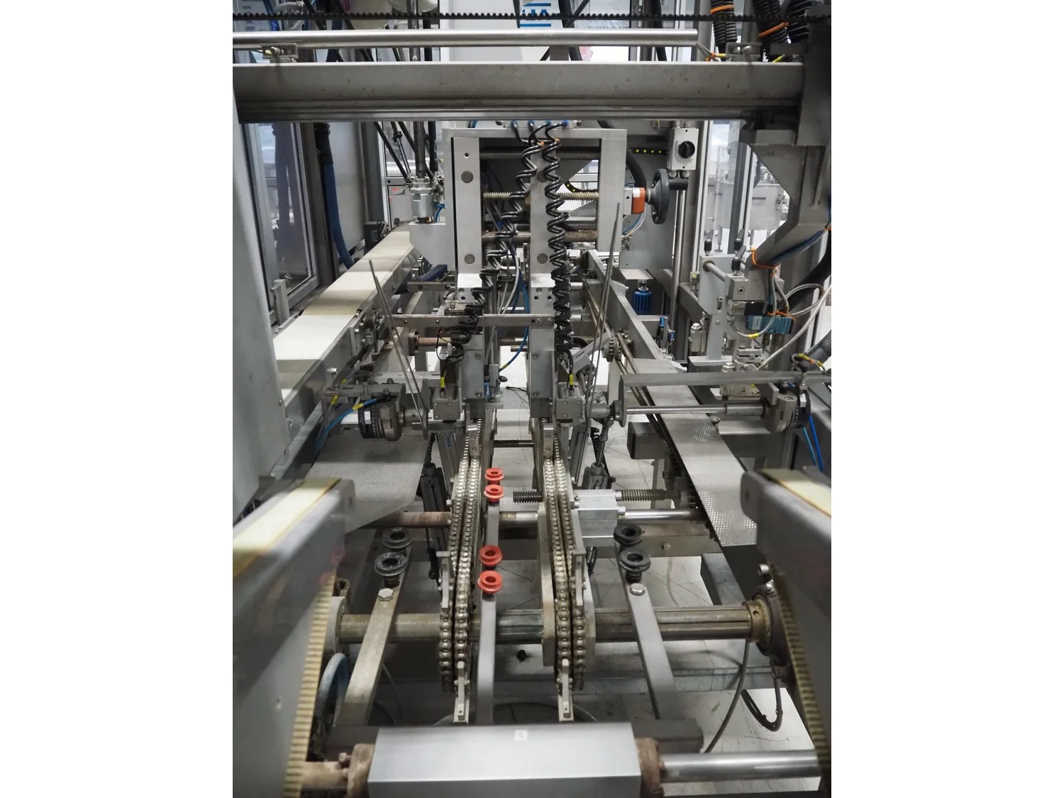 Altotek case erecting and filling machine with FlexPicker, machine number: 754867, year of construction: 31/01-2003, 400 V, 3 Ph, 50 Hz, 35 A, Nordson glue unit, minimum box sizes: 175 mm x 115 mm x 100 mm, maximum box sizes: 350 mm x 250 mm x 250 mm, s/s chain conveyor with dividers, belt width: 200 mm, distance between dividers: 350 mm, divider height: 50 mm, plastic belts, belt width: 130 mm, total dimensions: 4500 mm x 2000 mm x 2600 mm. With ABB control panel and cabinet for robot, type: IRB340 M2000, serial number: 34-20212, year of construction: 19-08-2002, dimensions: 900 mm x 550 mm x 1100 mm.
