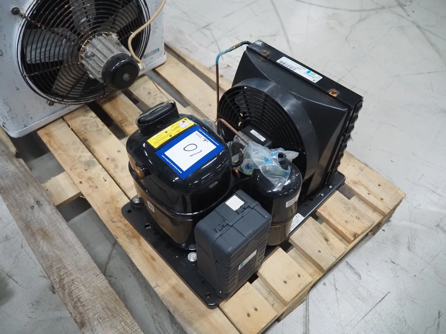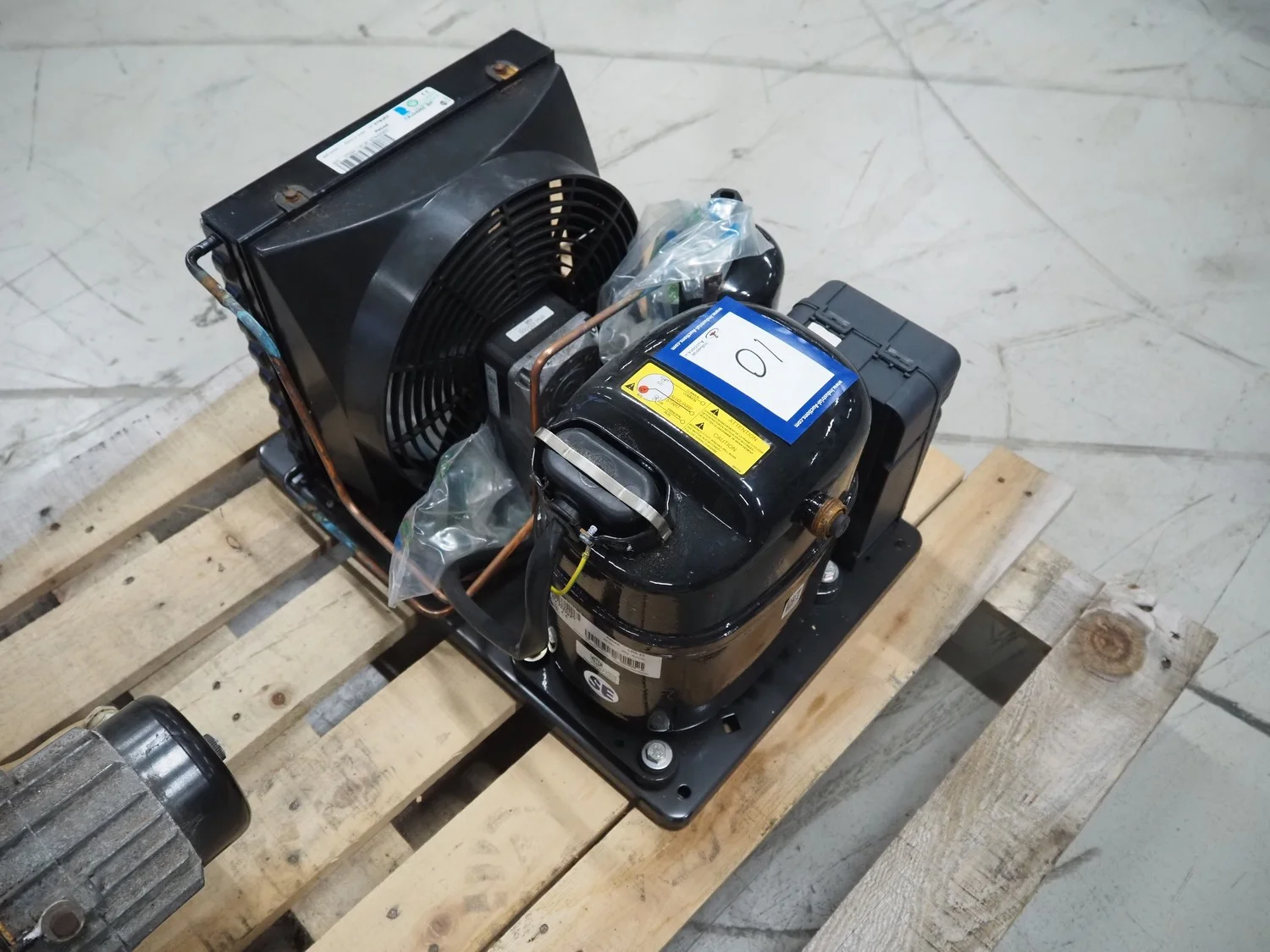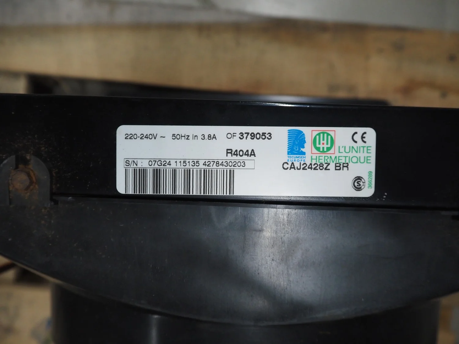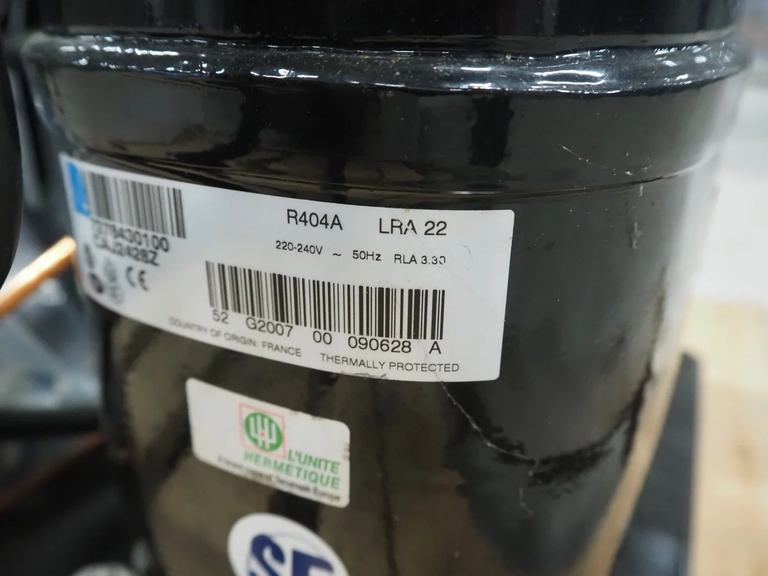 L'Unite Hermetique / Tecumseh condensing unit with cooling compressor, type: CEJ2428Z BR, serial number: 07G24 115135 4278430203, 220/240 V, 1 Ph, 50 Hz, 3.8 A, refrigerant: R404A, dimensions: 650 mm x 630 mm x 460 mm.